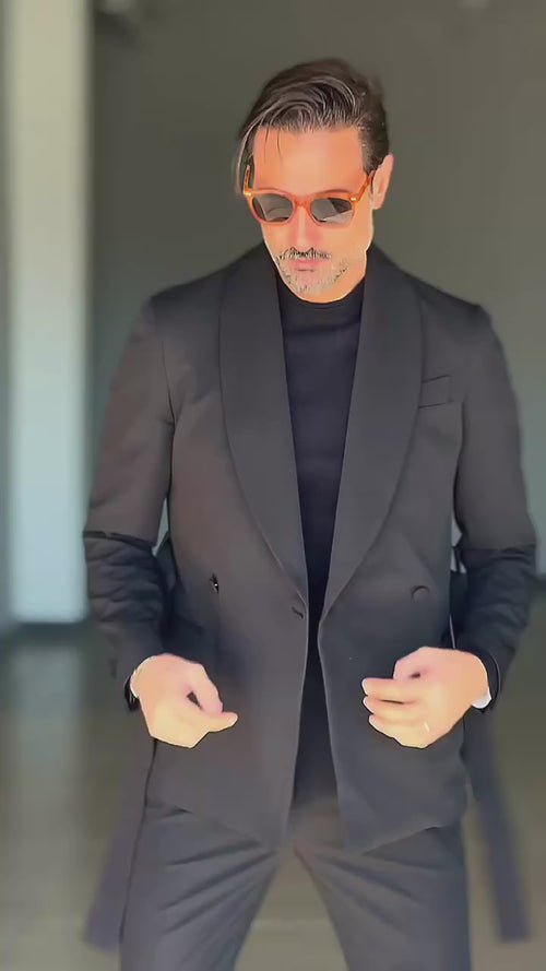 GIACCA NERA COLLO SCIALLATO DOPPIOPETTO ( PUOI ABBINARE IL PANTALONE CON IL CODICE 32 )