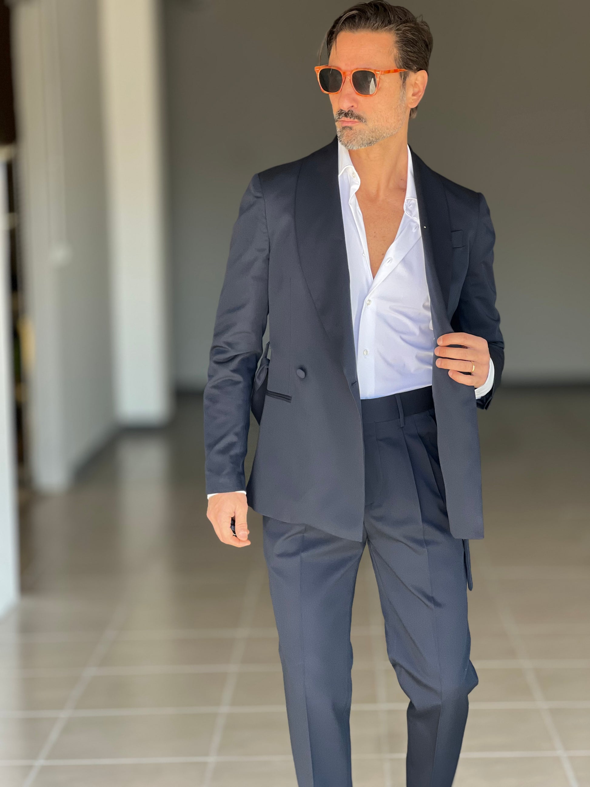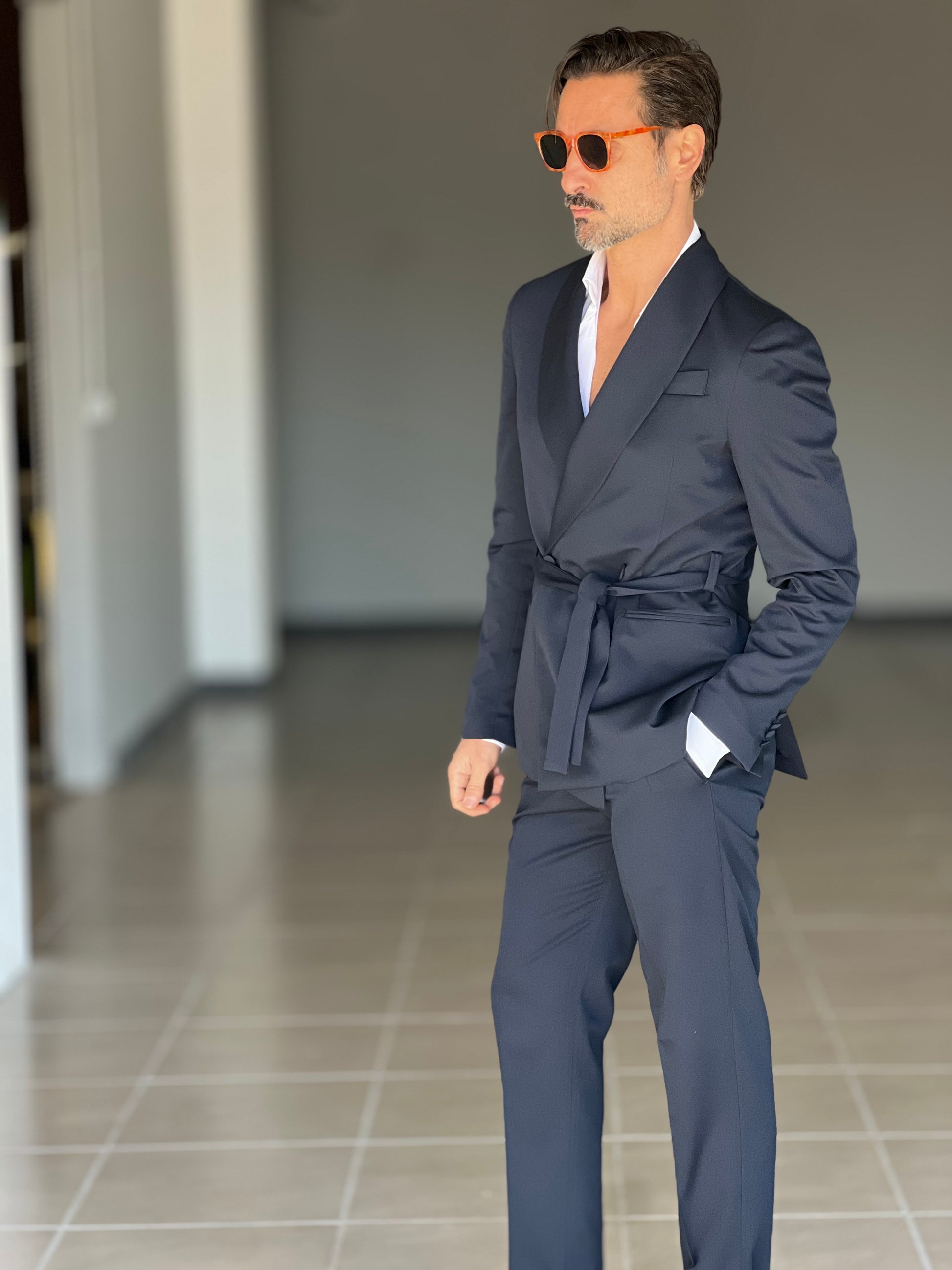 ABITO BLU DOPPIOPETTO VISCOSA CINTURA IN VITA 004