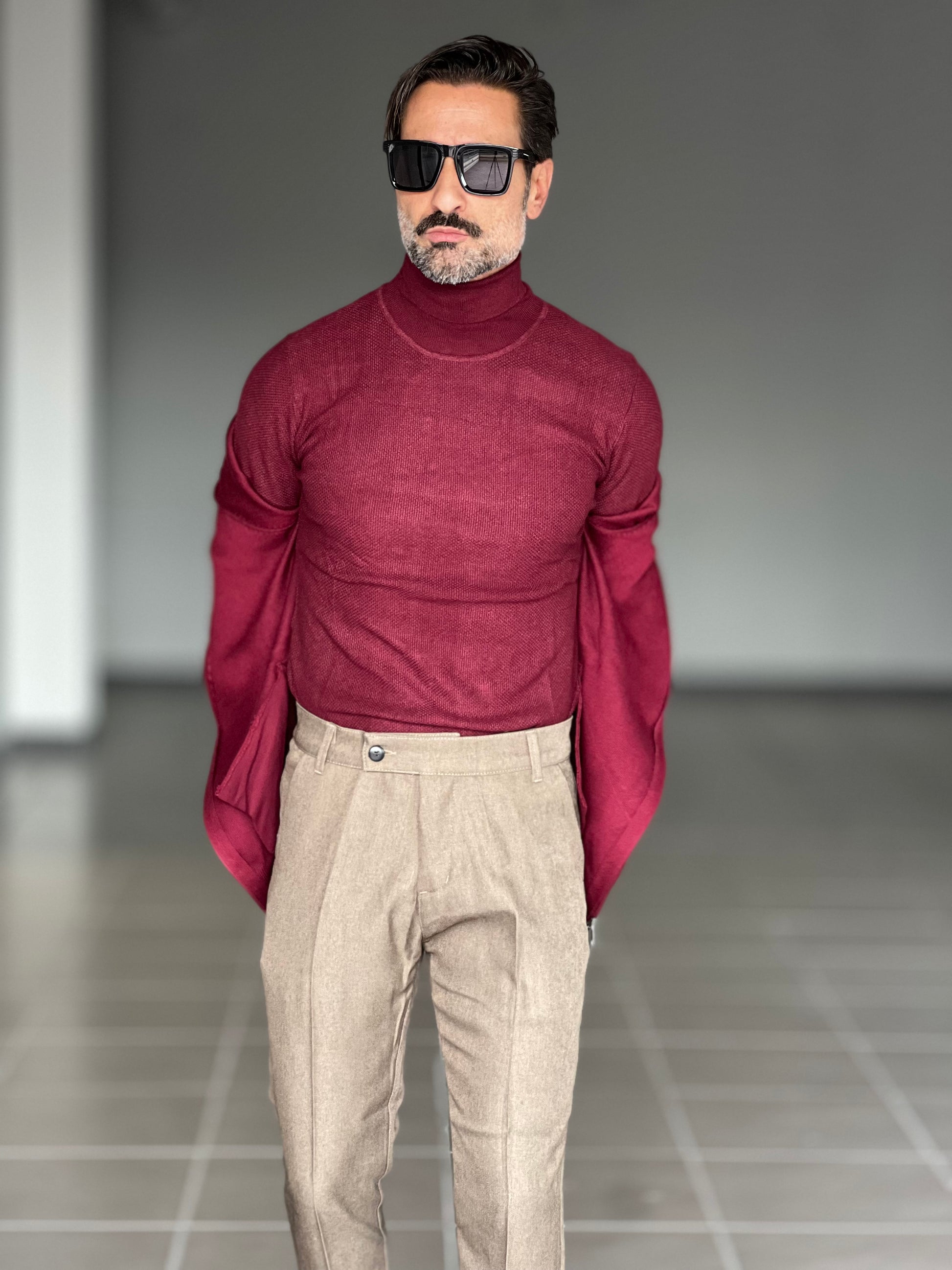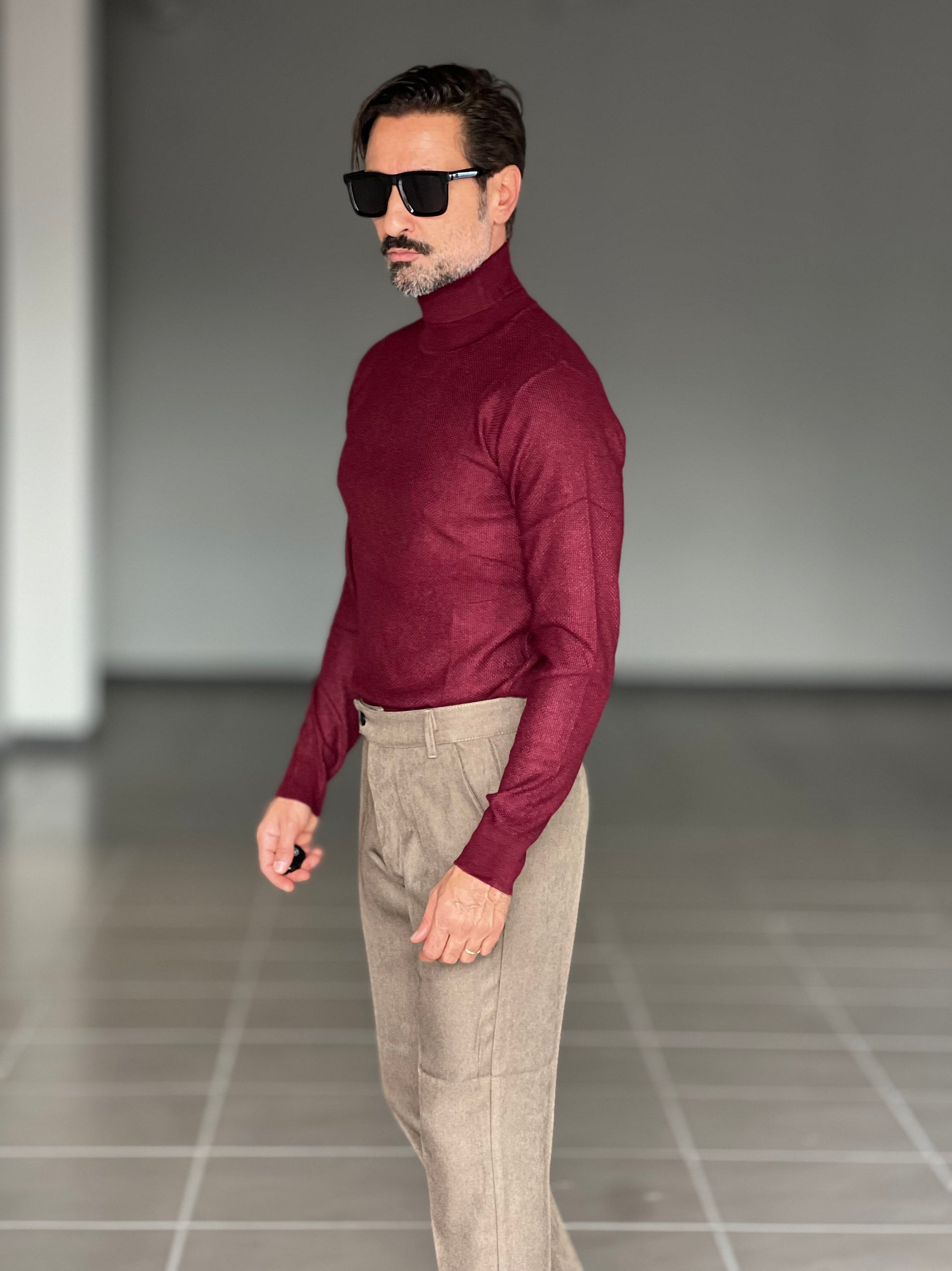 MULTICOLORED RED AND GRAY SHAVED HIGH NECK