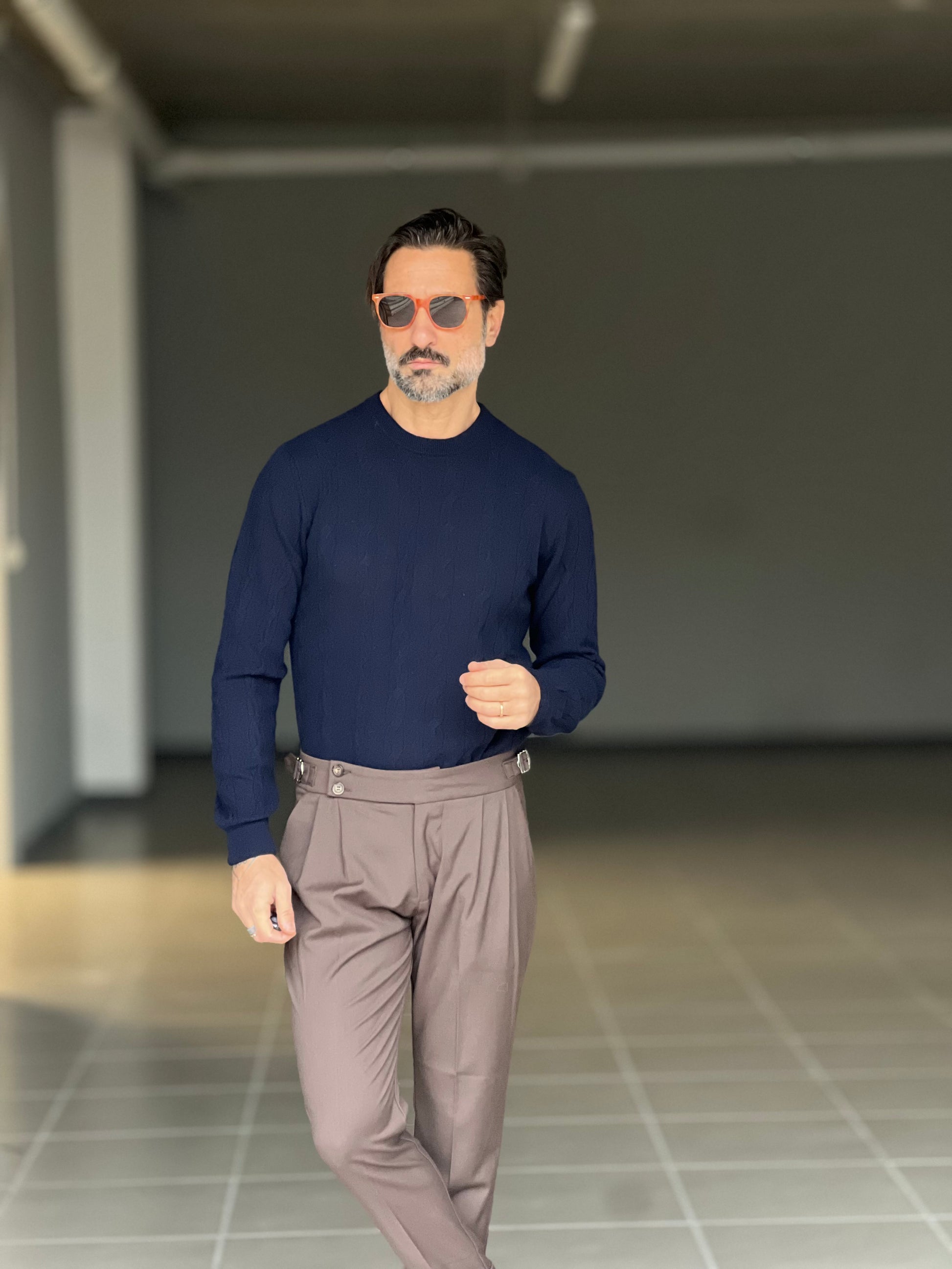 BLUE THREAD COTTON CREW NECK SWEATER