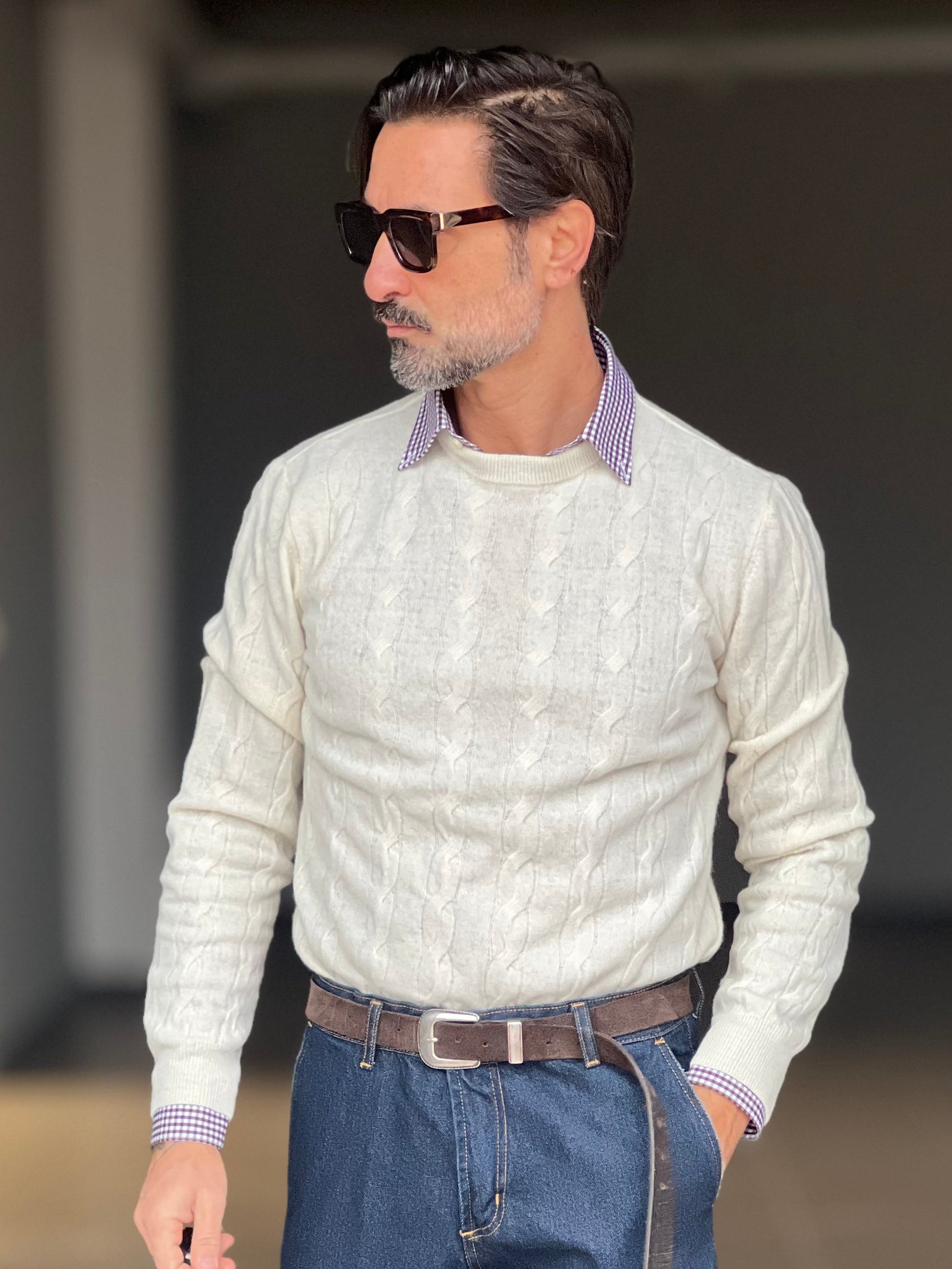 BLUE THREAD COTTON CREW NECK SWEATER