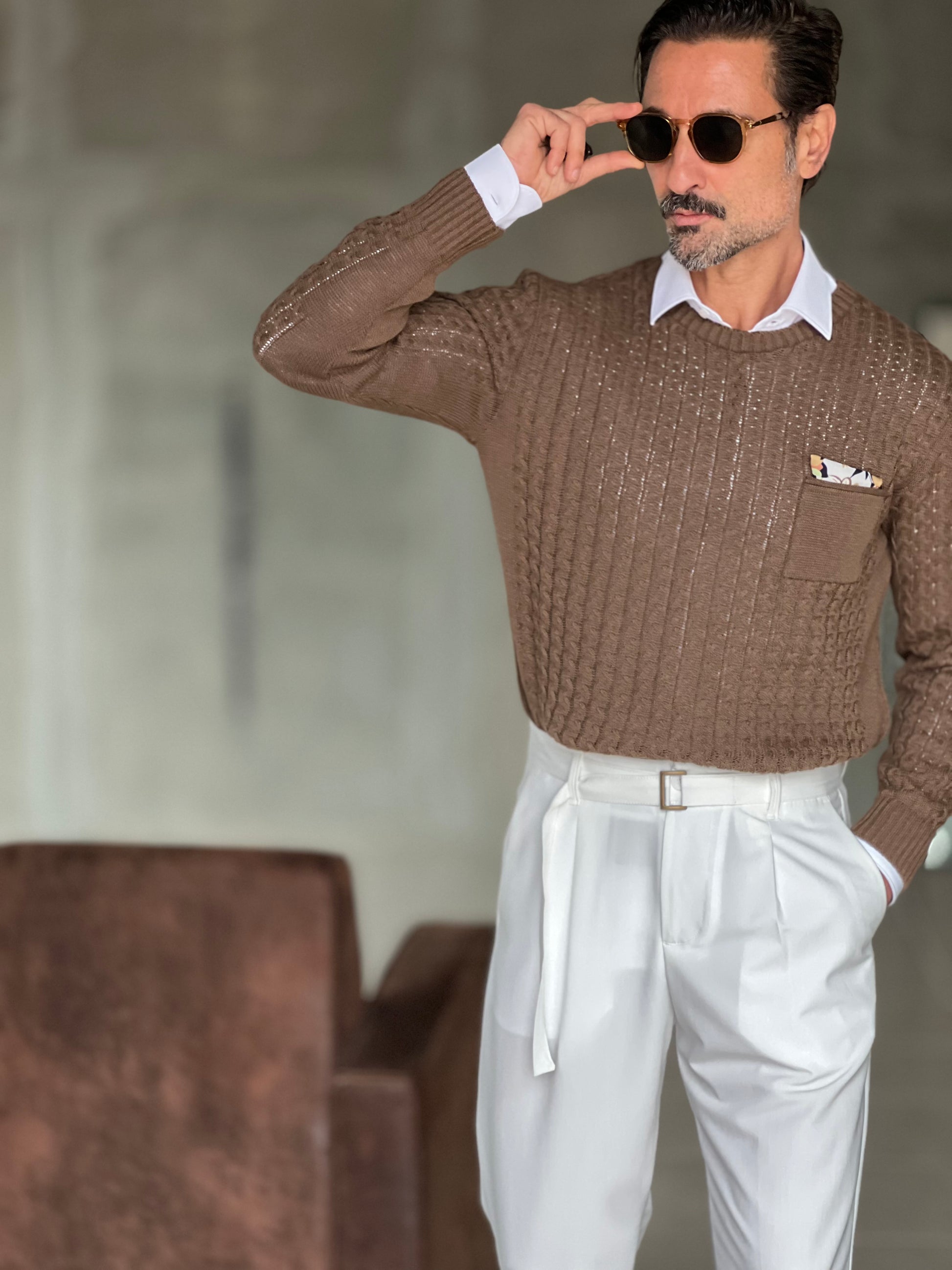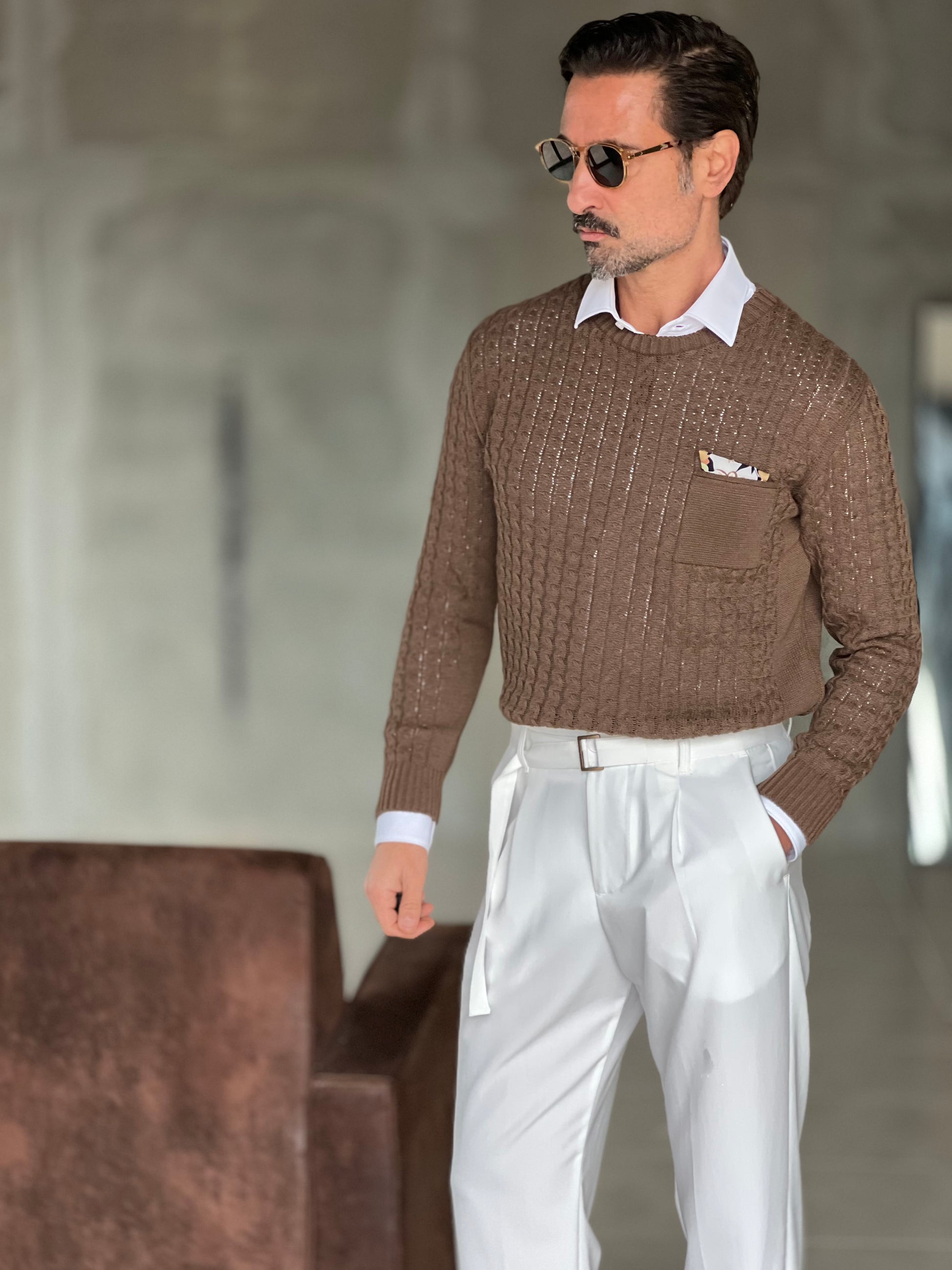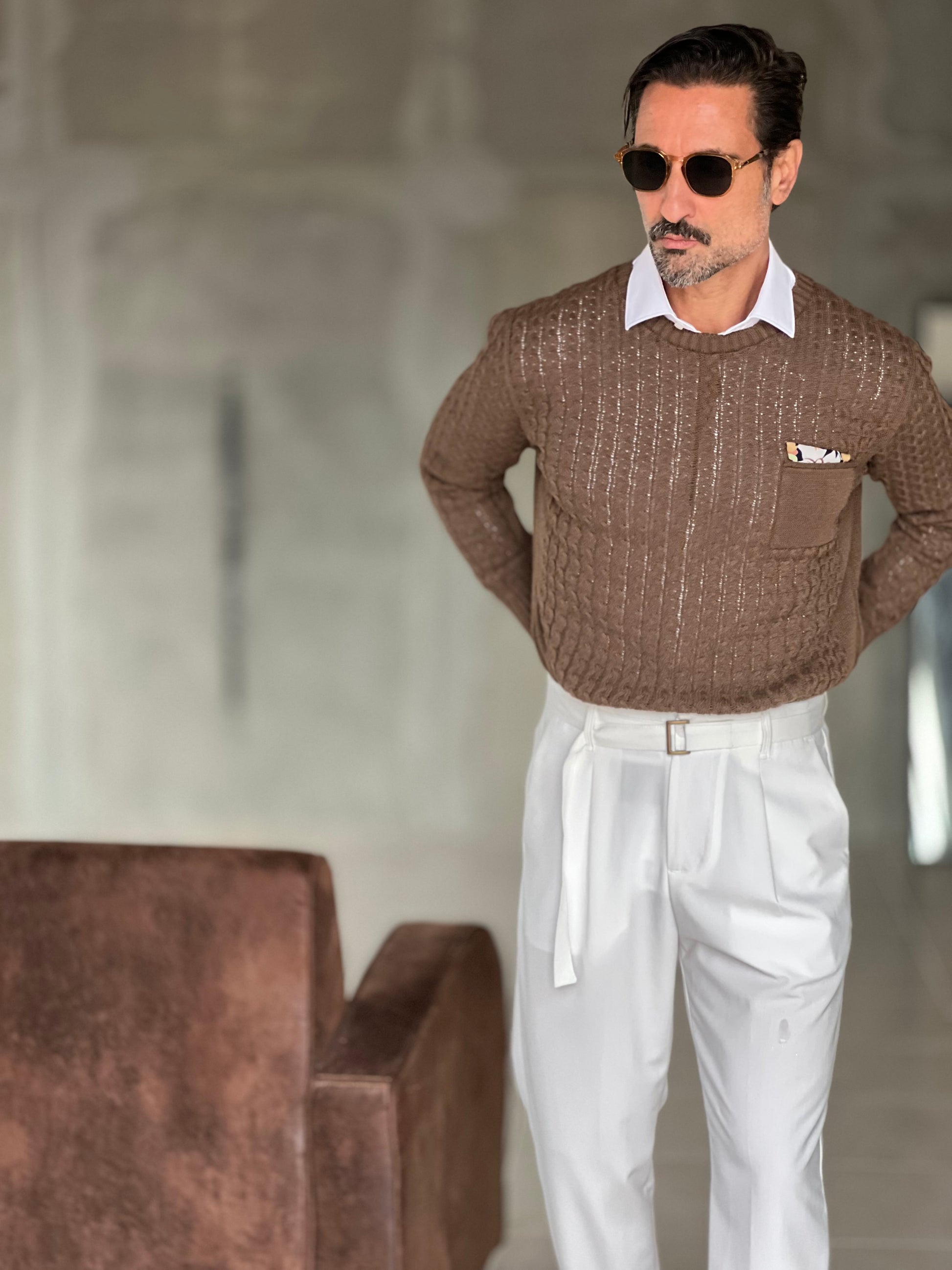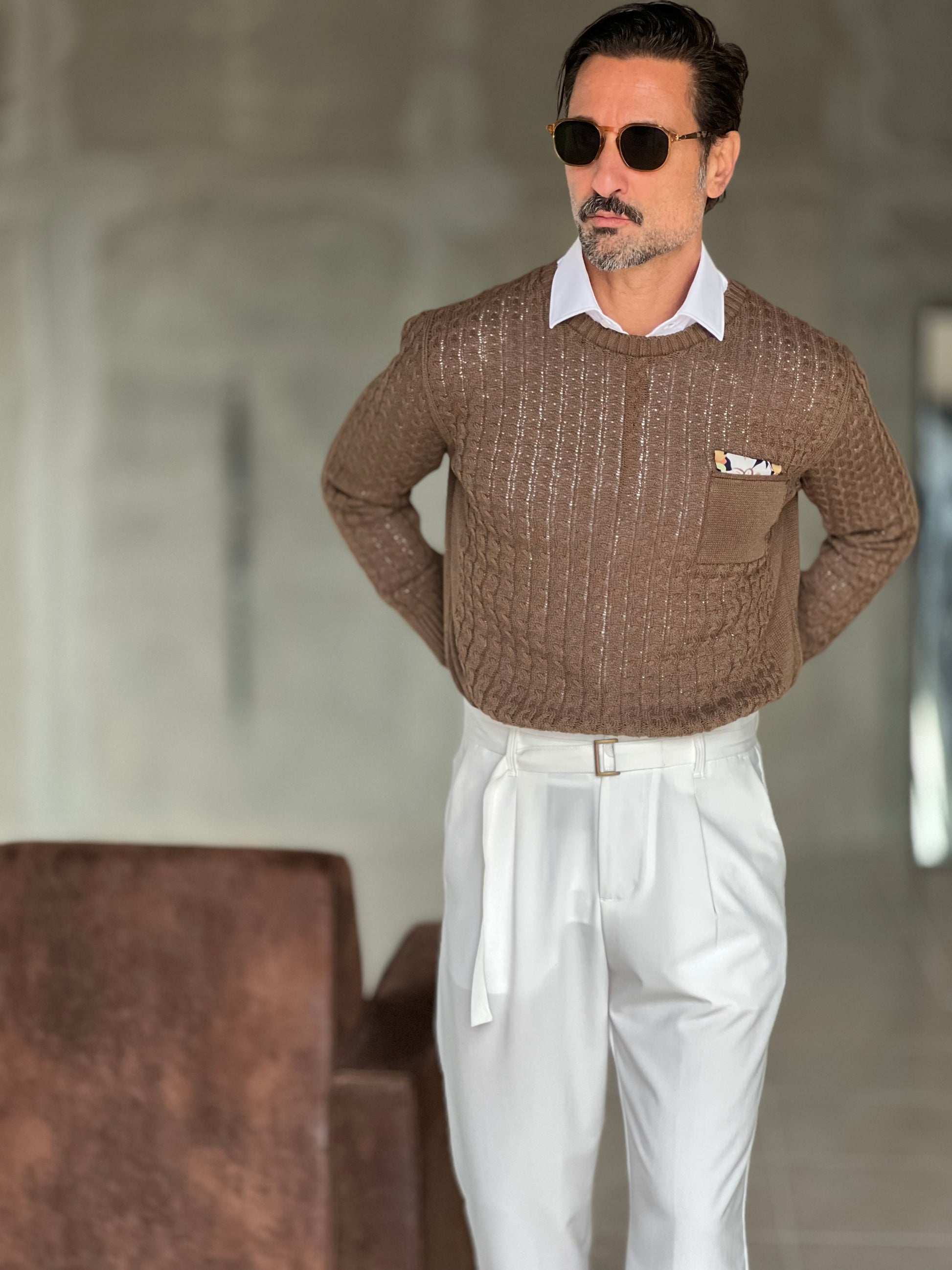 WHITE VISCOSE TROUSERS WITH REGULAR BOTTOM