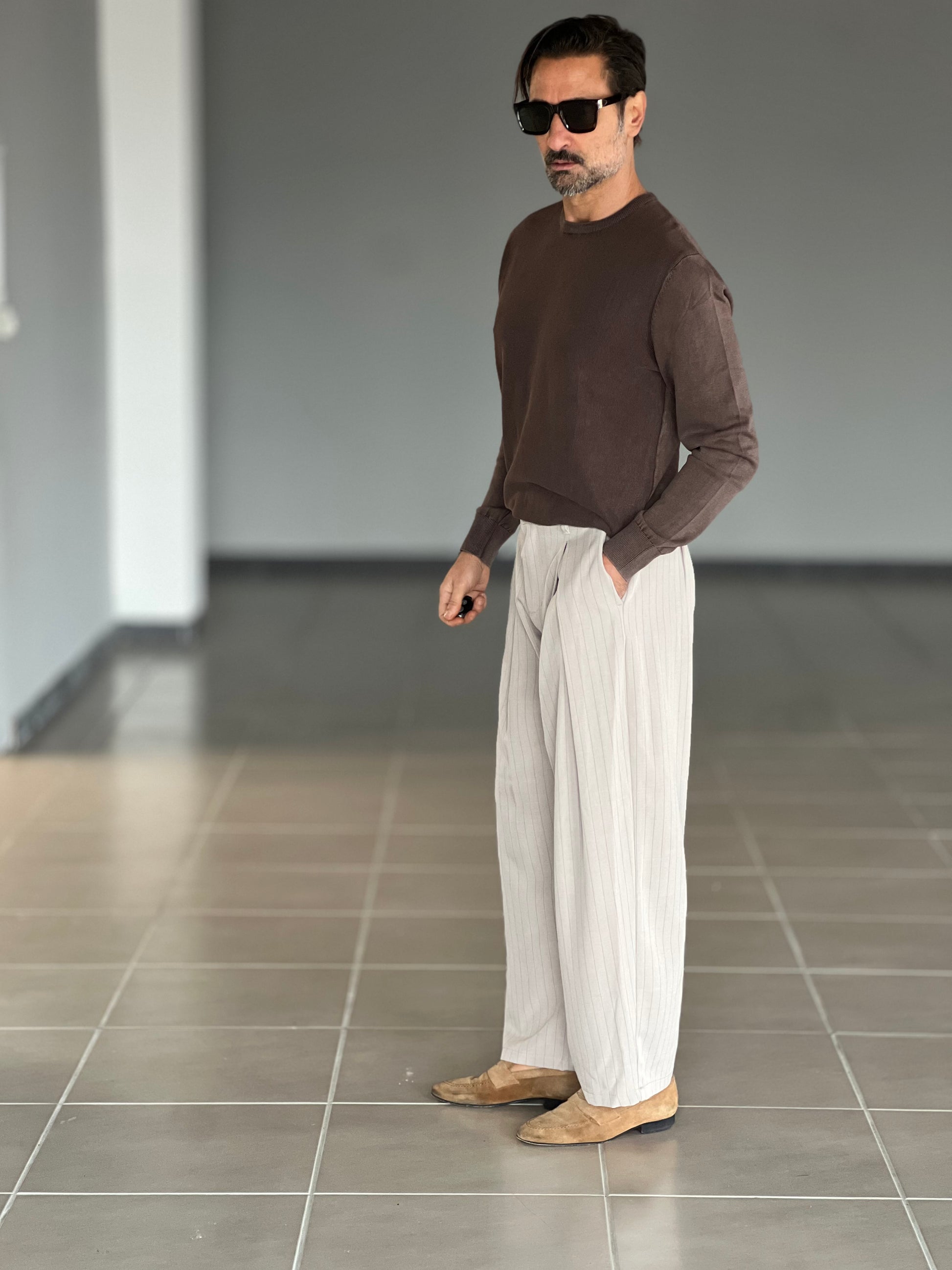 WHITE VISCOSE TROUSERS WITH REGULAR BOTTOM