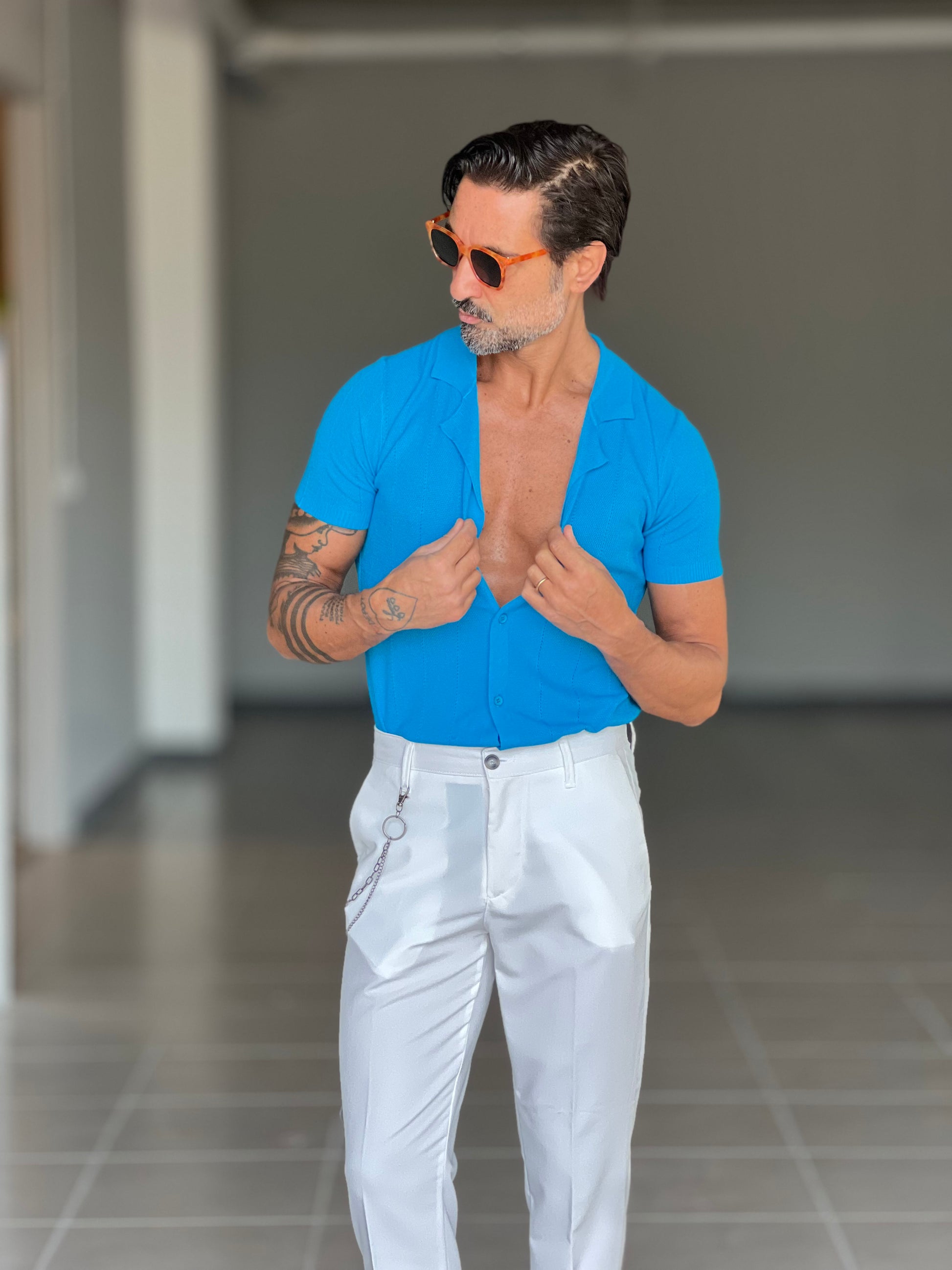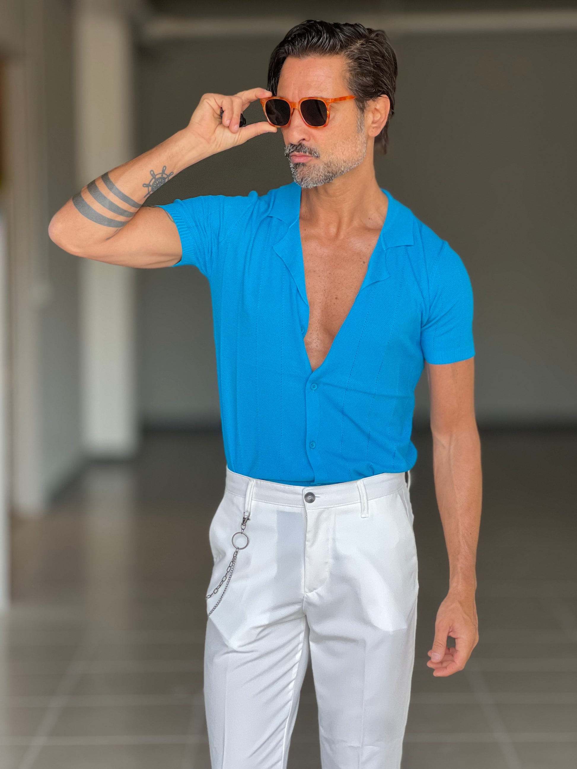 BLUE THREAD COTTON CREW NECK SWEATER