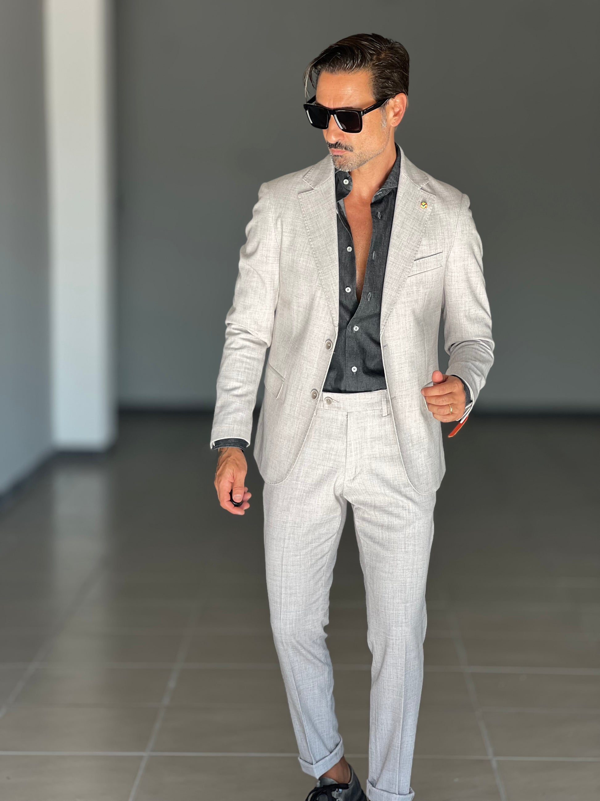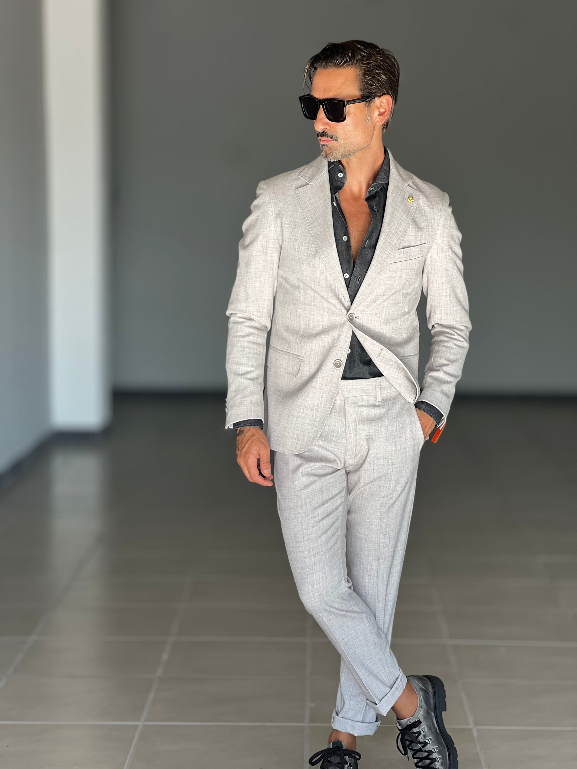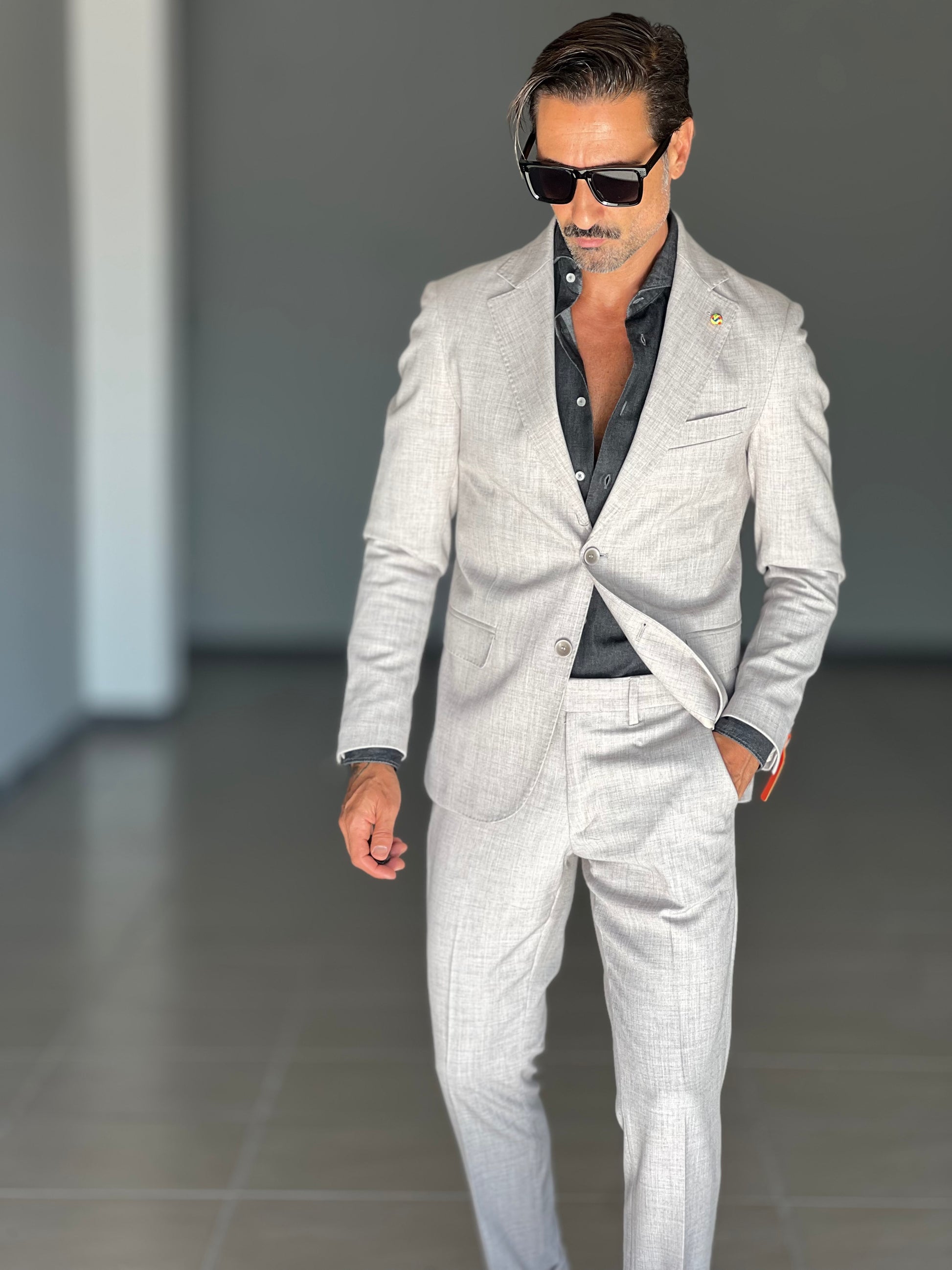 ABITO BEIGE FIAMMATO MONOPETTO VISCOSA E MISTI