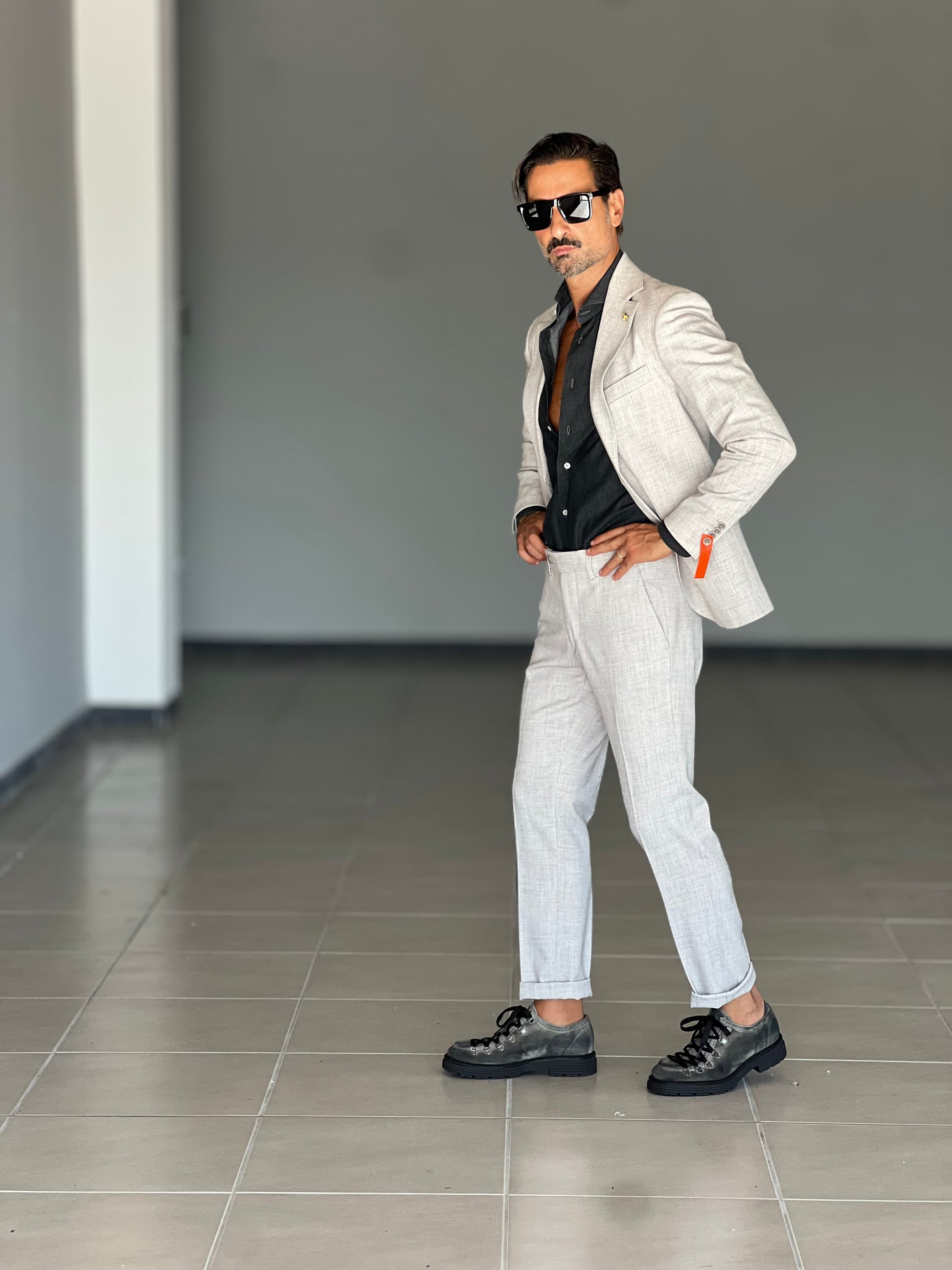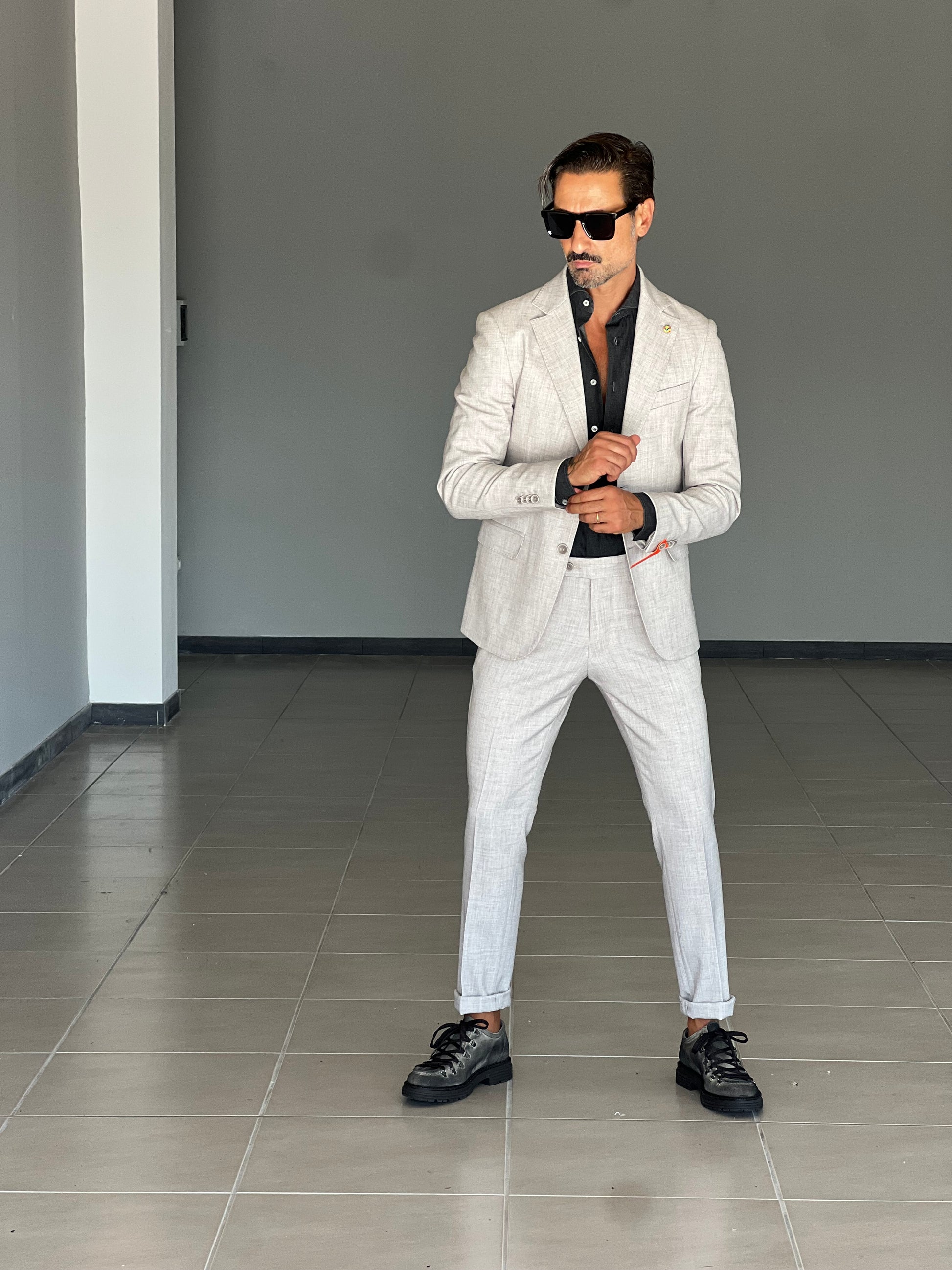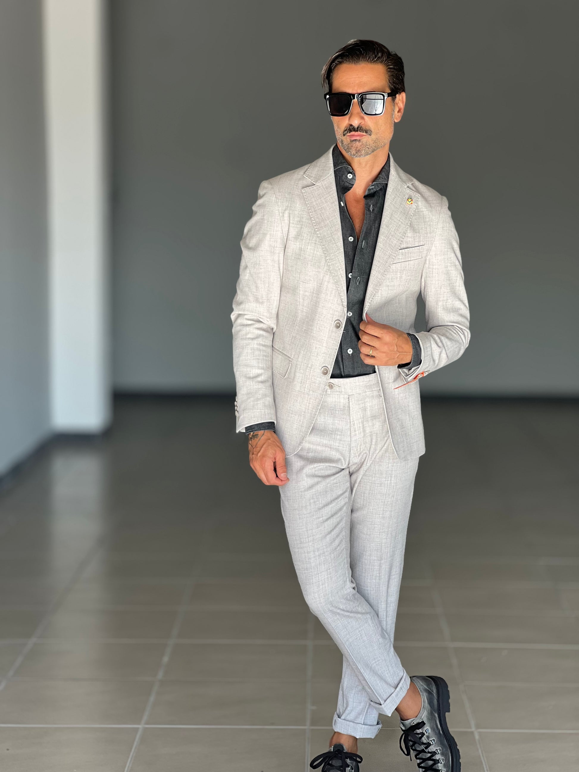 ABITO BEIGE FIAMMATO MONOPETTO VISCOSA E MISTI