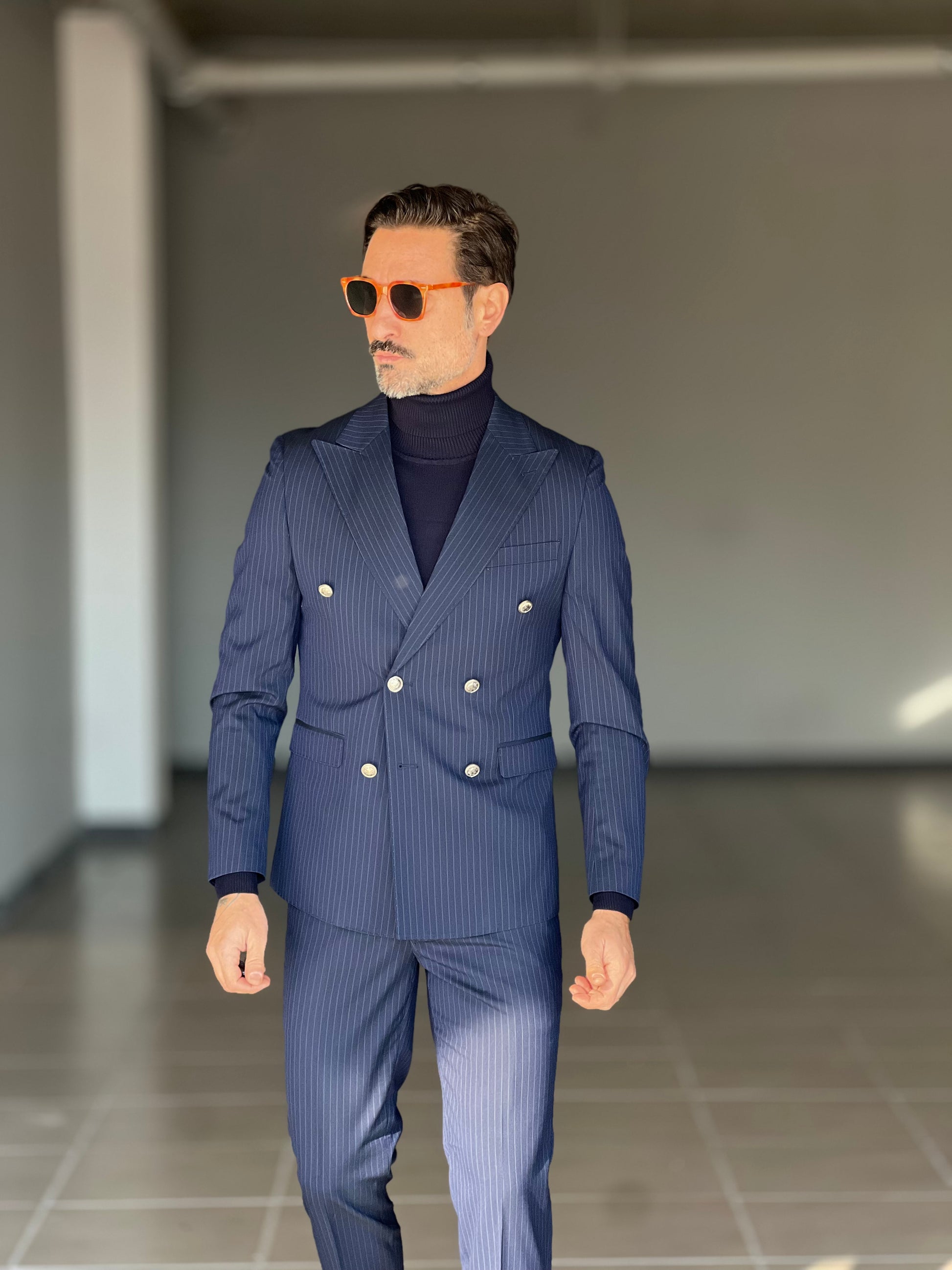 ABITO BLU GESSATO DOPPIOPETTO BOTTONE METALLO VISCOSA E MISTI