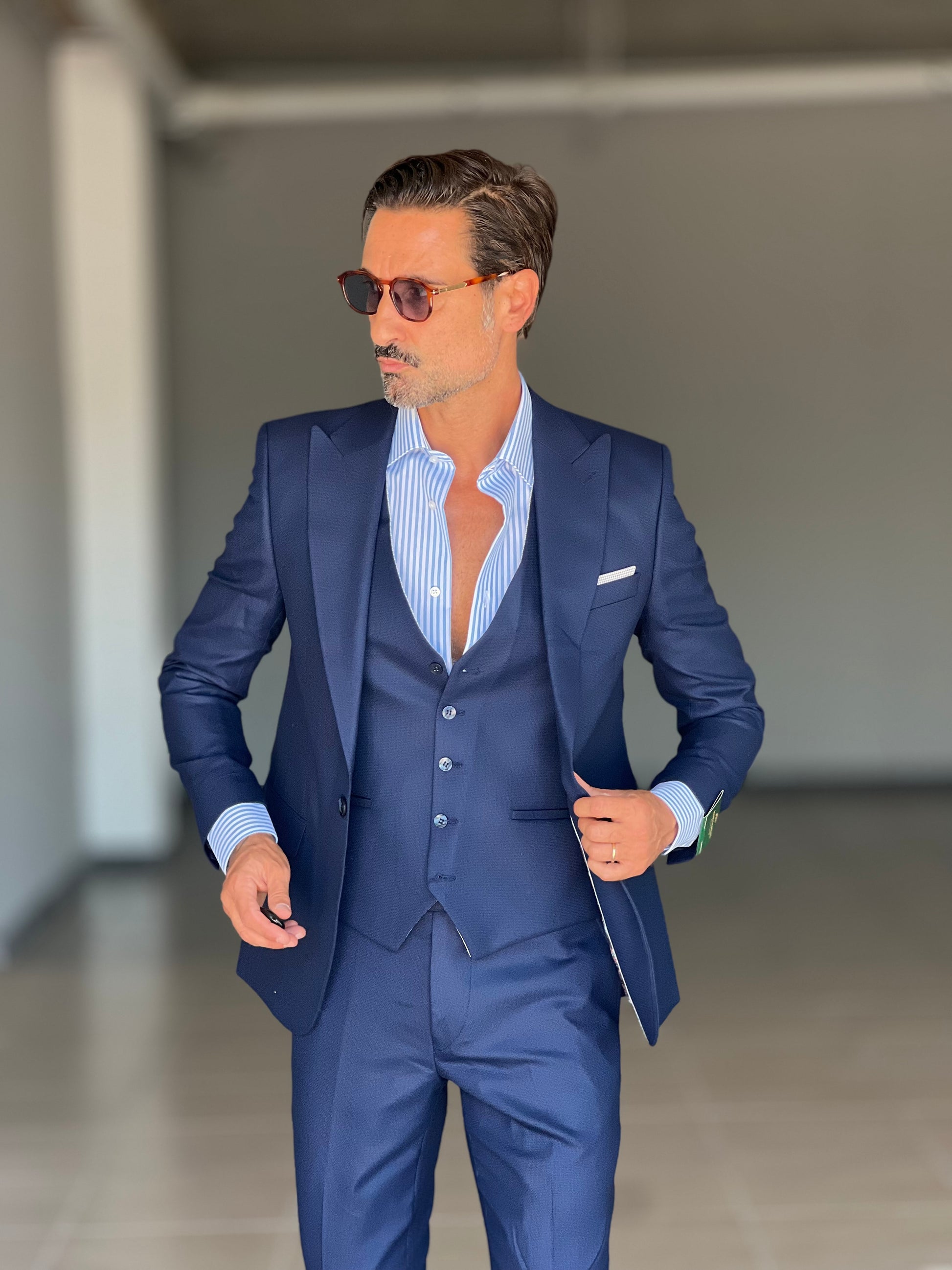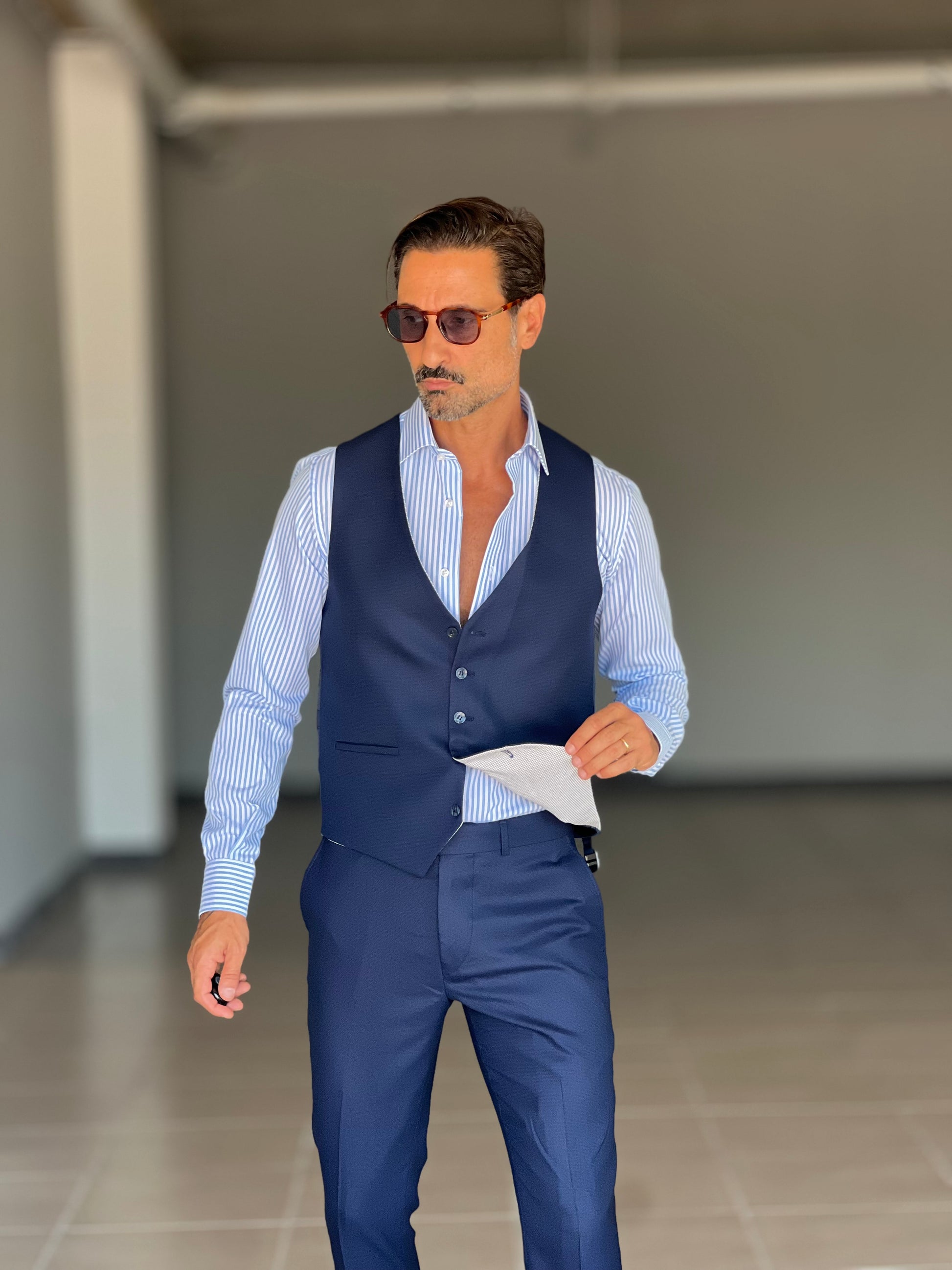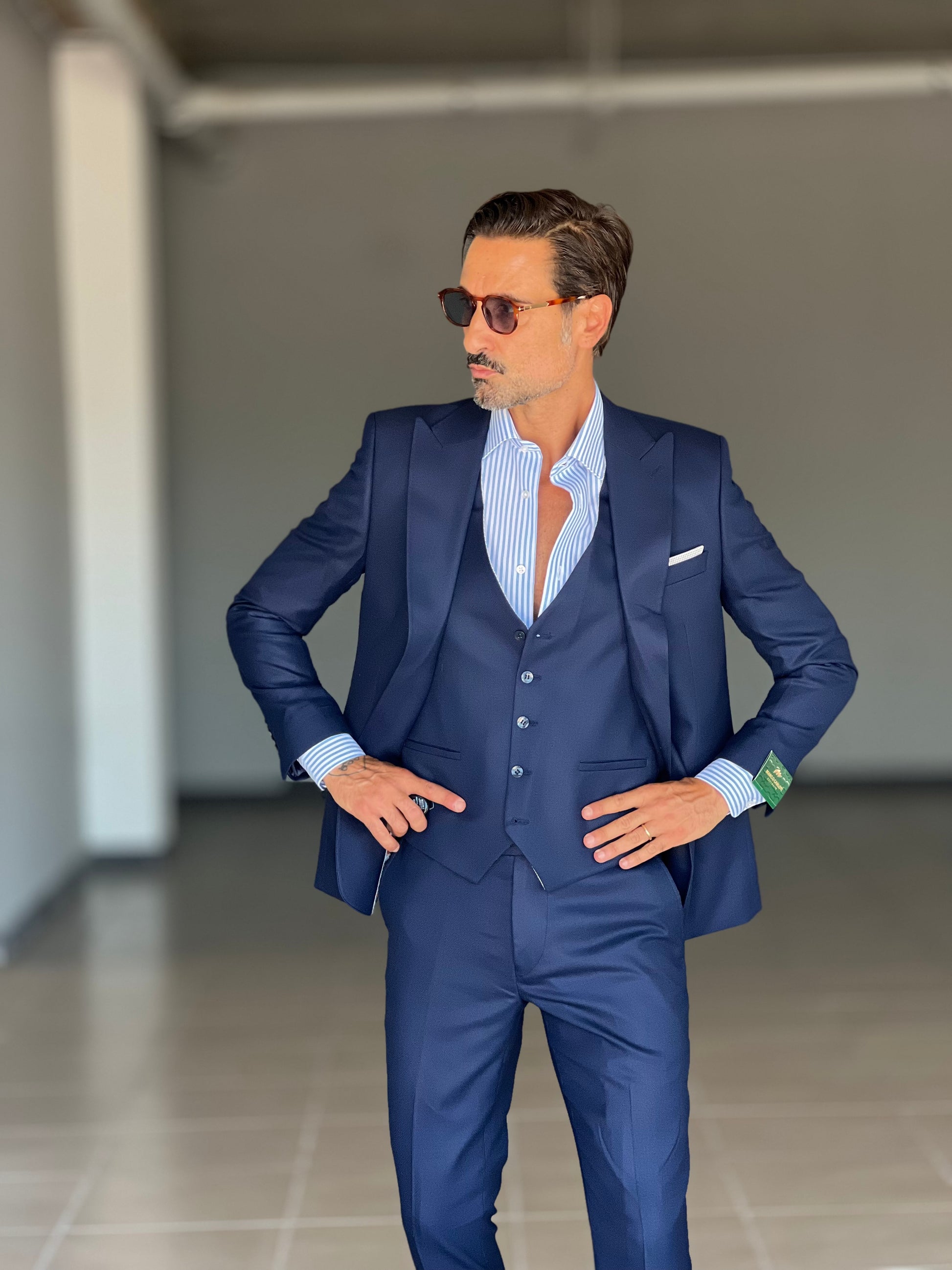 ABITO LANA E MISTI BLU 3 PEZZI GILET REVERSIBILE