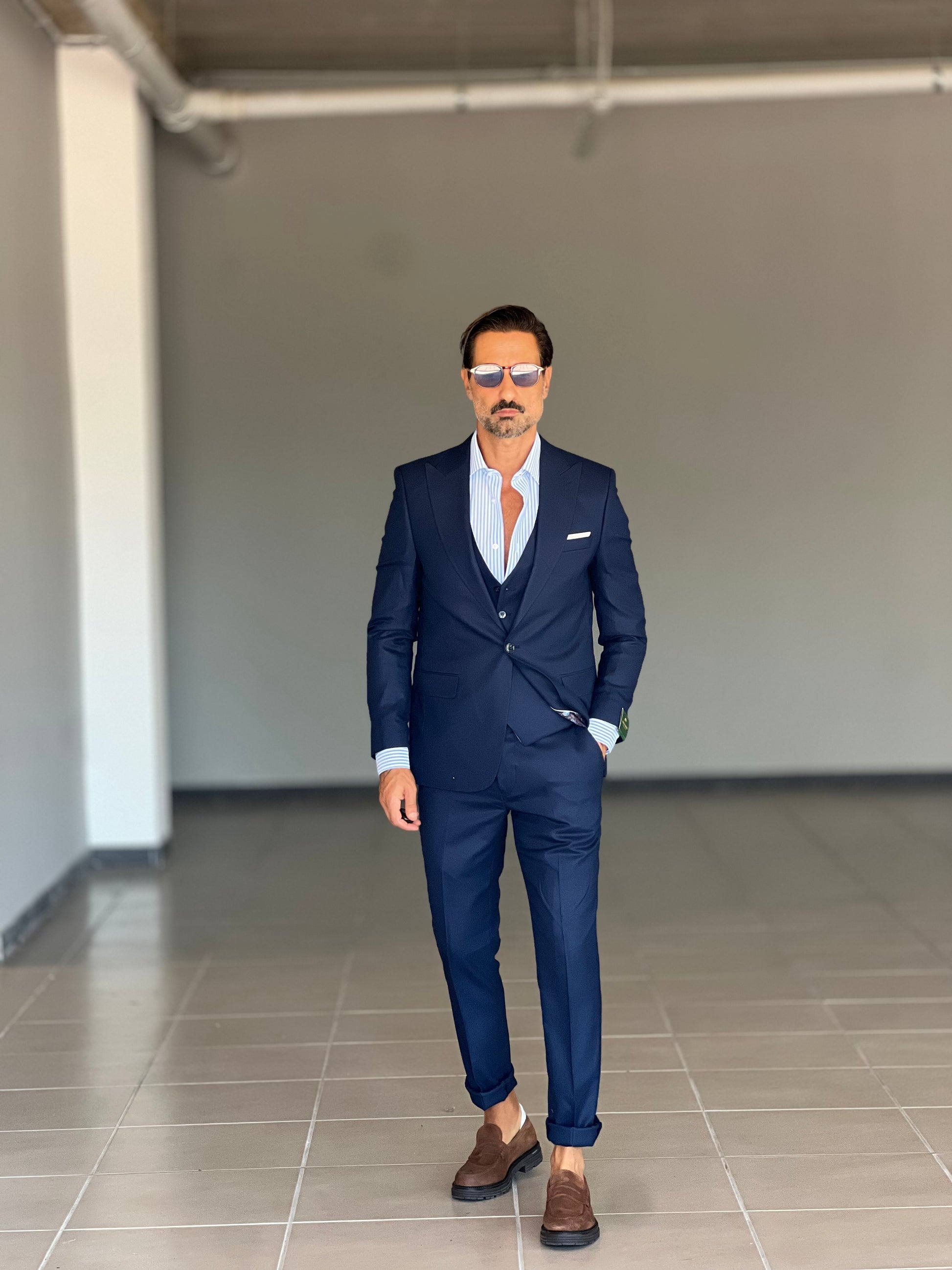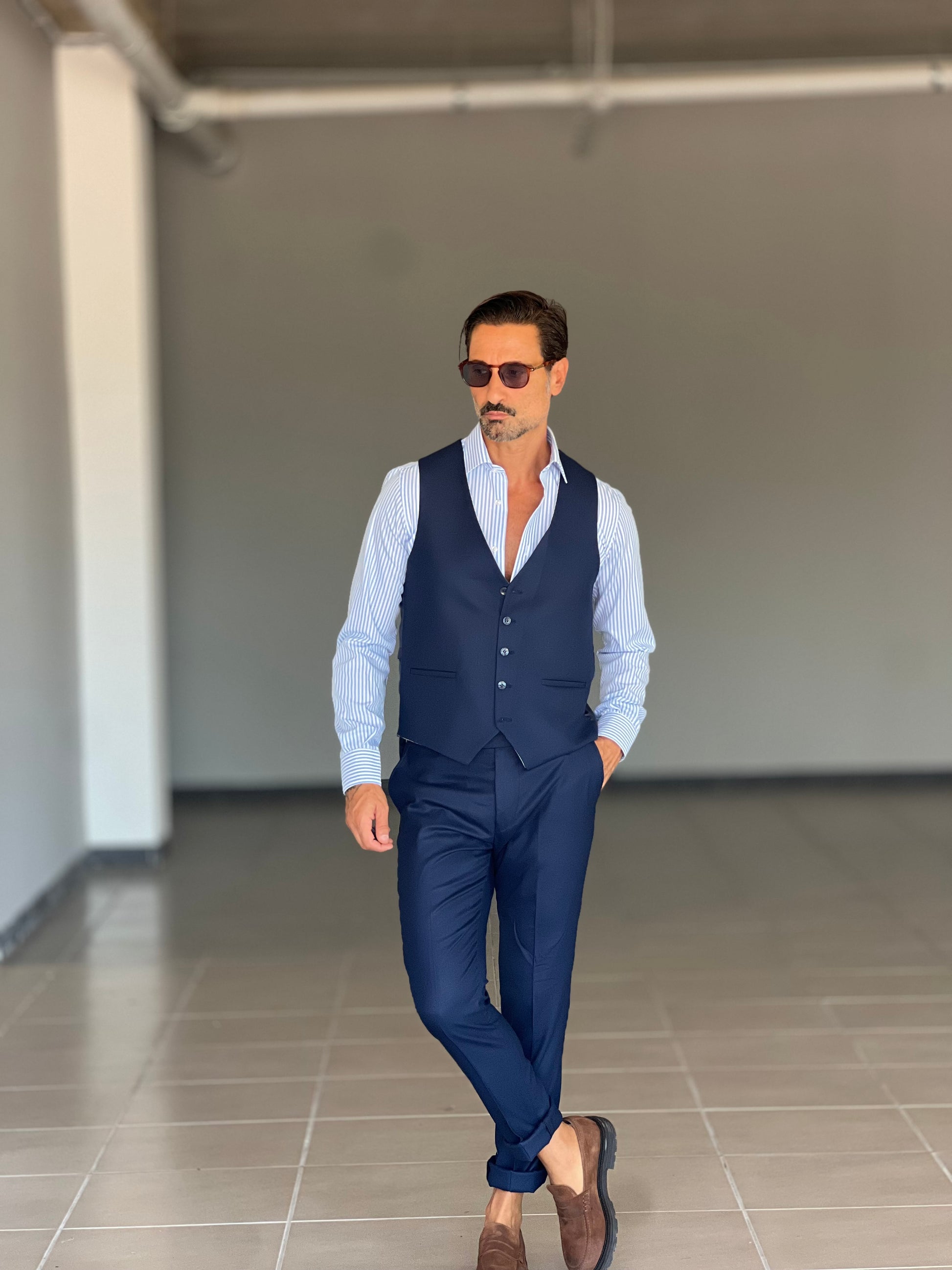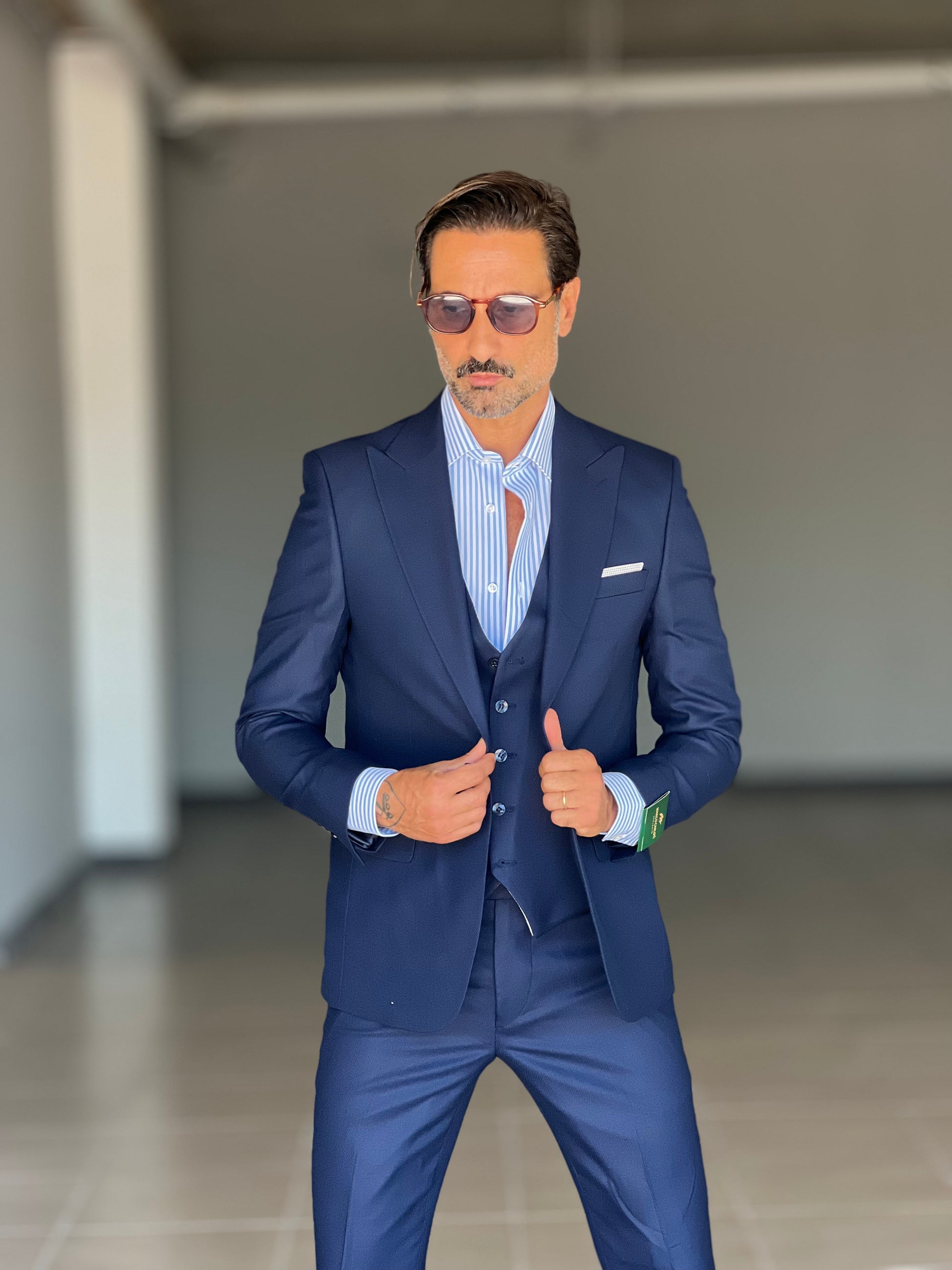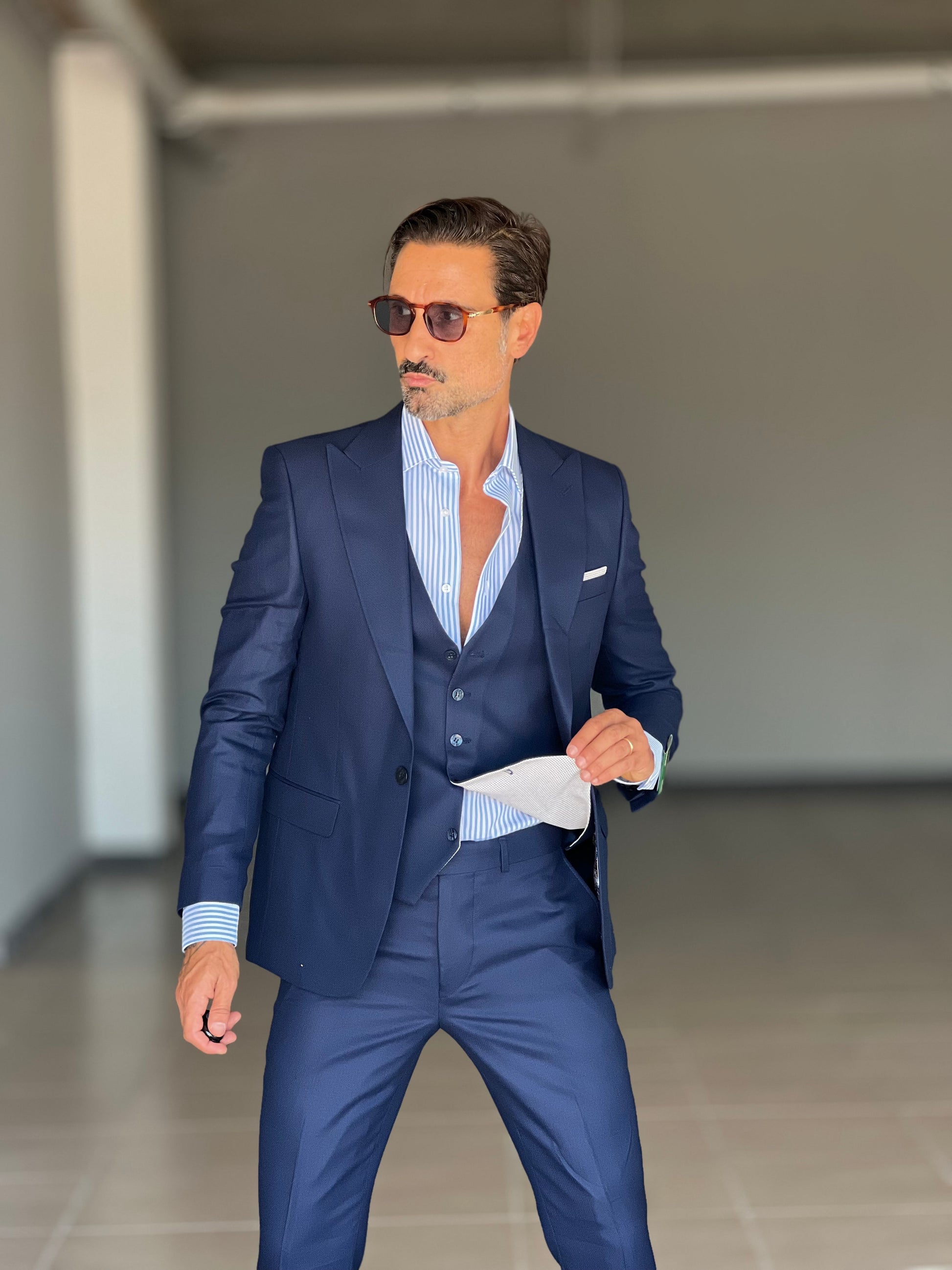 ABITO LANA E MISTI BLU 3 PEZZI GILET REVERSIBILE