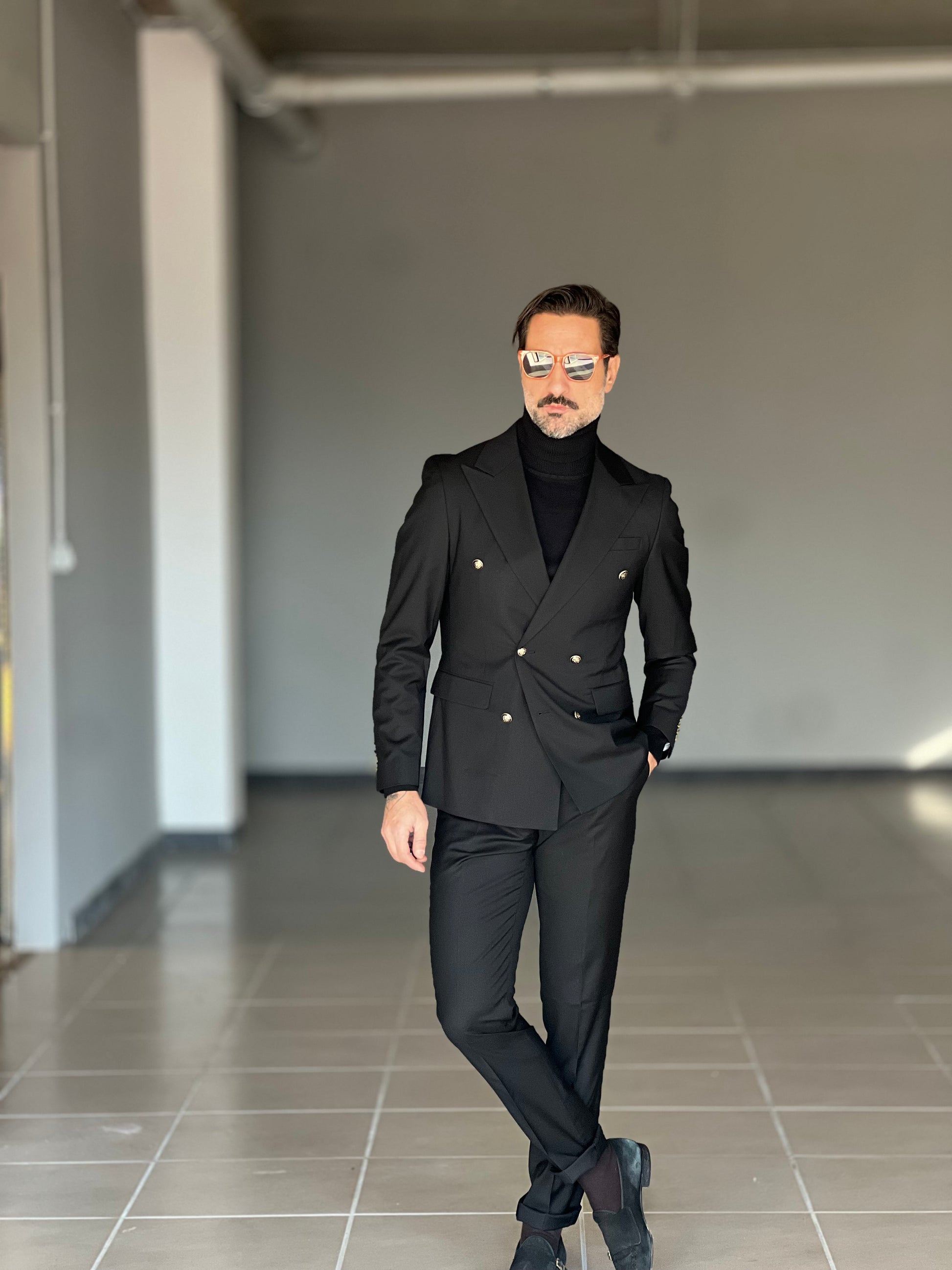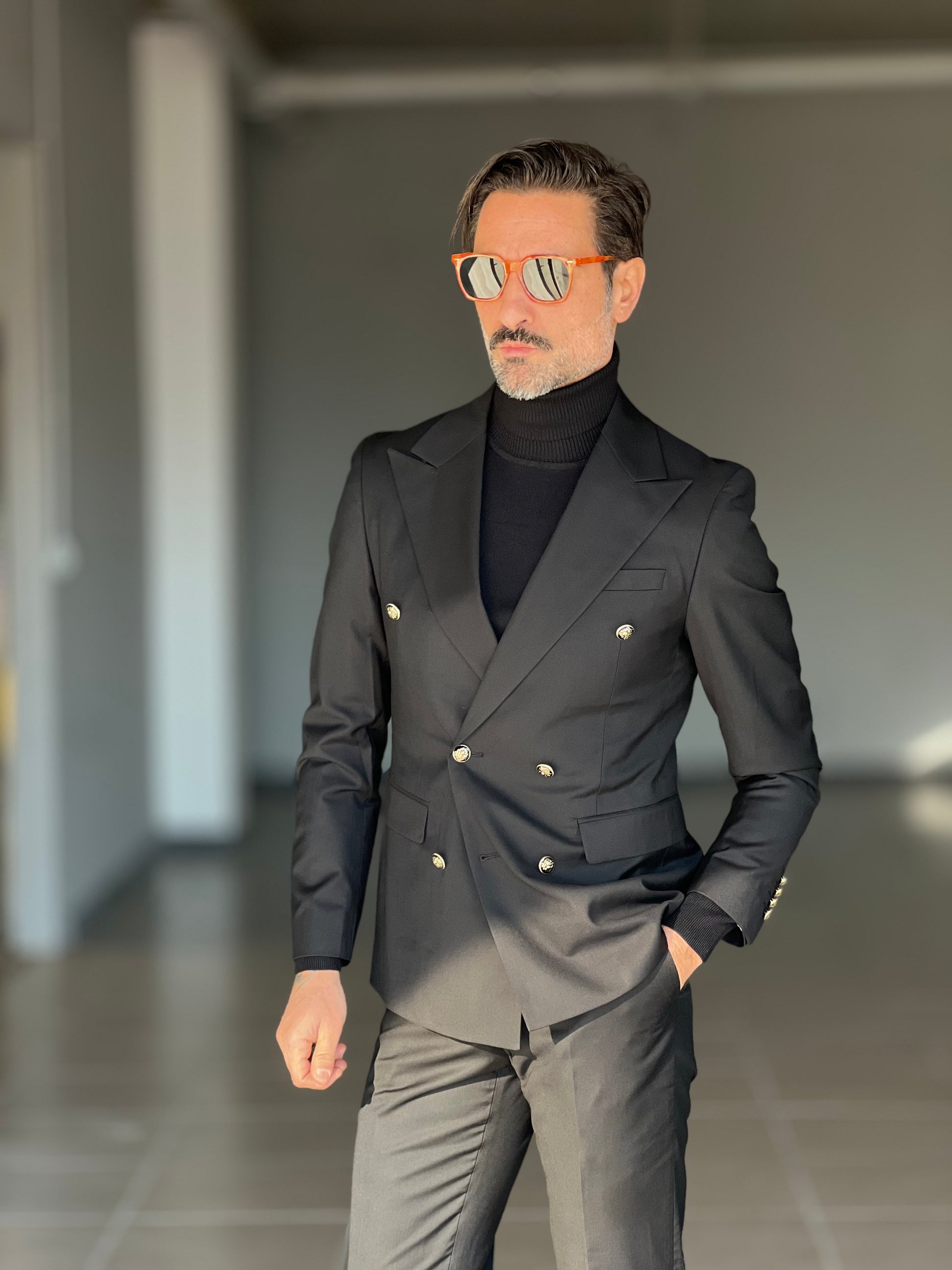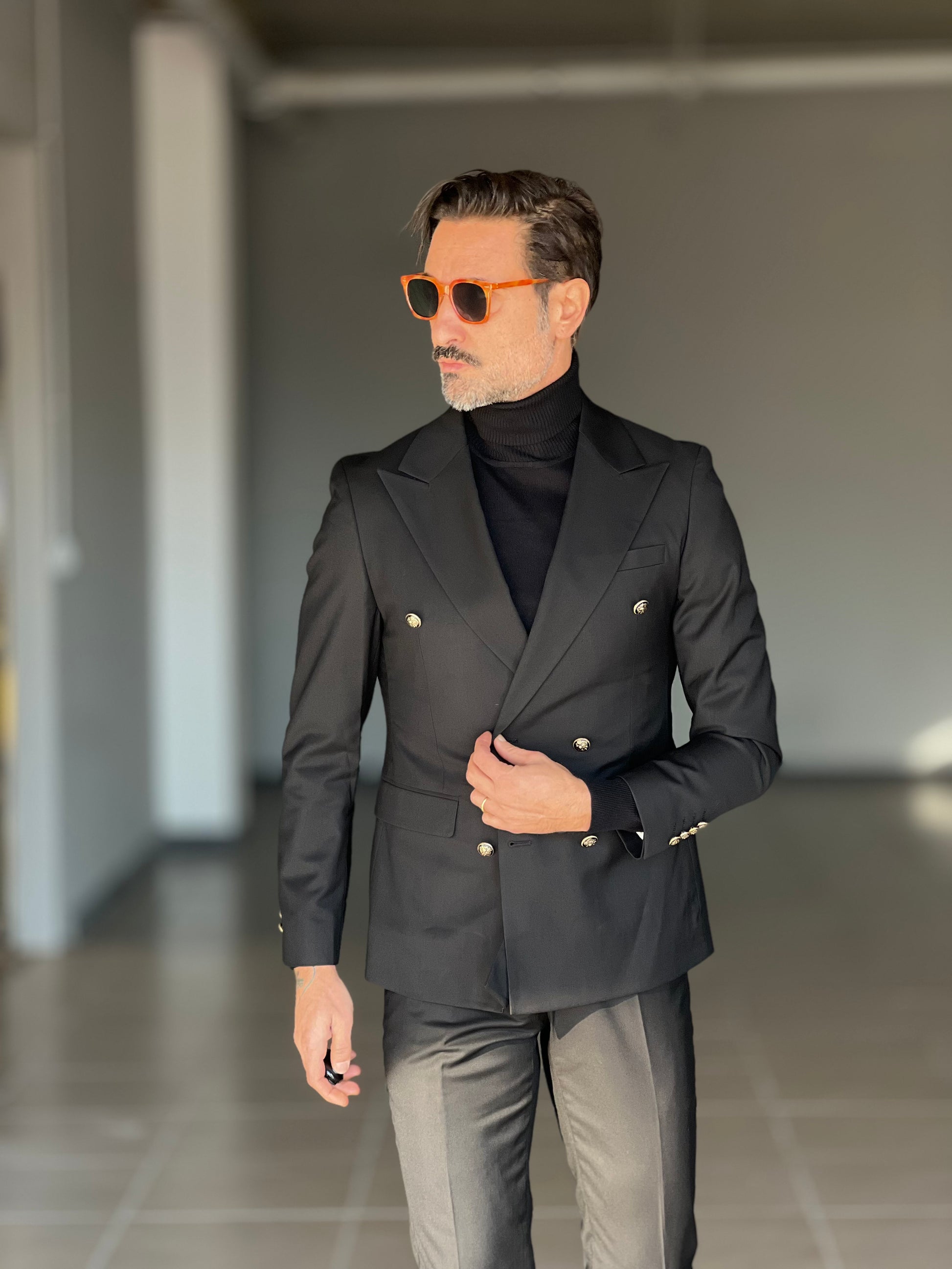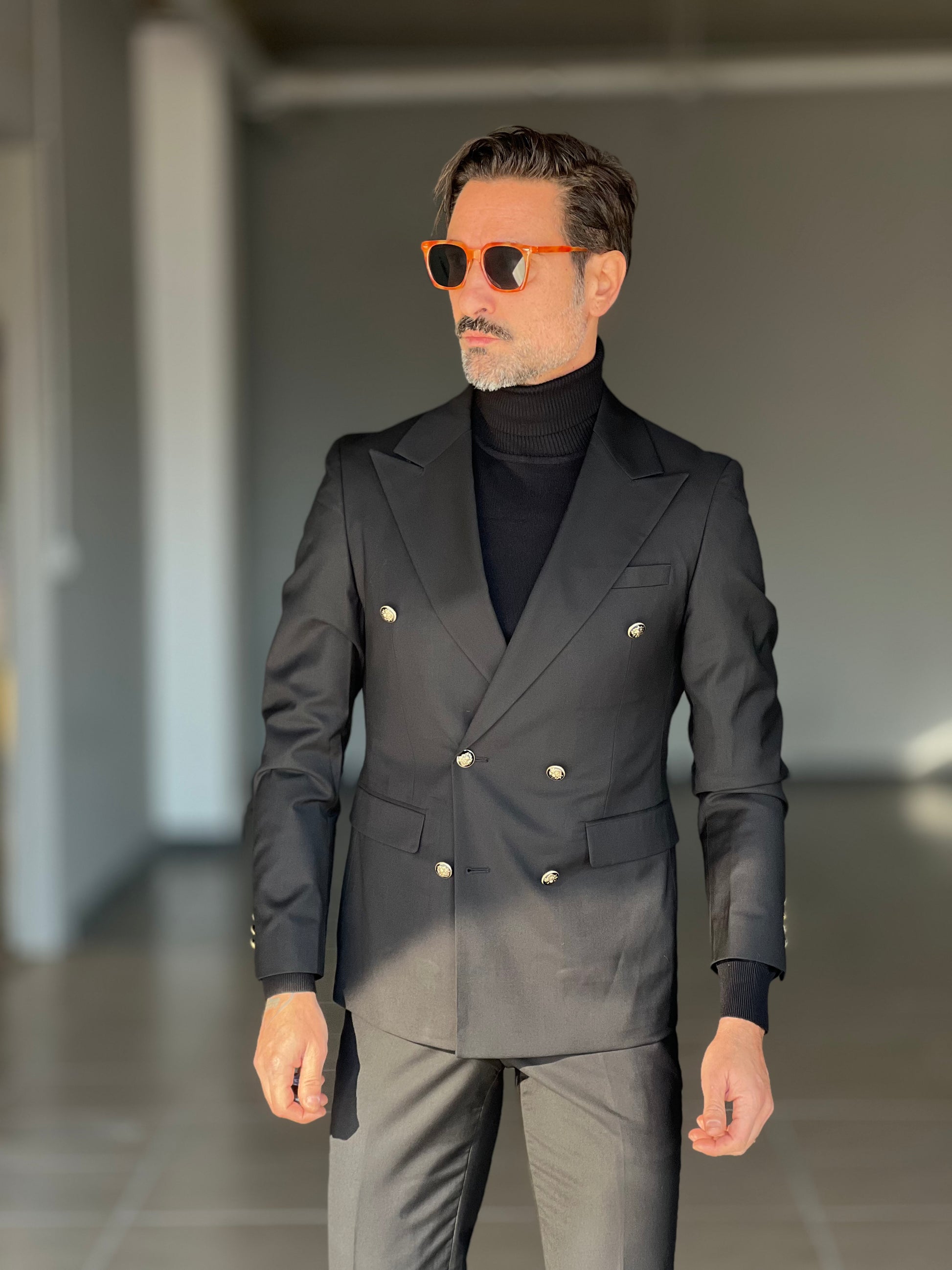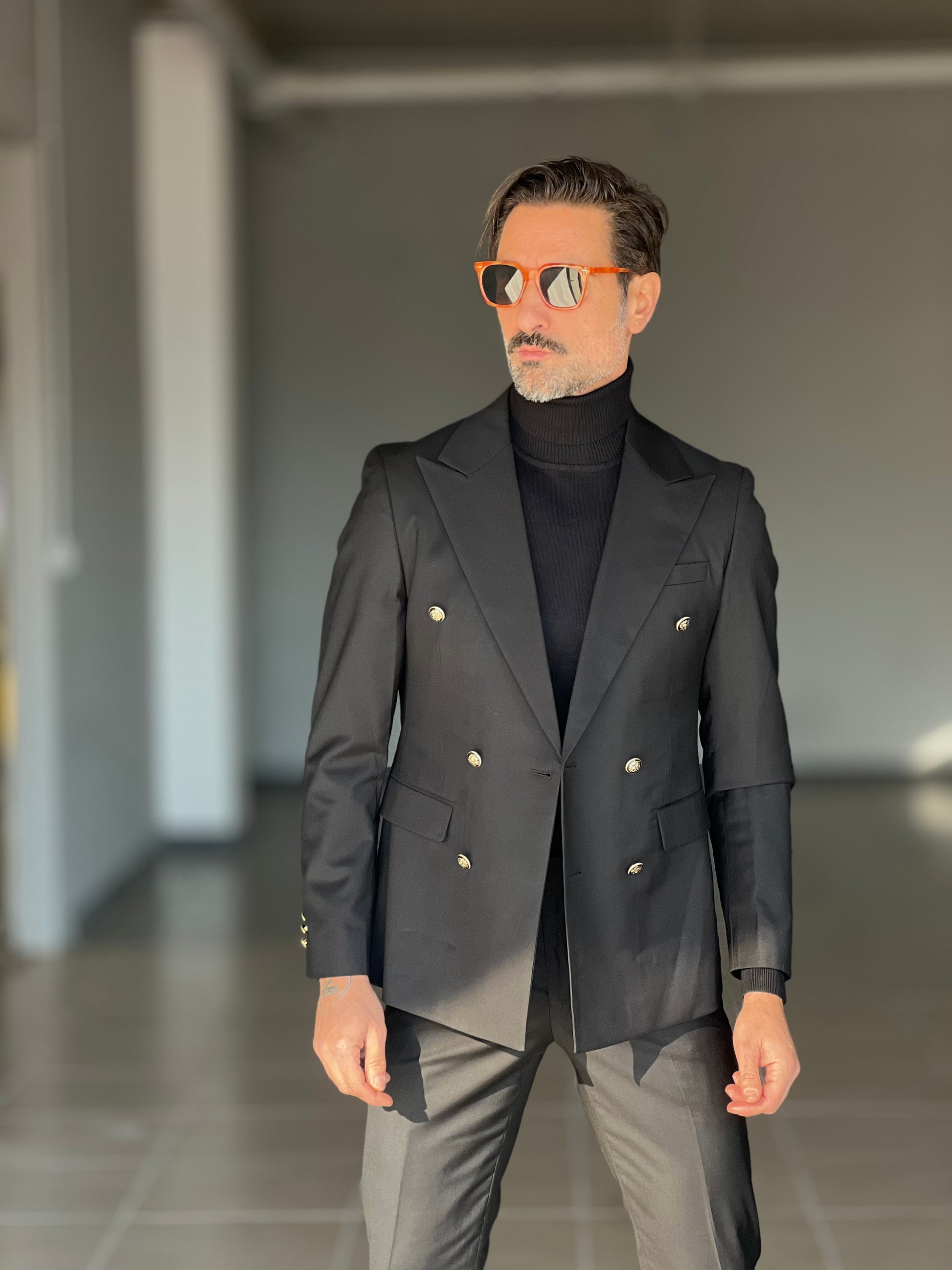 ABITO NERO DOPPIOPETTO BOTTONE METALLO VISCOSA E MISTI