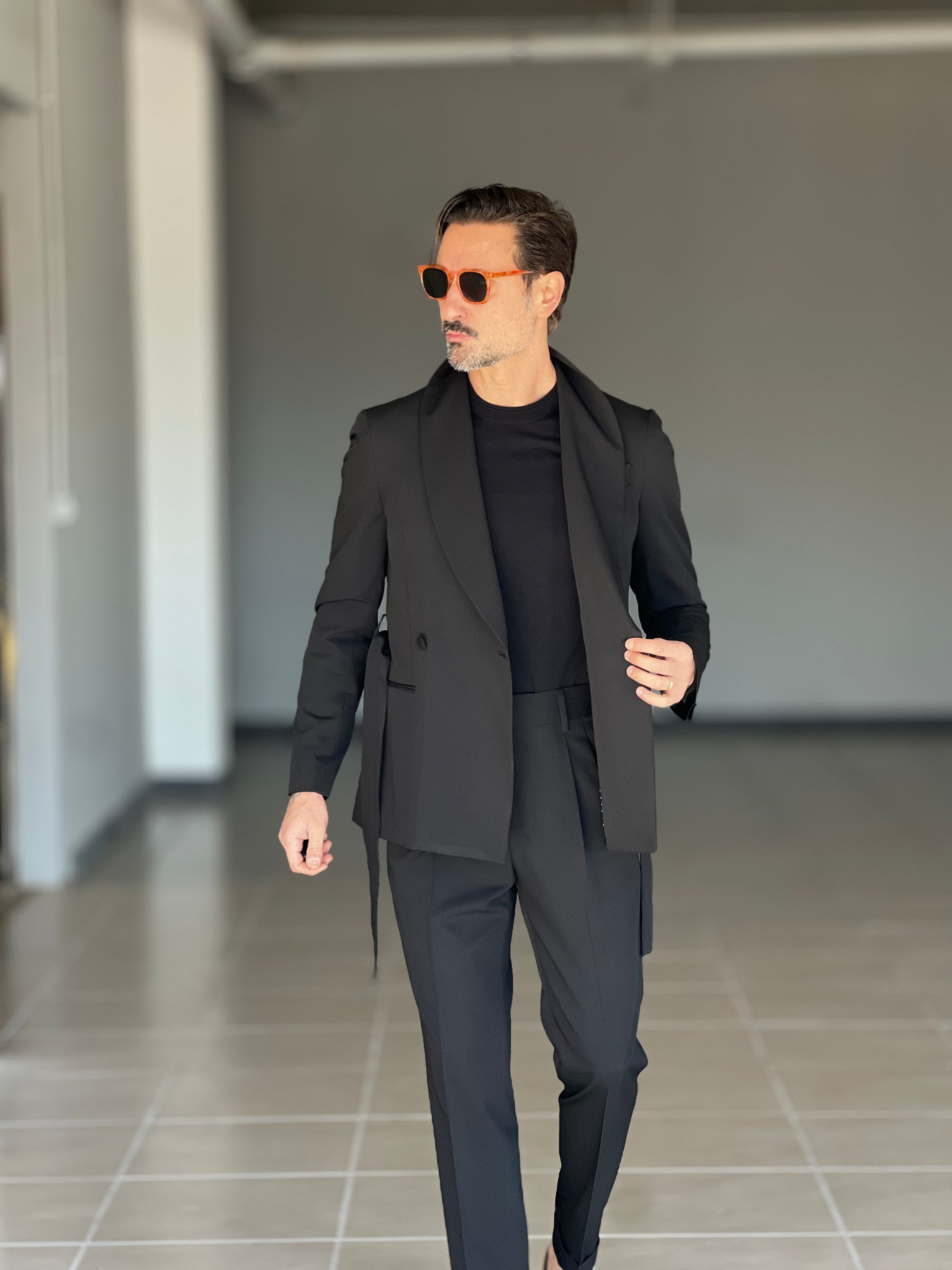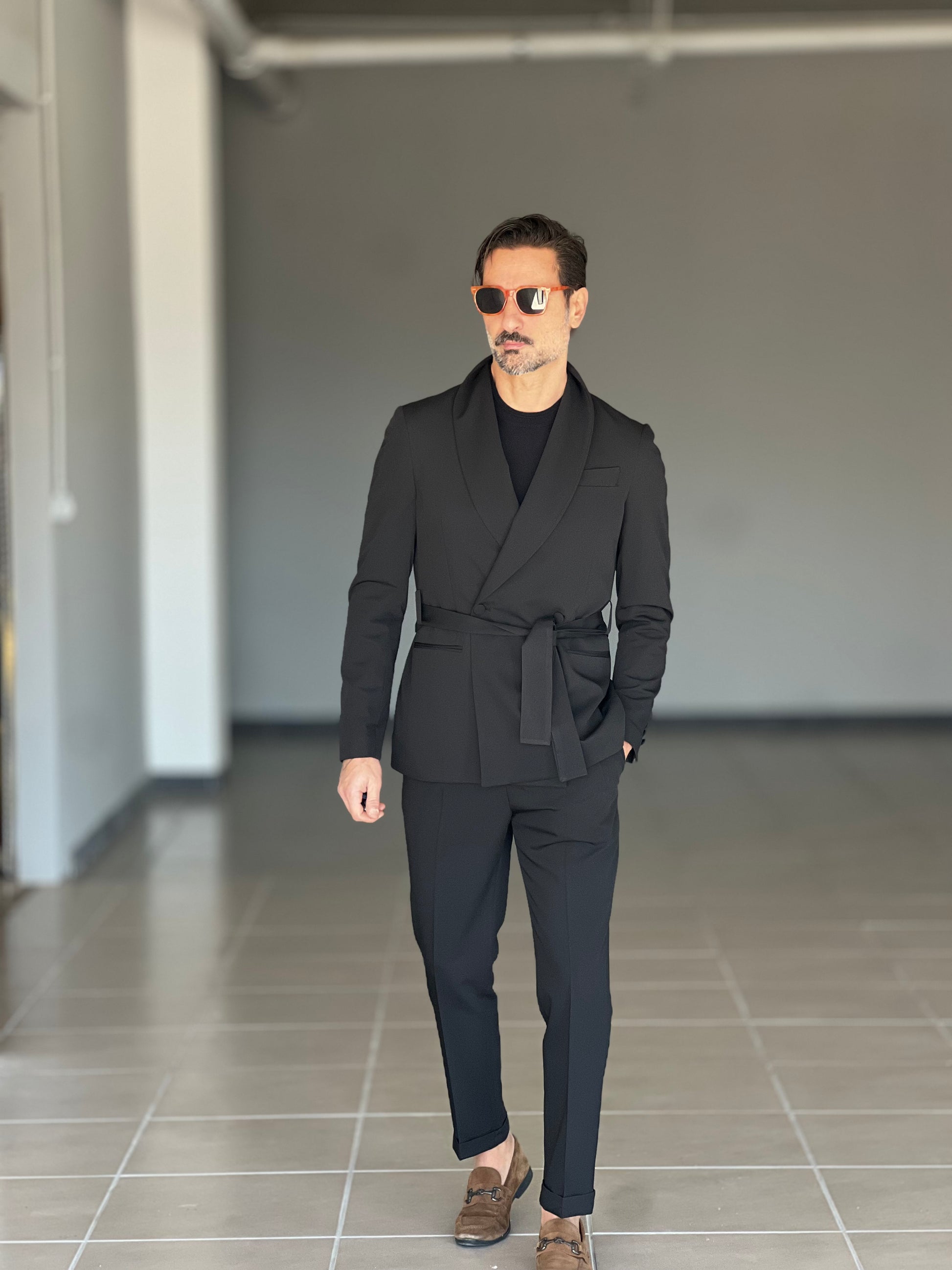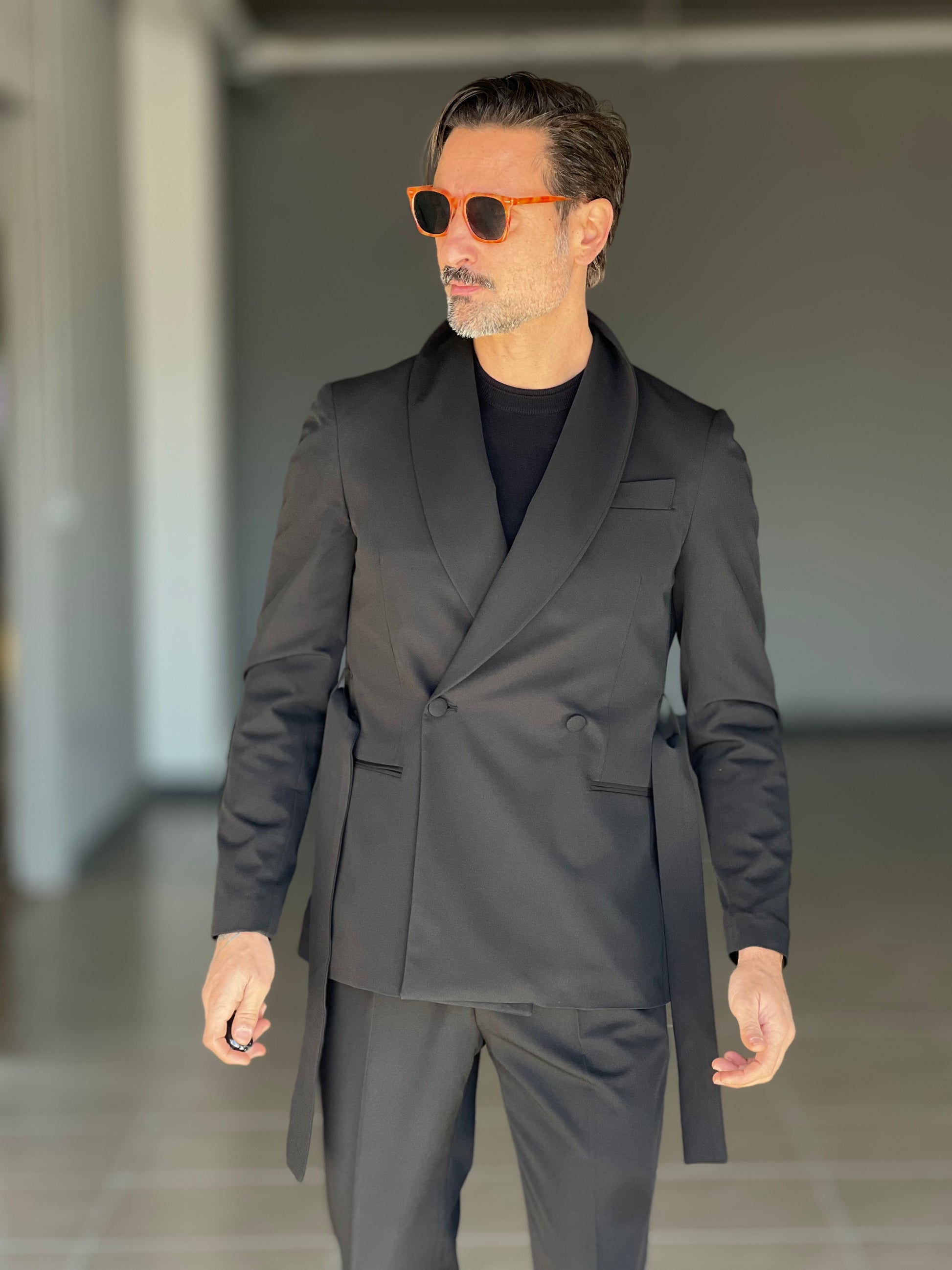 ABITO NERO DOPPIOPETTO VISCOSA CINTURA IN VITA 004