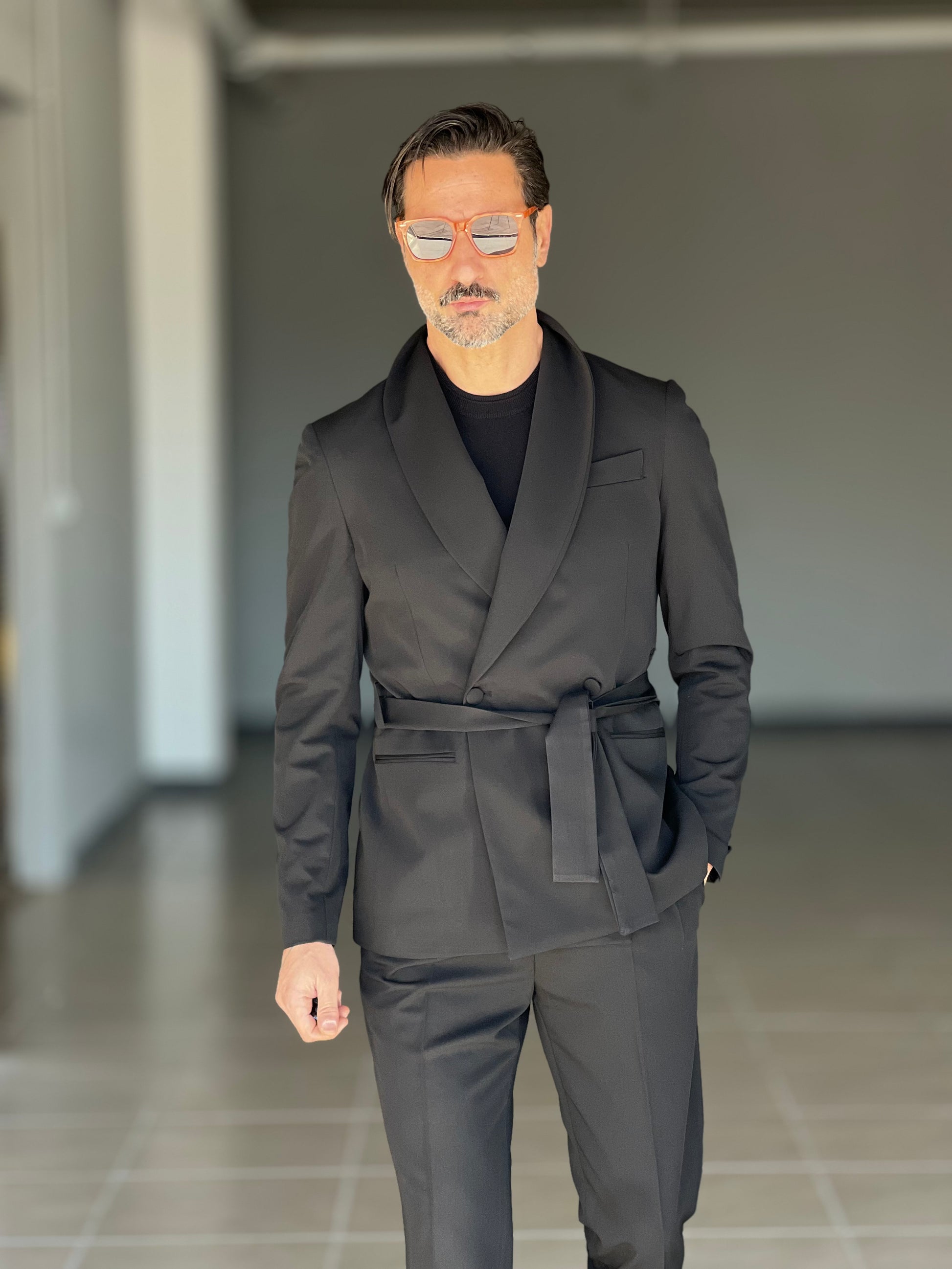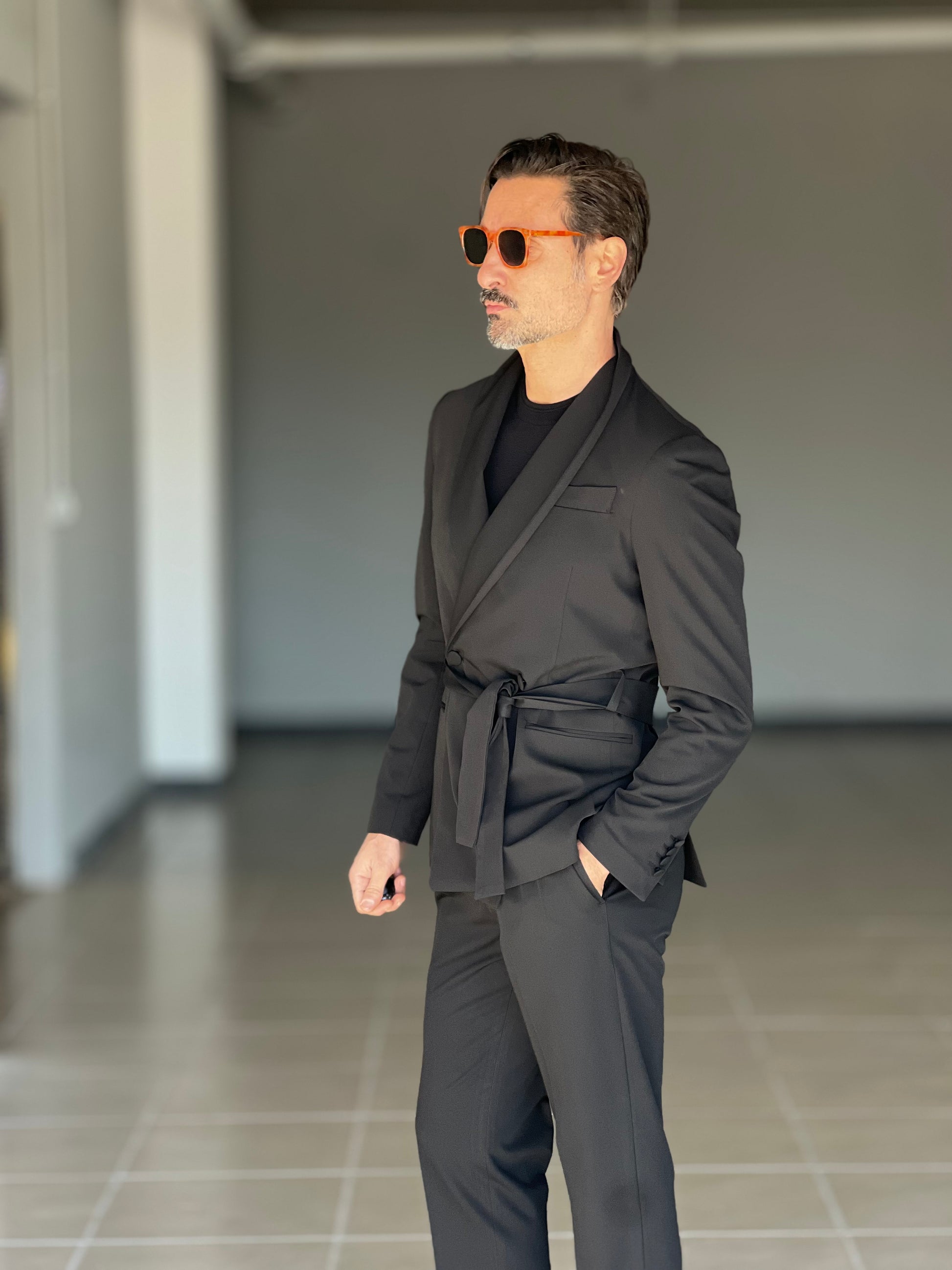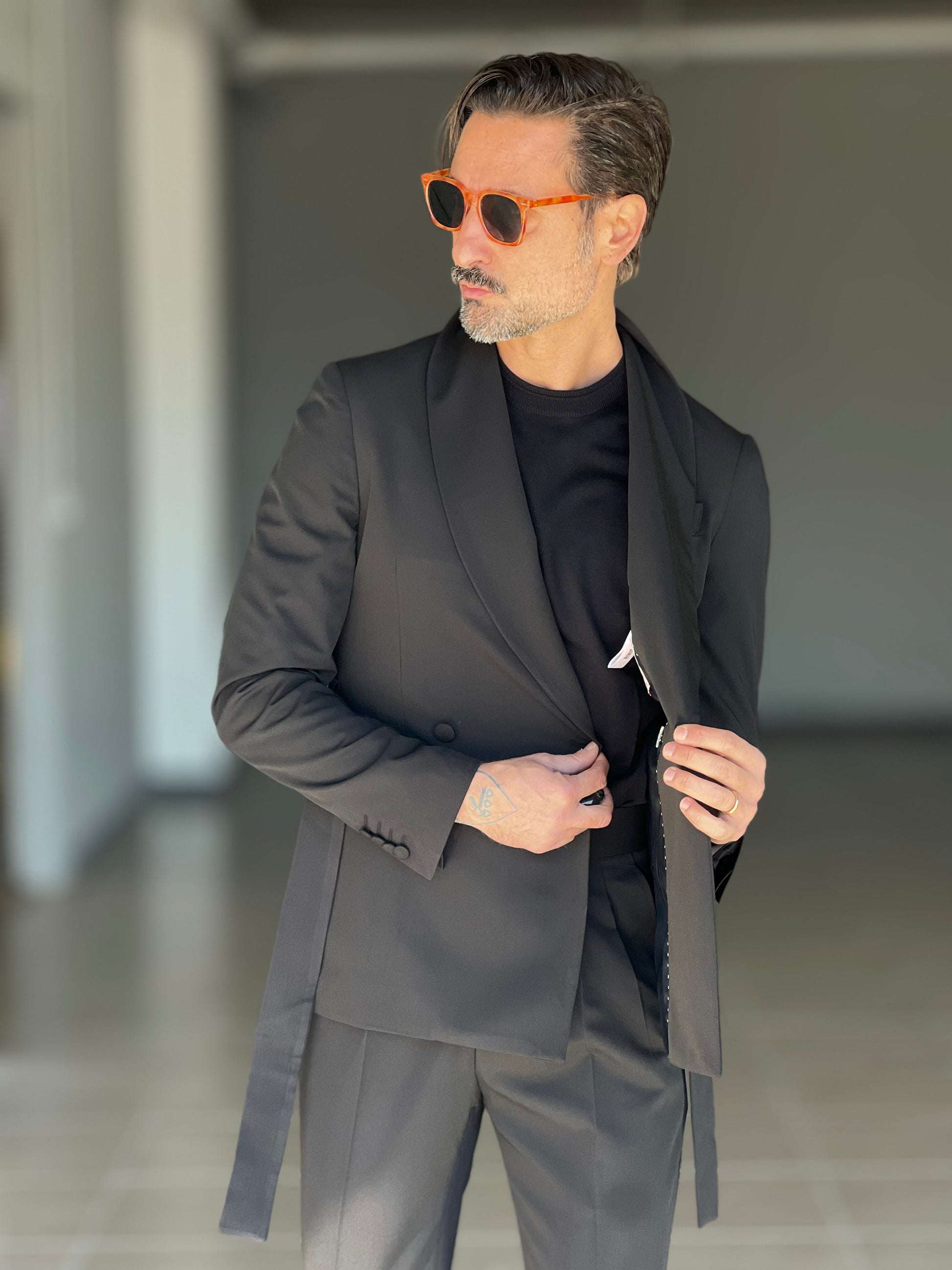 ABITO NERO DOPPIOPETTO VISCOSA CINTURA IN VITA 004