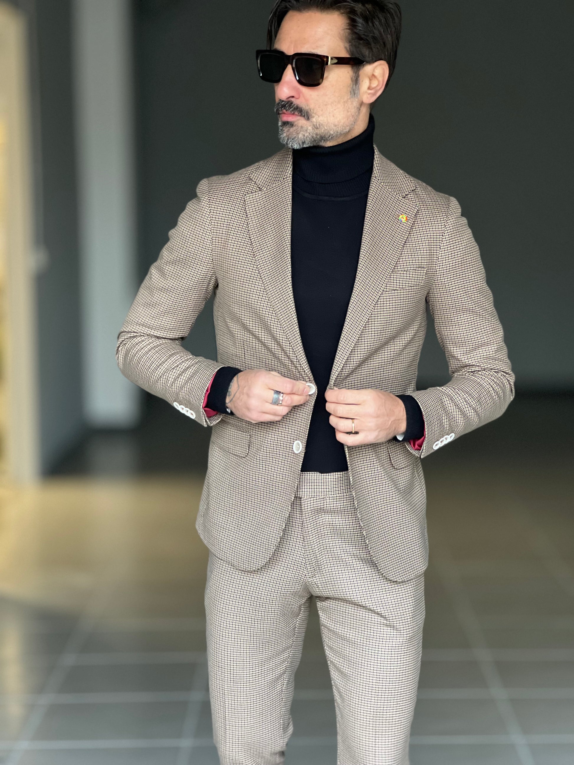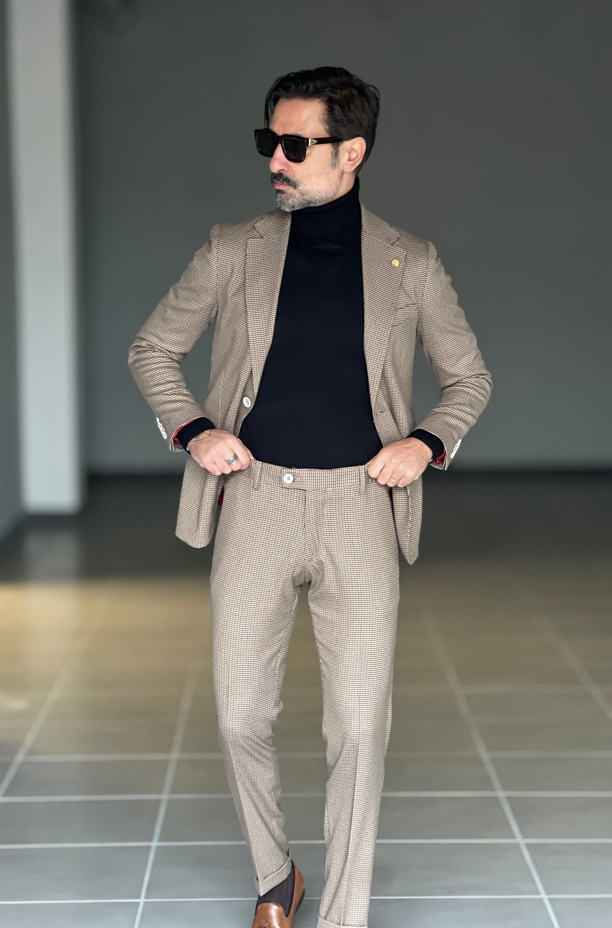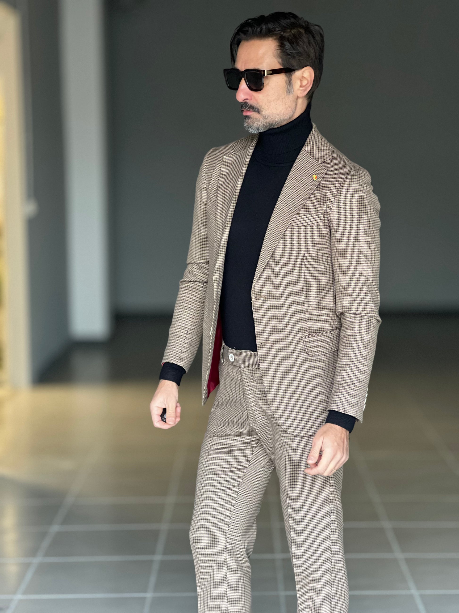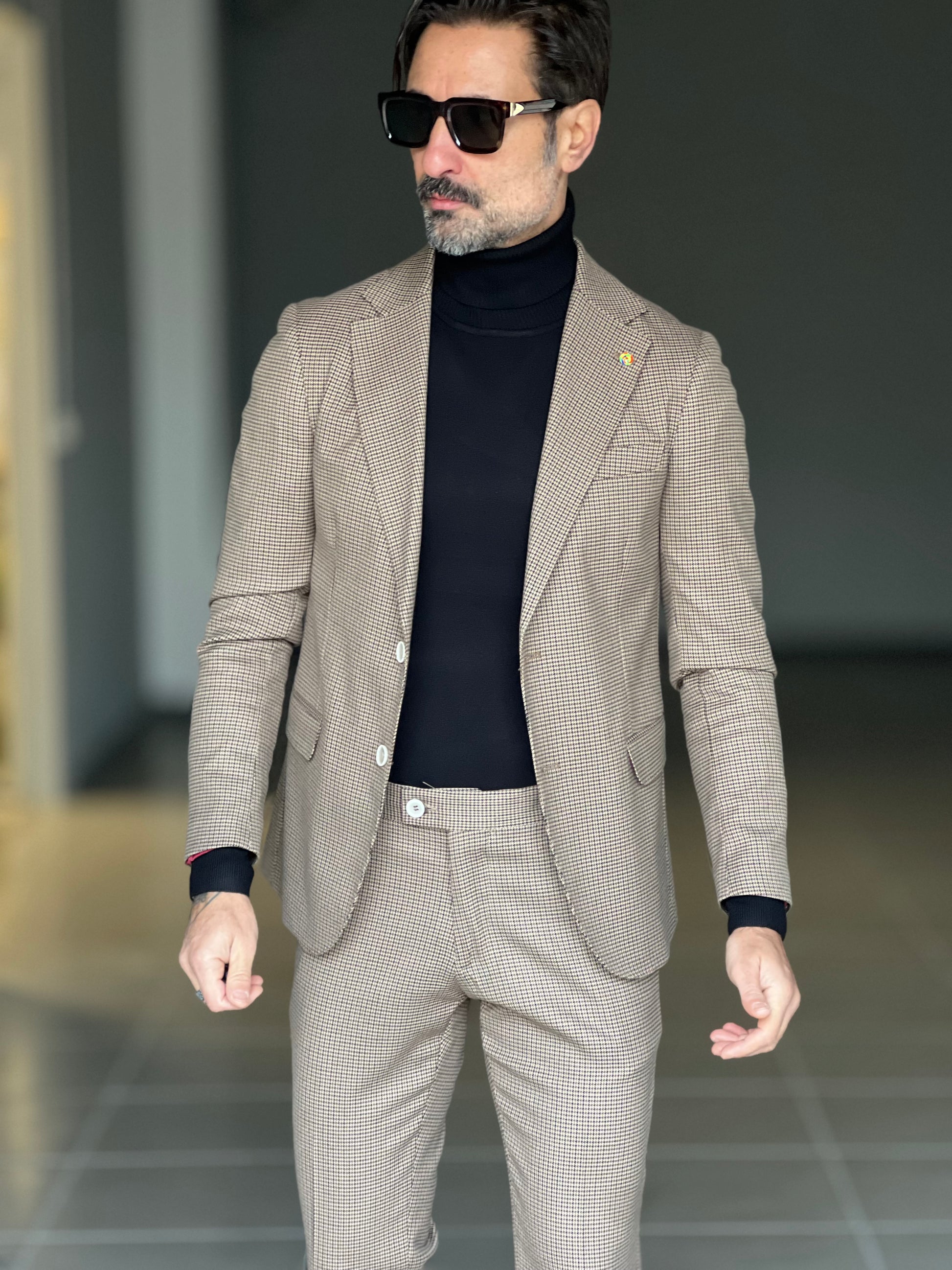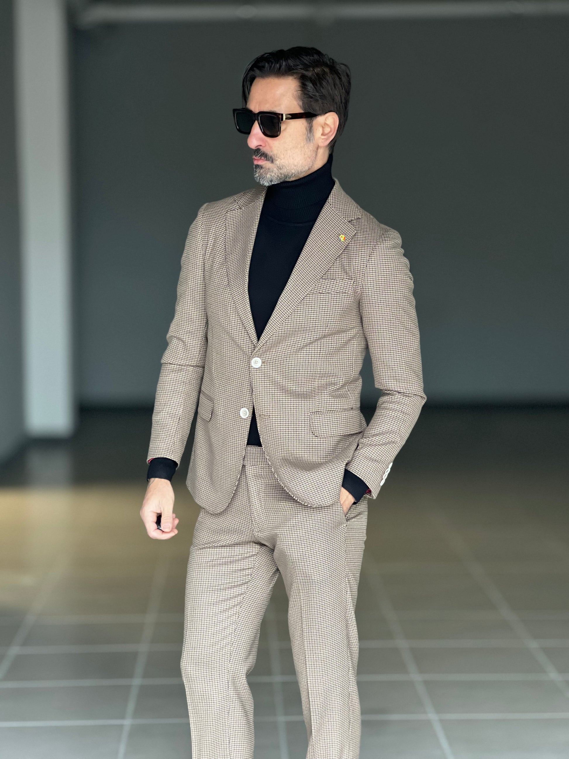 ABITO PIE DE POULE FONDO BEIGE PUNTO MILANO