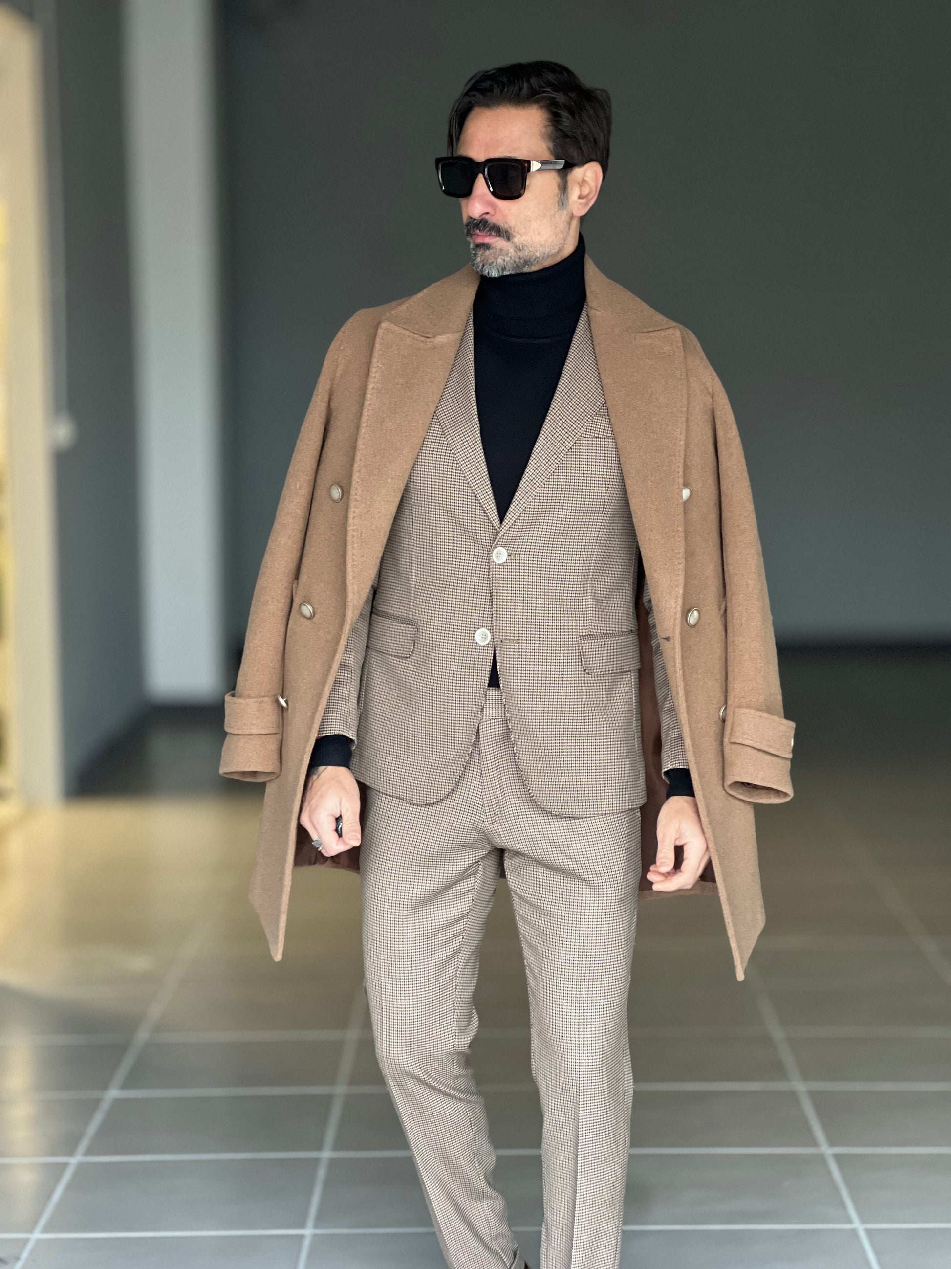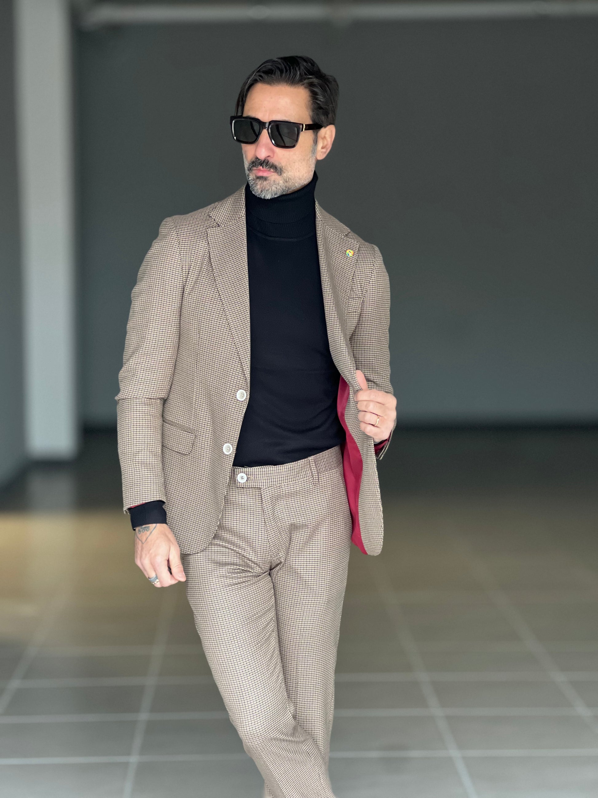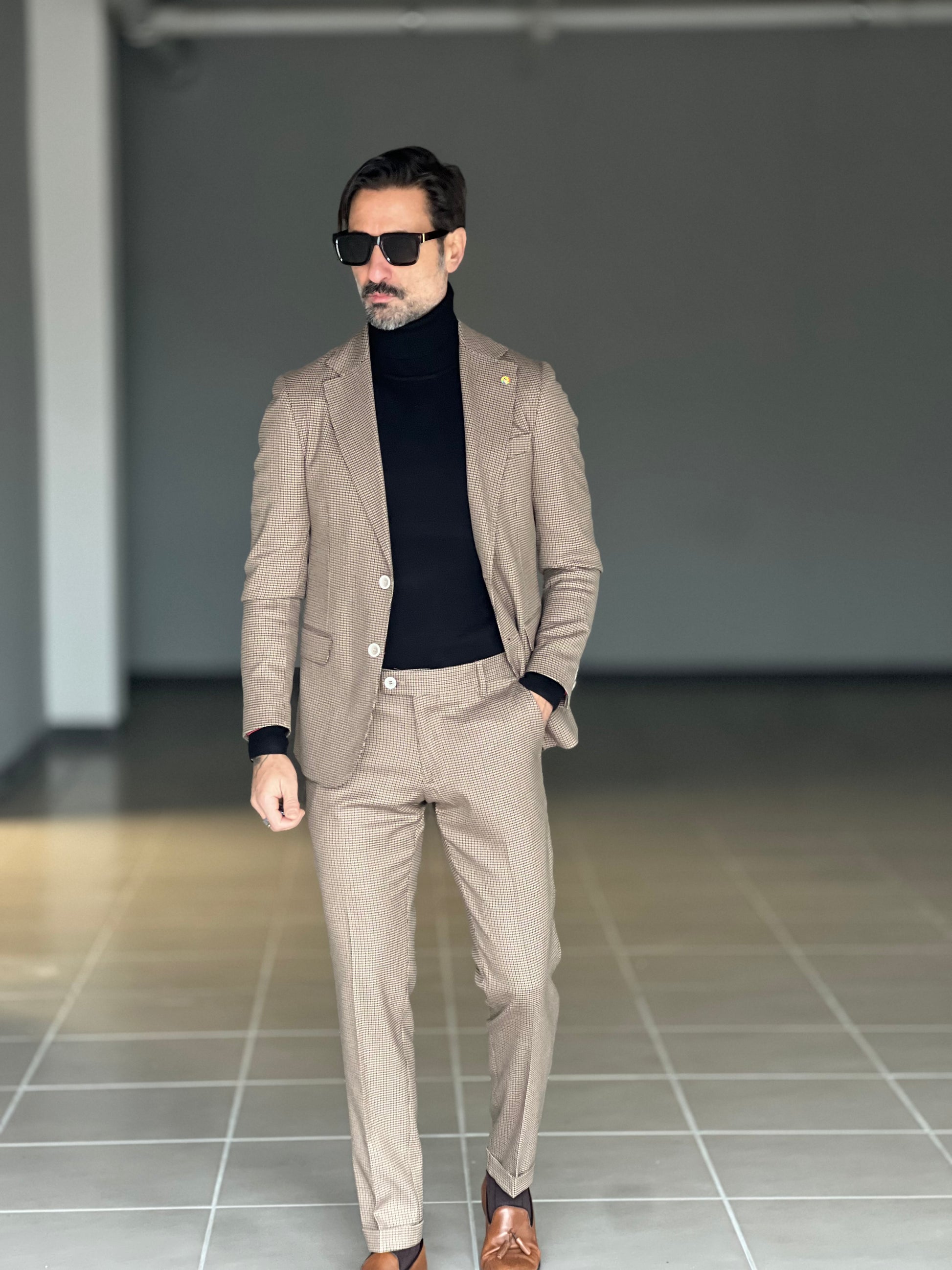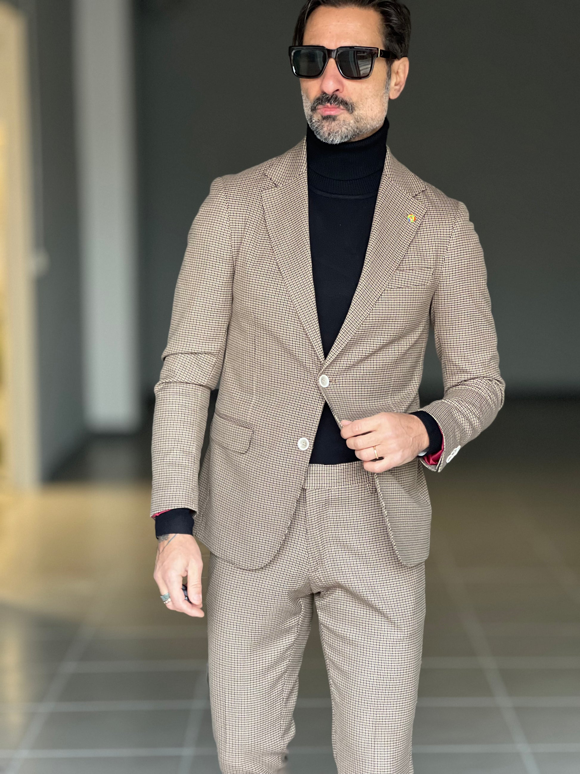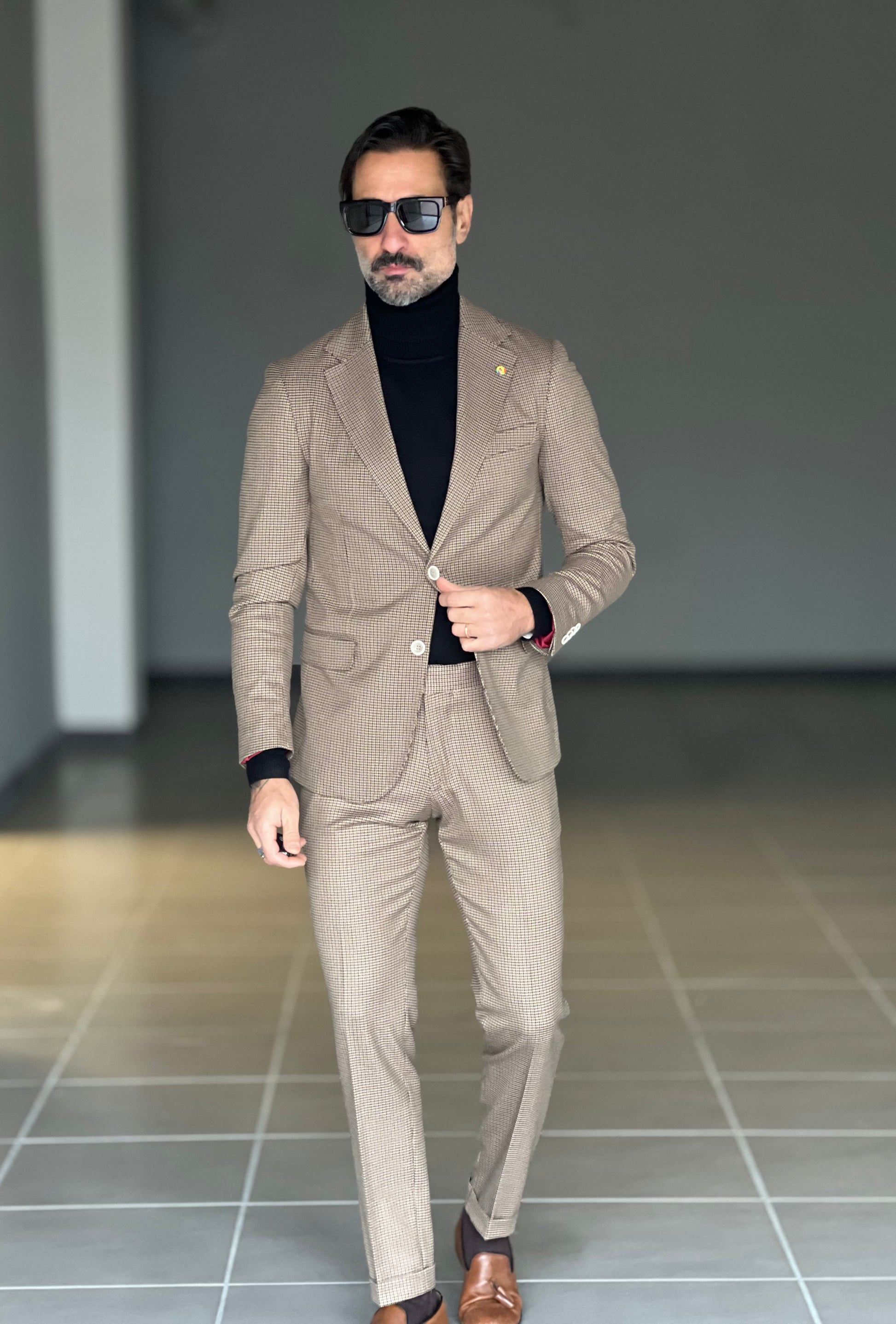 ABITO PIE DE POULE FONDO BEIGE PUNTO MILANO