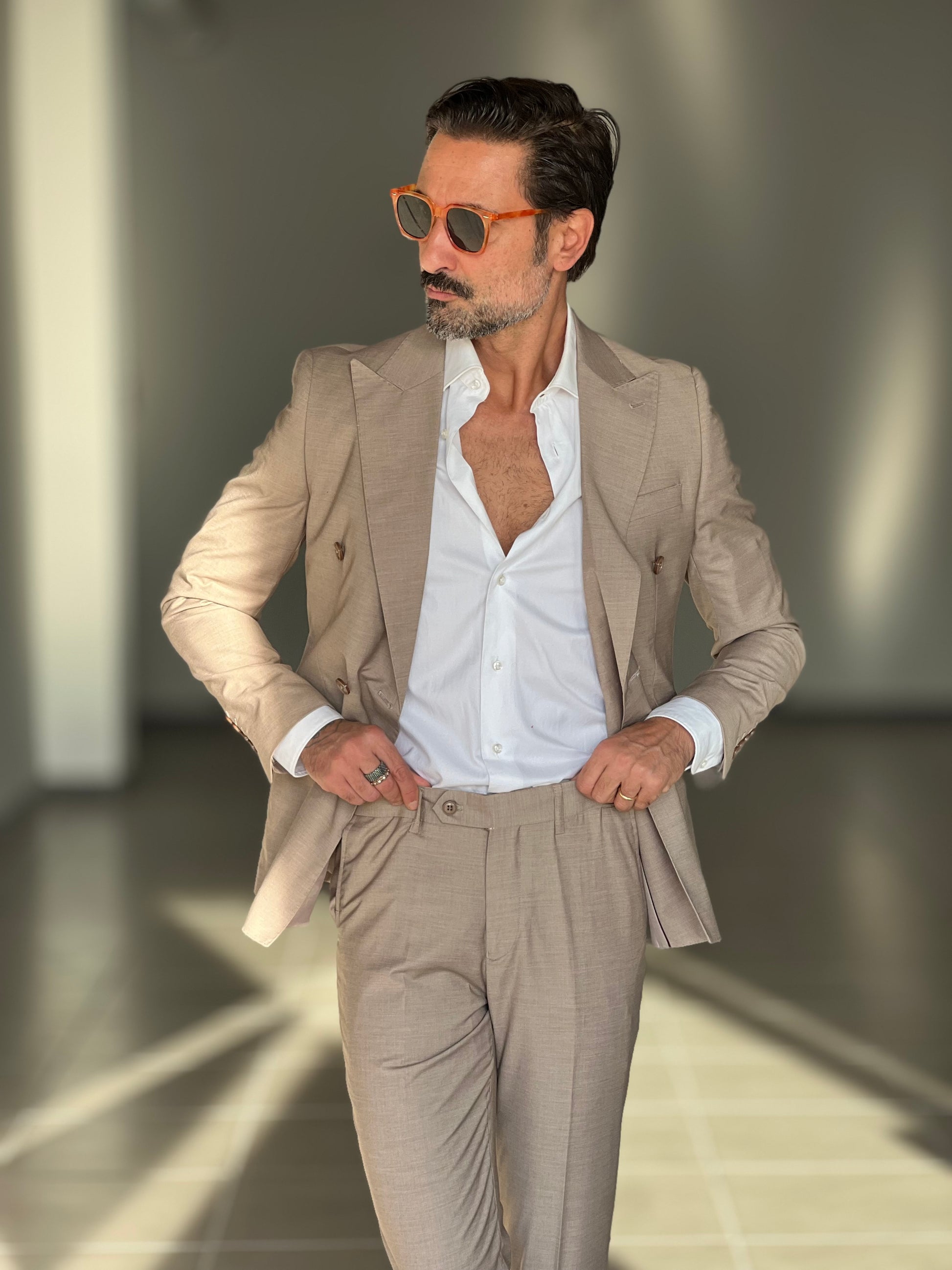 ABITO TABACCO DOPPIOPETTO BOTTONE OSSO VISCOSA E MISTI