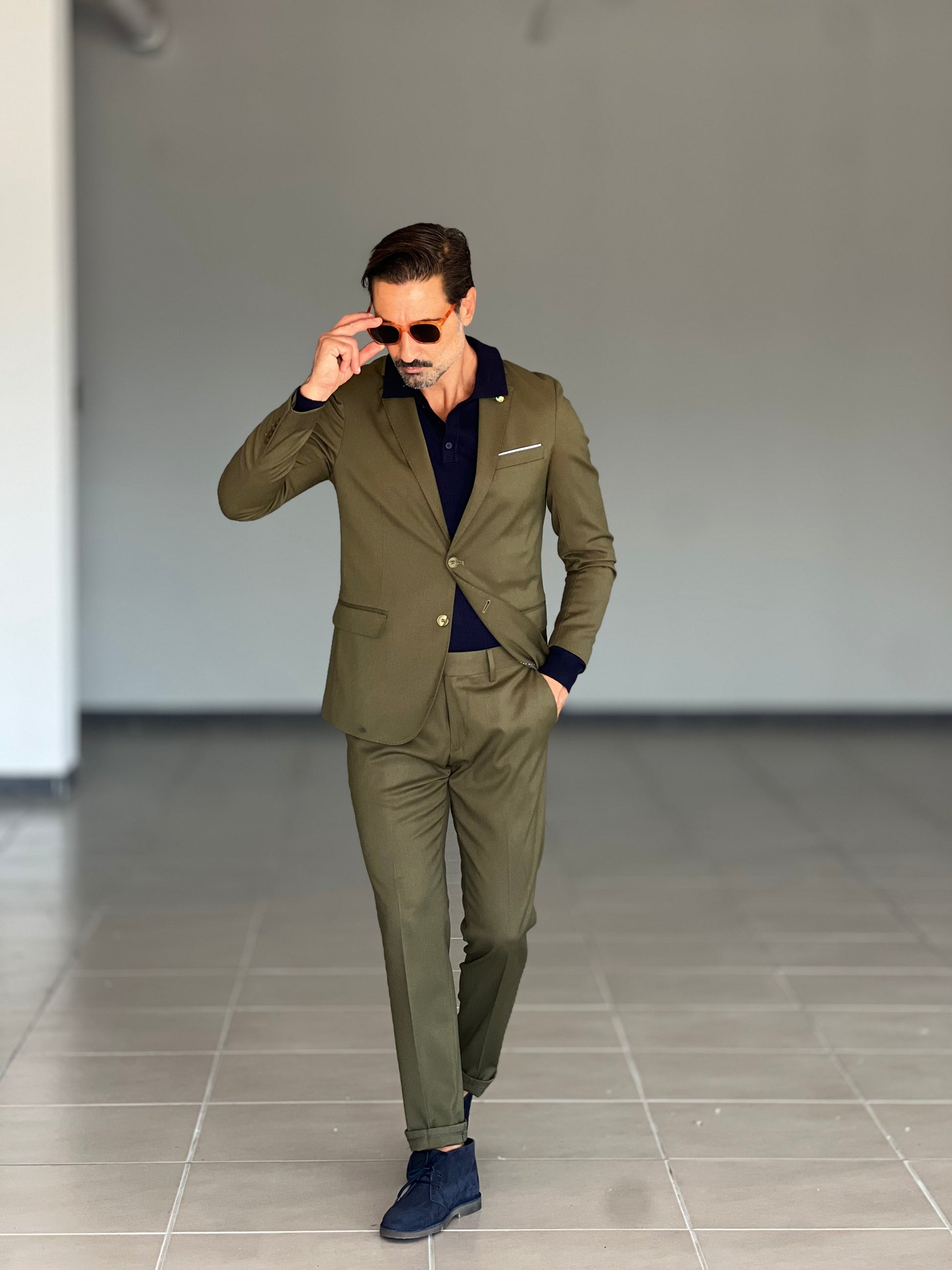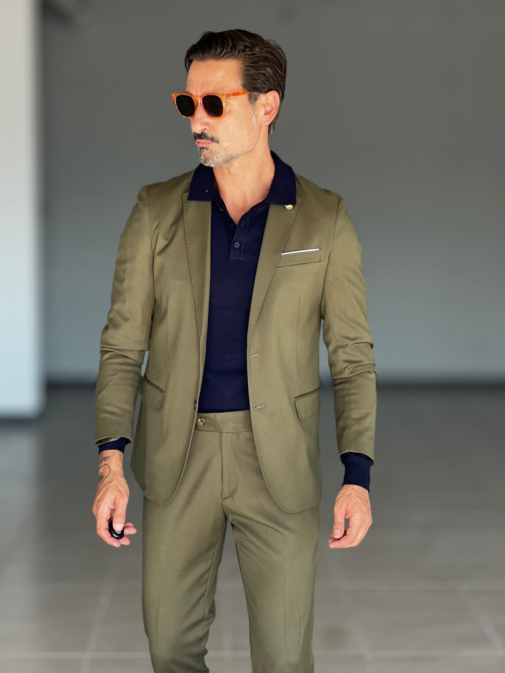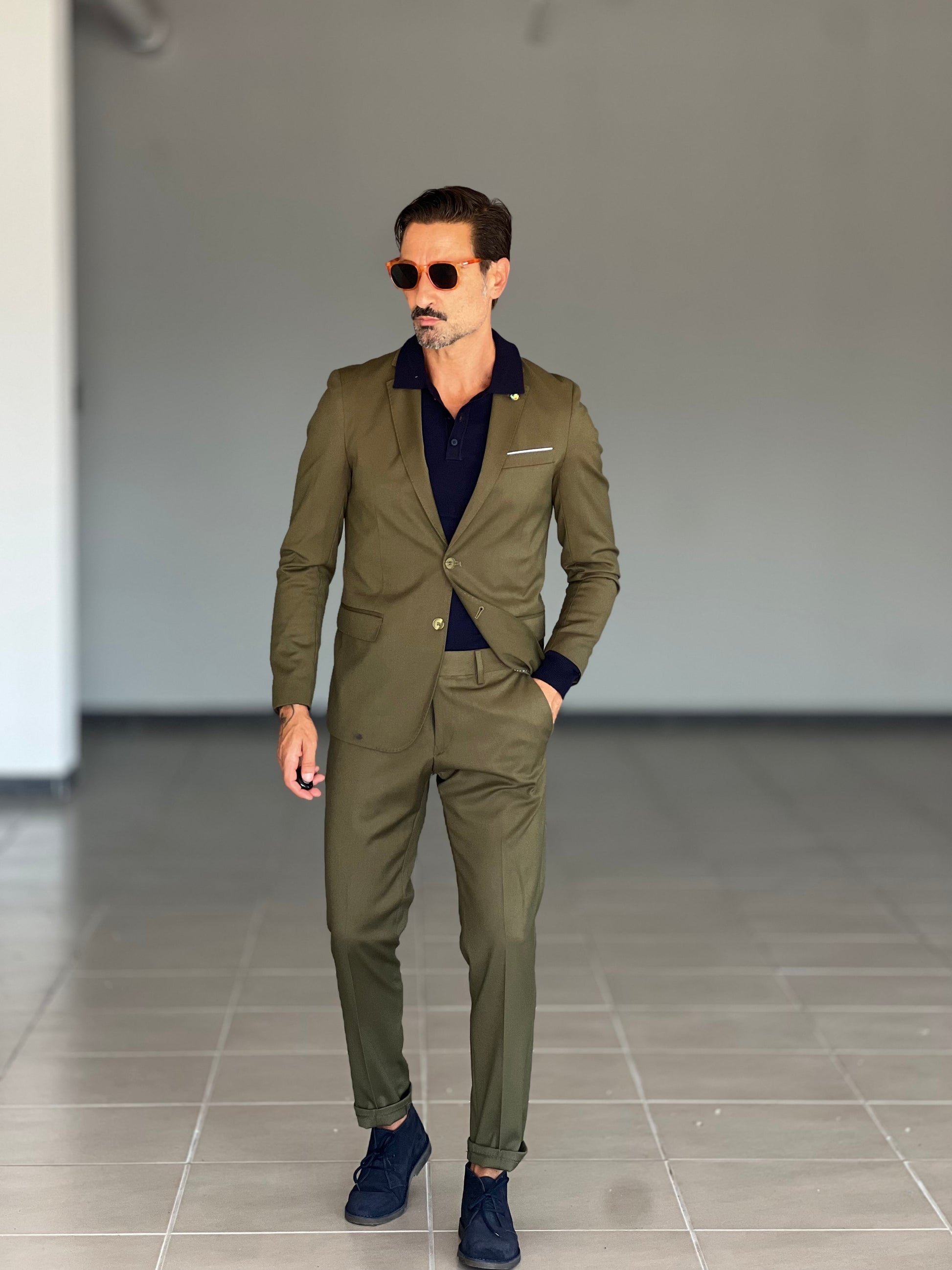 Questo abito monopetto verde oliva in viscosa offre un raffinato mix di comfort e stile. Il tessuto leggero garantisce traspirabilità, rendendolo ideale sia per contesti professionali che casual. Il taglio sartoriale esalta la silhouette, offrendo un look sofisticato che si adatta perfettamente sia al giorno che alla sera.