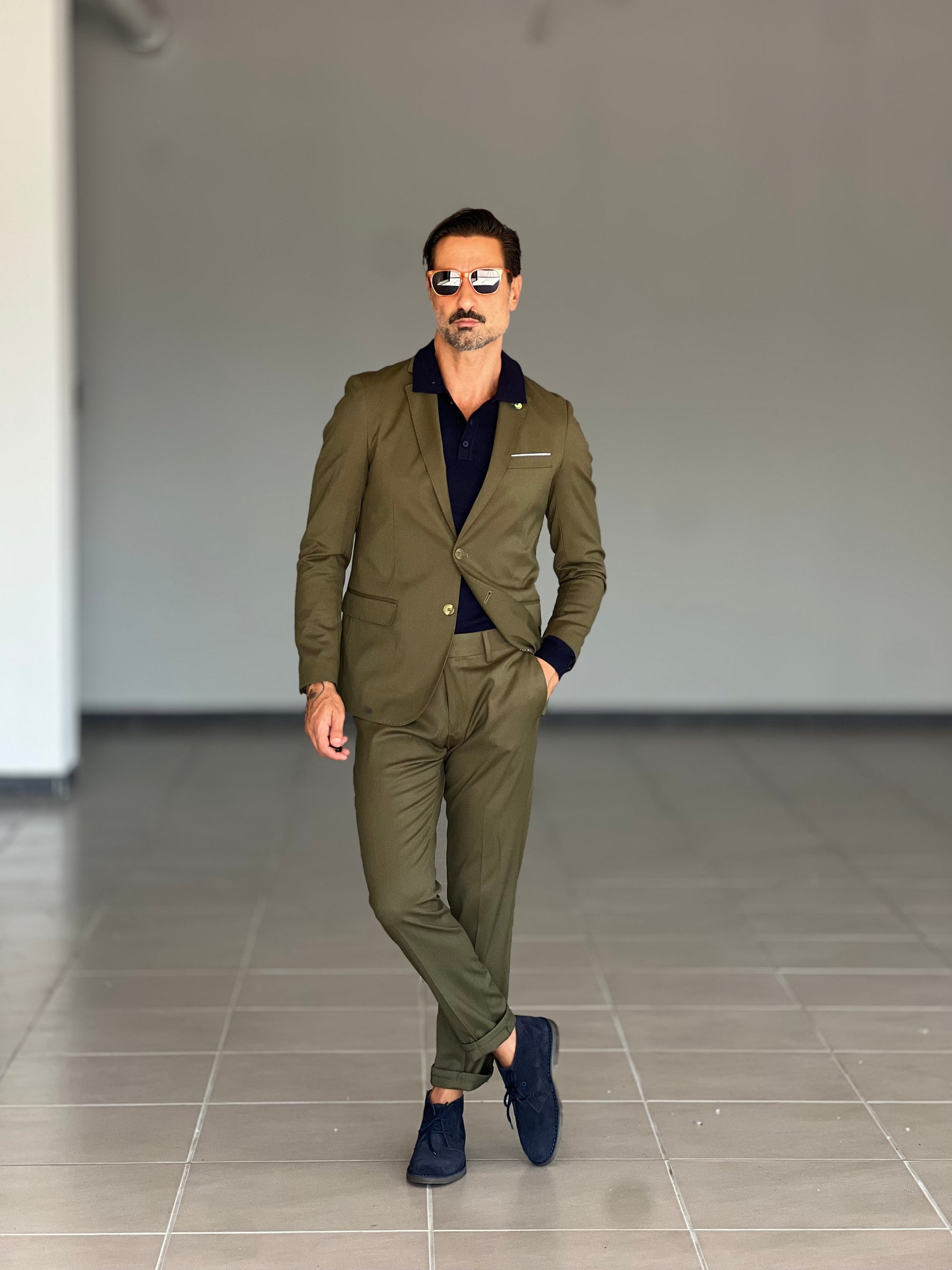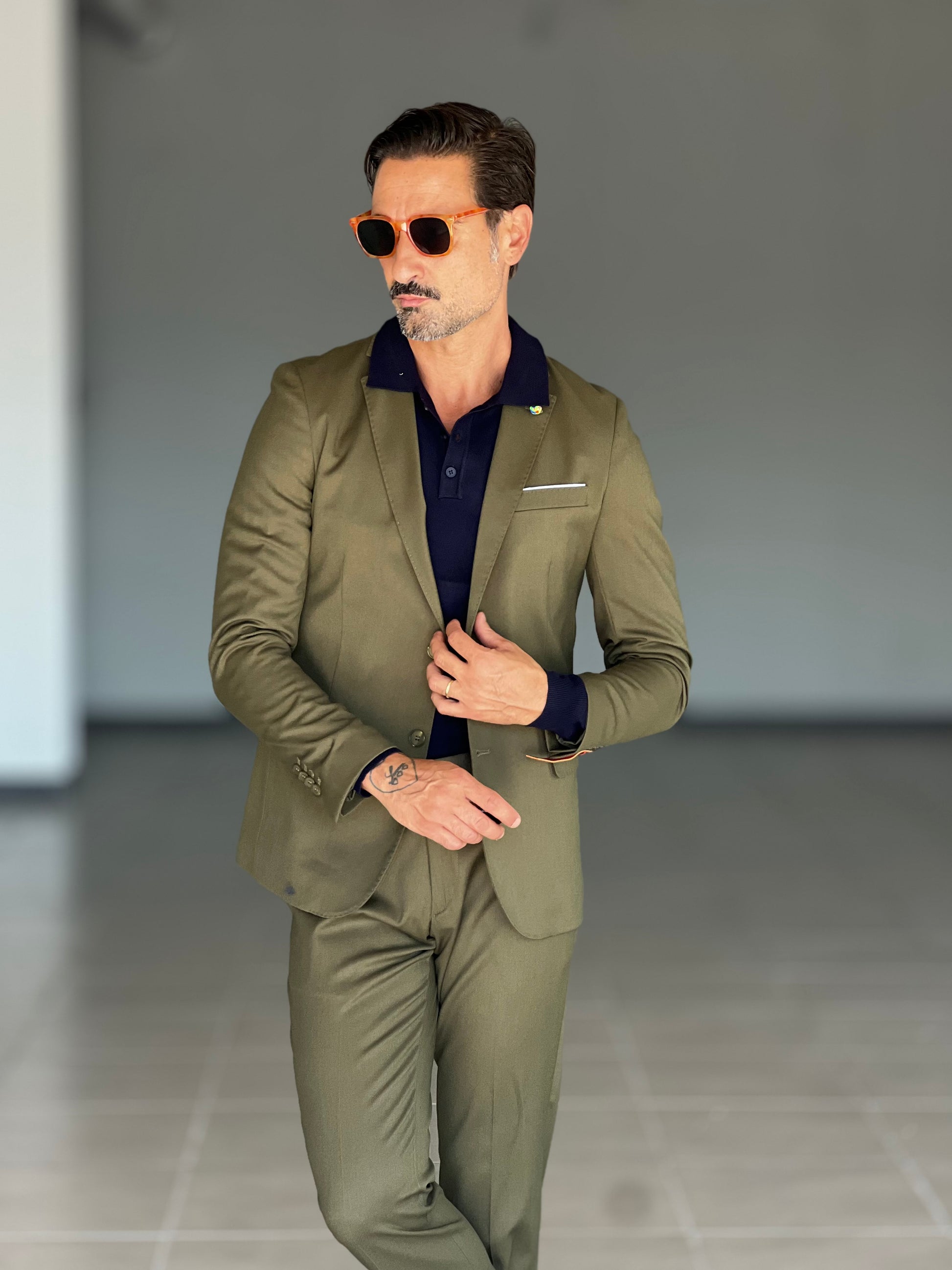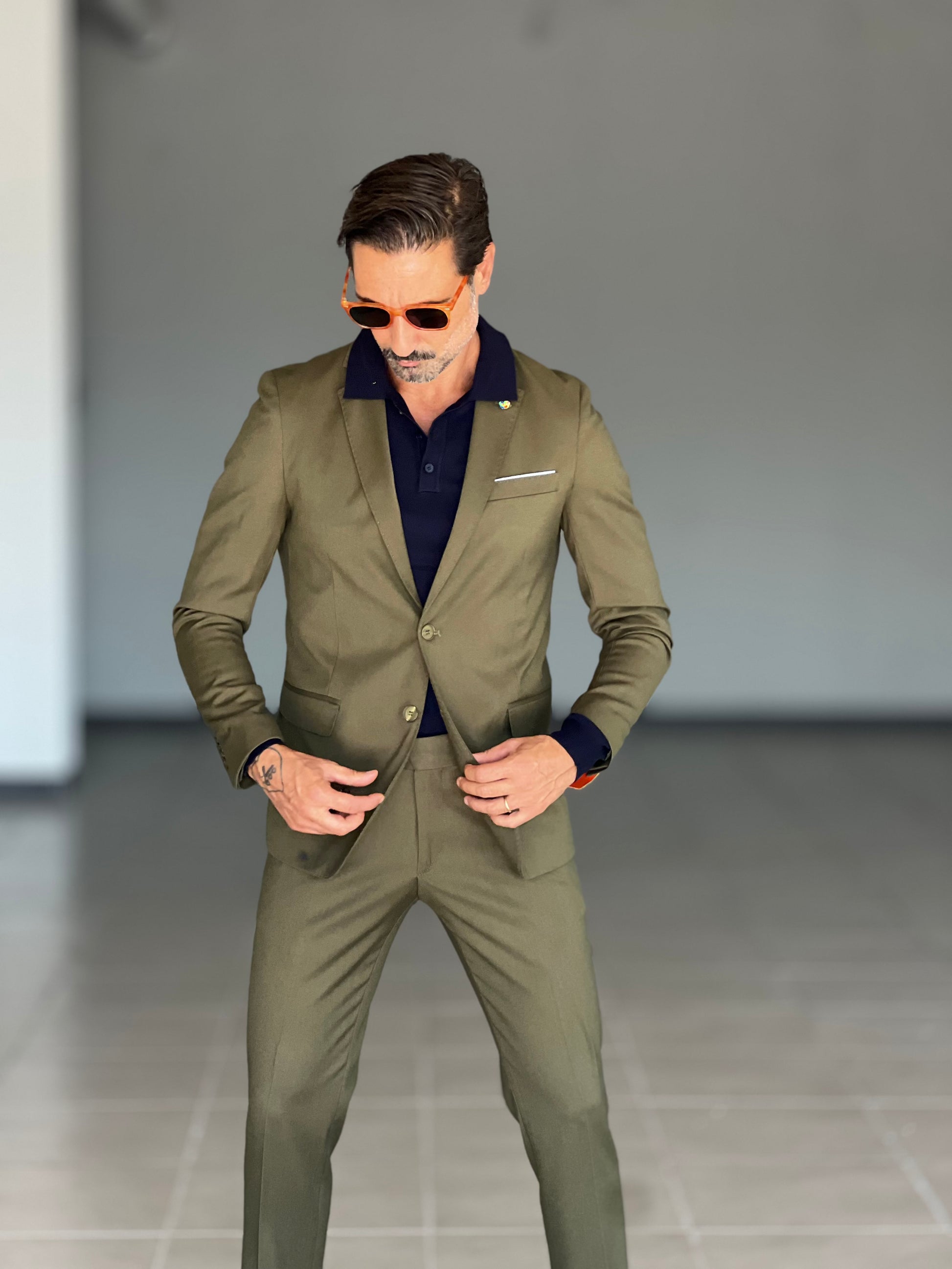 Questo abito monopetto verde oliva in viscosa offre un raffinato mix di comfort e stile. Il tessuto leggero garantisce traspirabilità, rendendolo ideale sia per contesti professionali che casual. Il taglio sartoriale esalta la silhouette, offrendo un look sofisticato che si adatta perfettamente sia al giorno che alla sera.