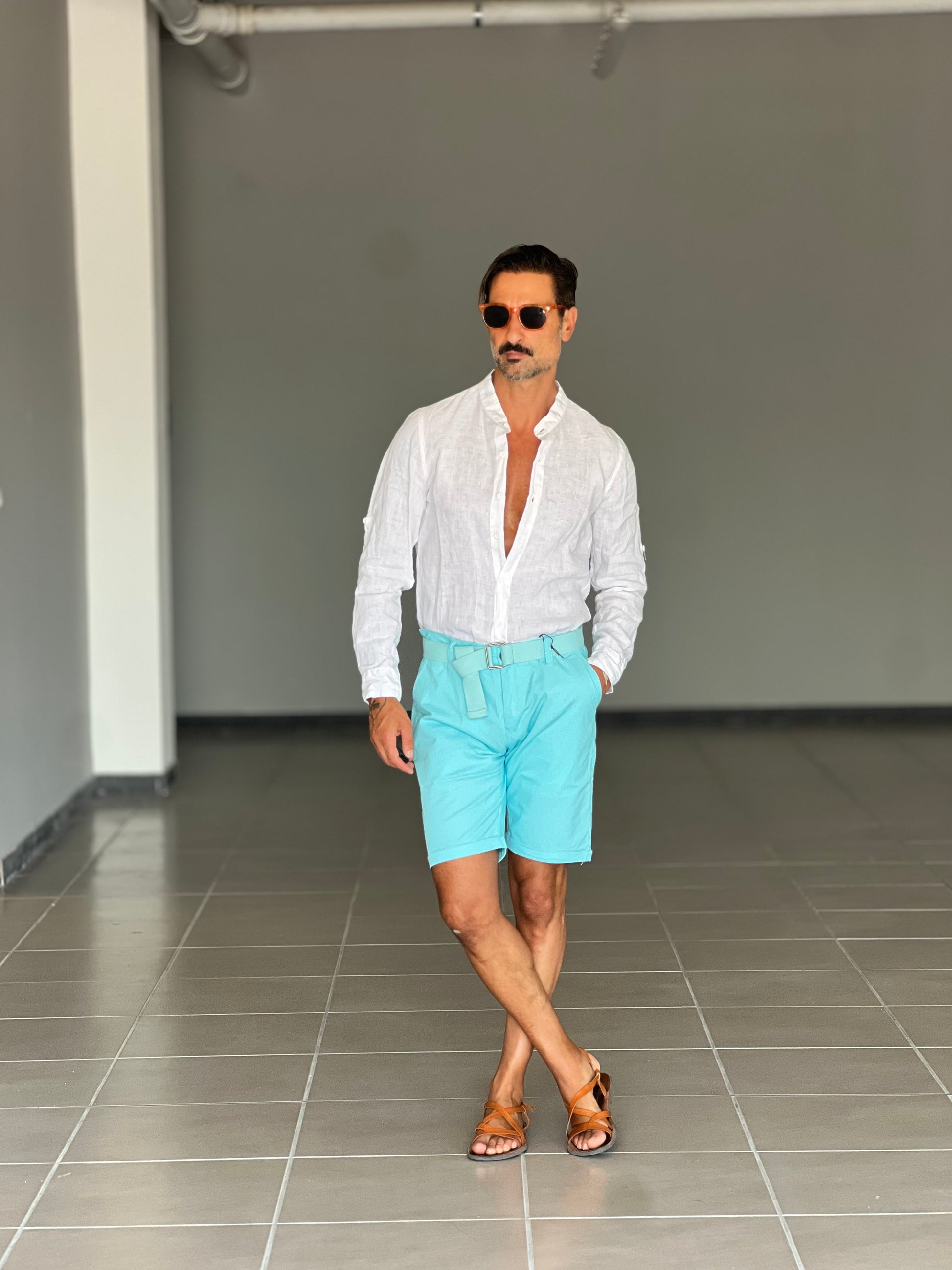 BERMUDA PANTALONE CELESTE MARE COTONE INSERTO CINTURA