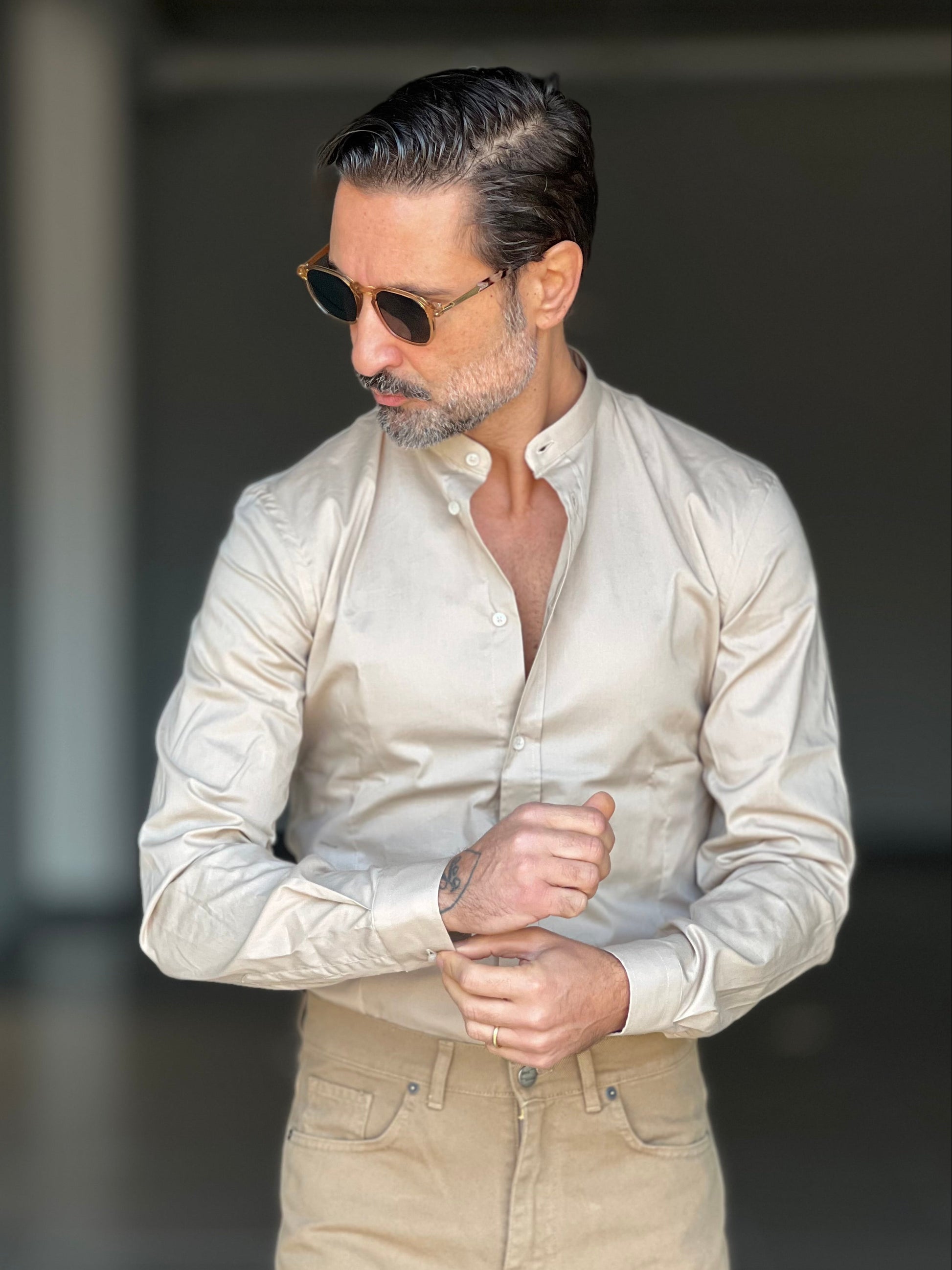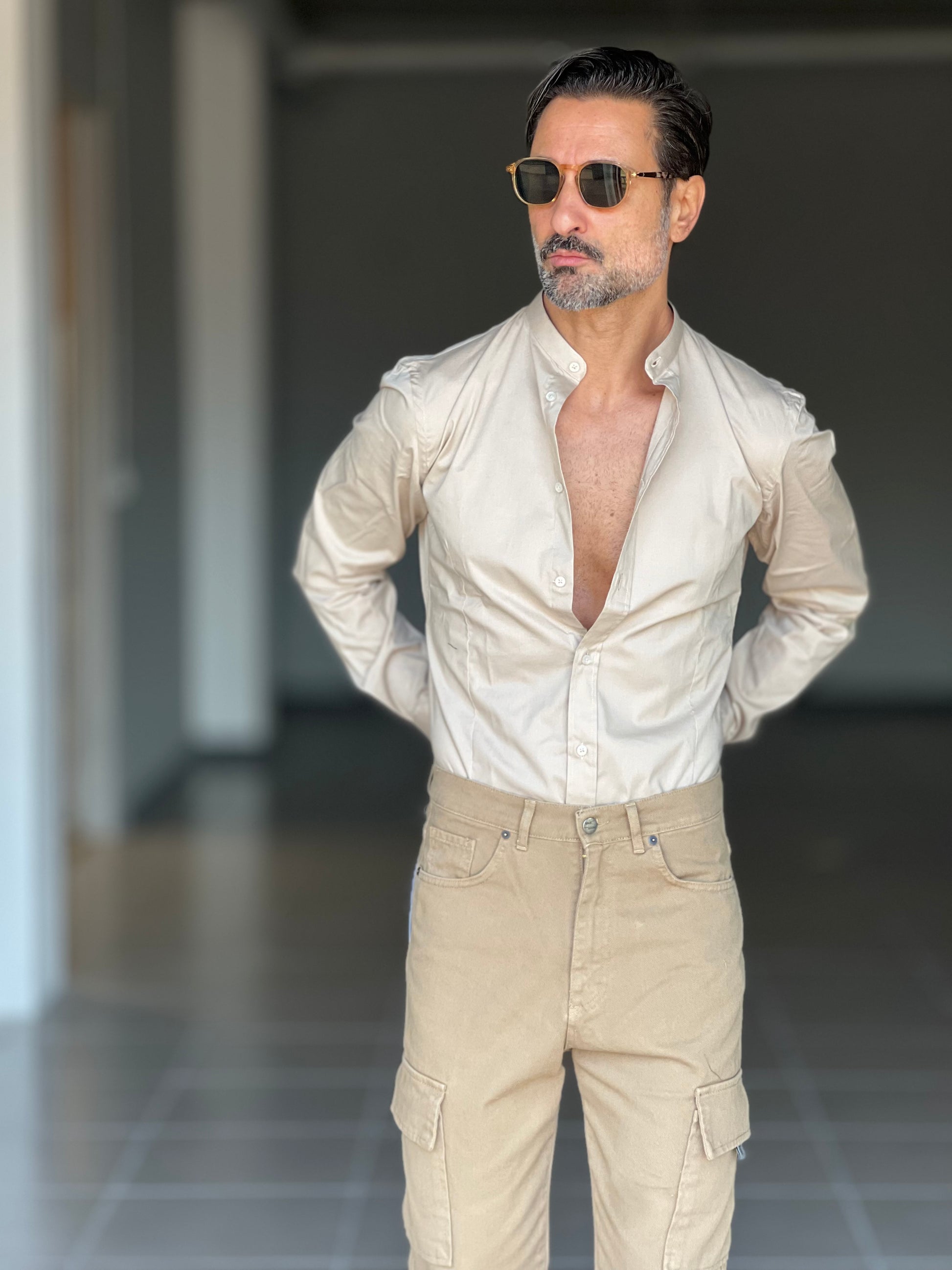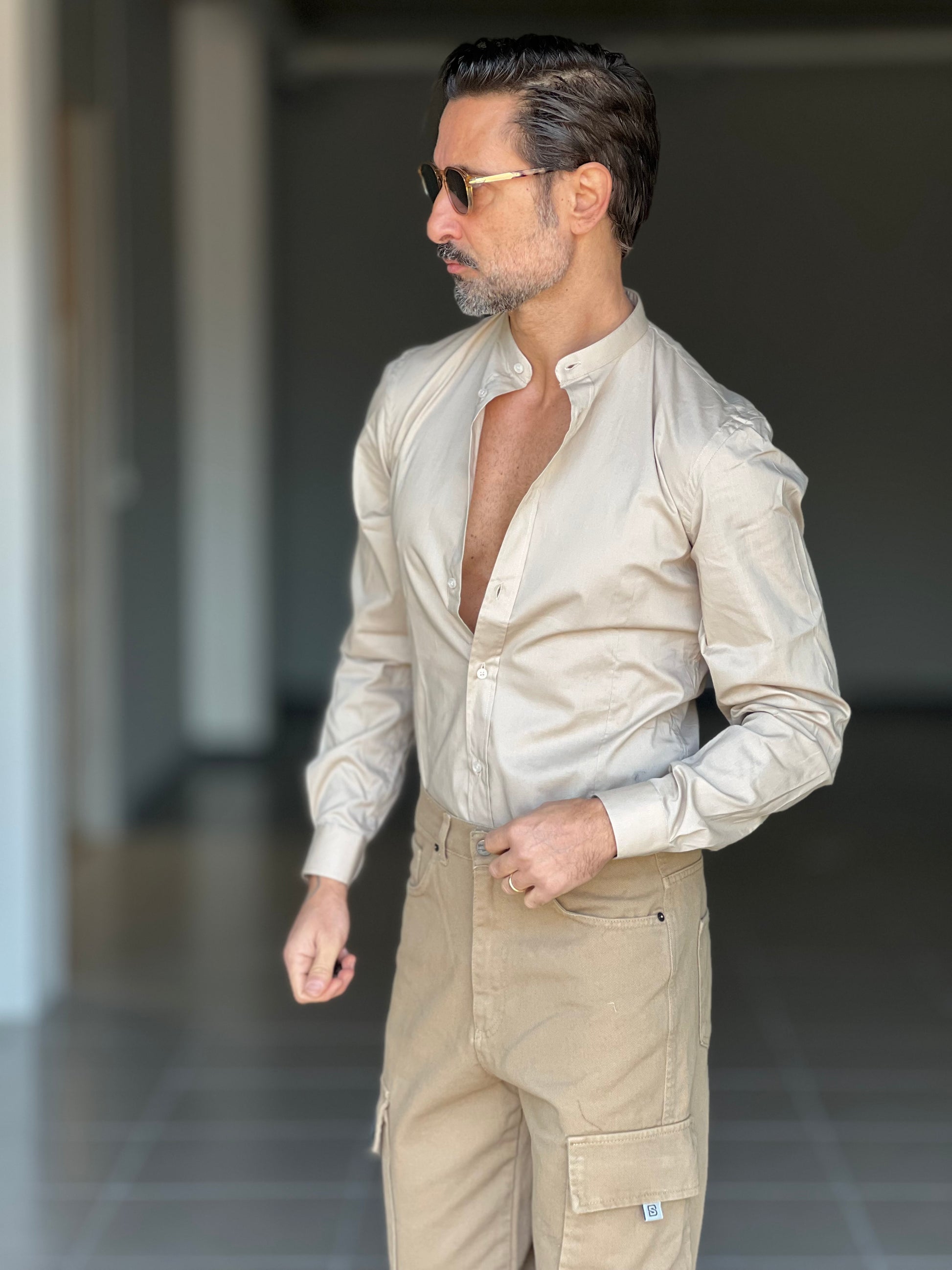 CAMICIA CAMMELLO COREANA POPELINE DI COTONE STRECH