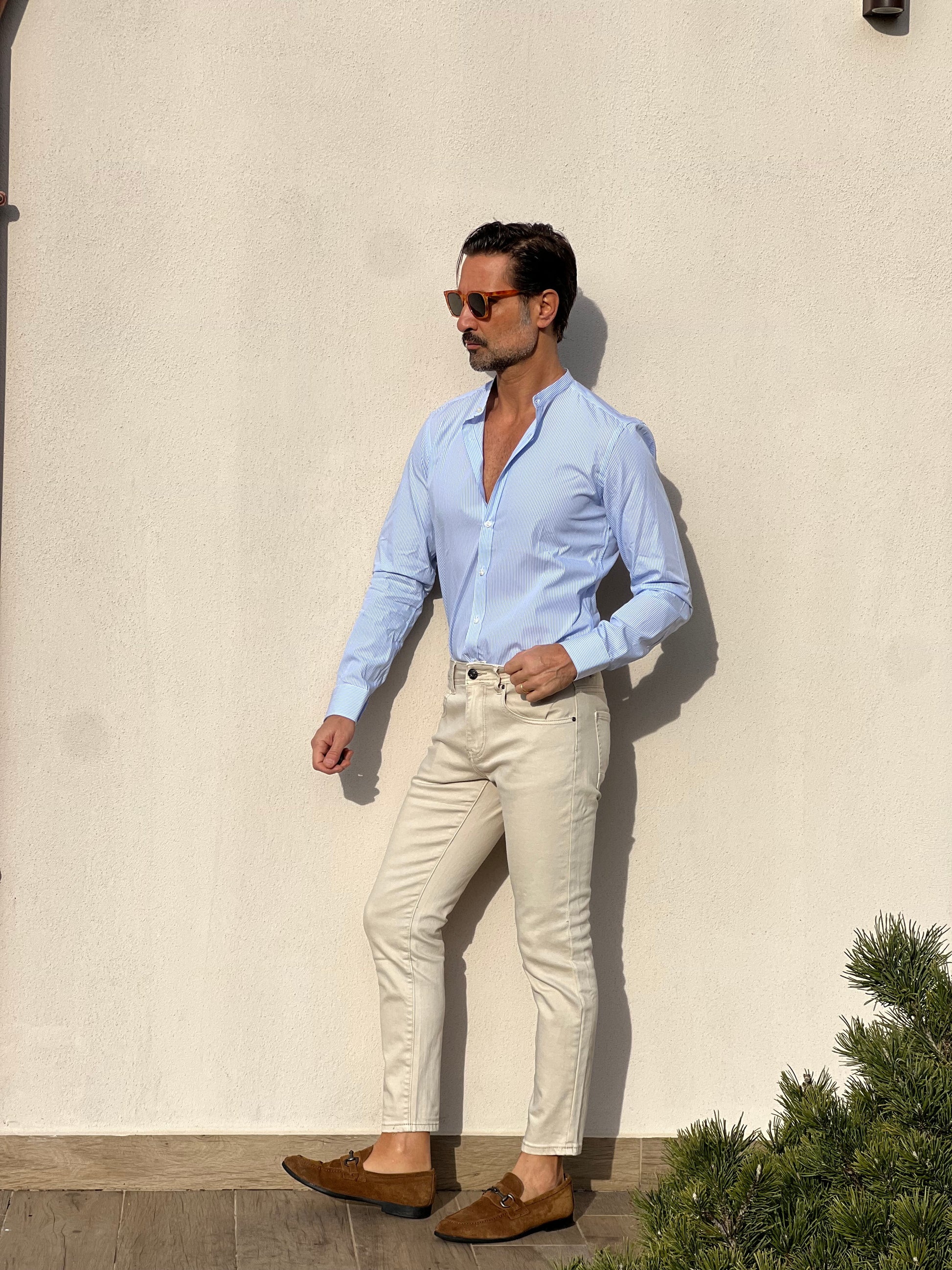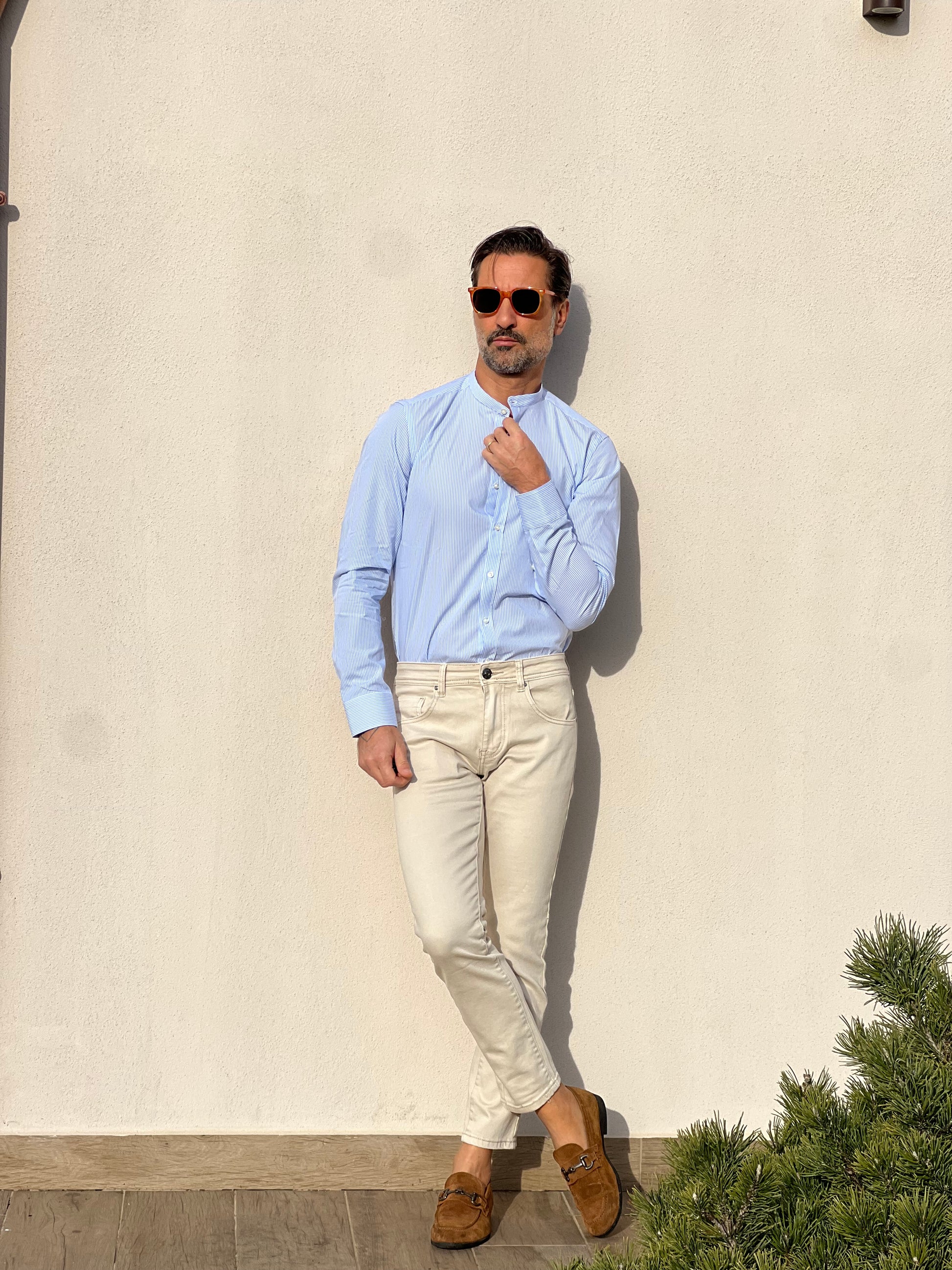 CAMICIA DEPOT BACCHETTA CELESTE E BIANCA COREANA