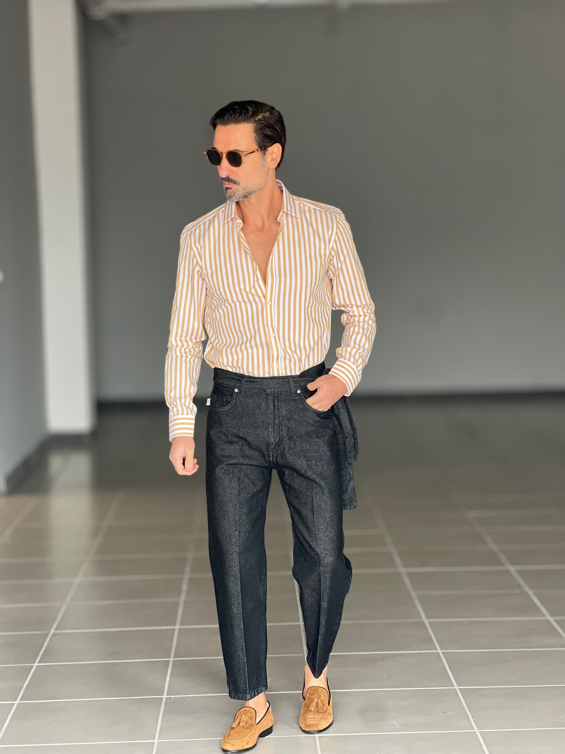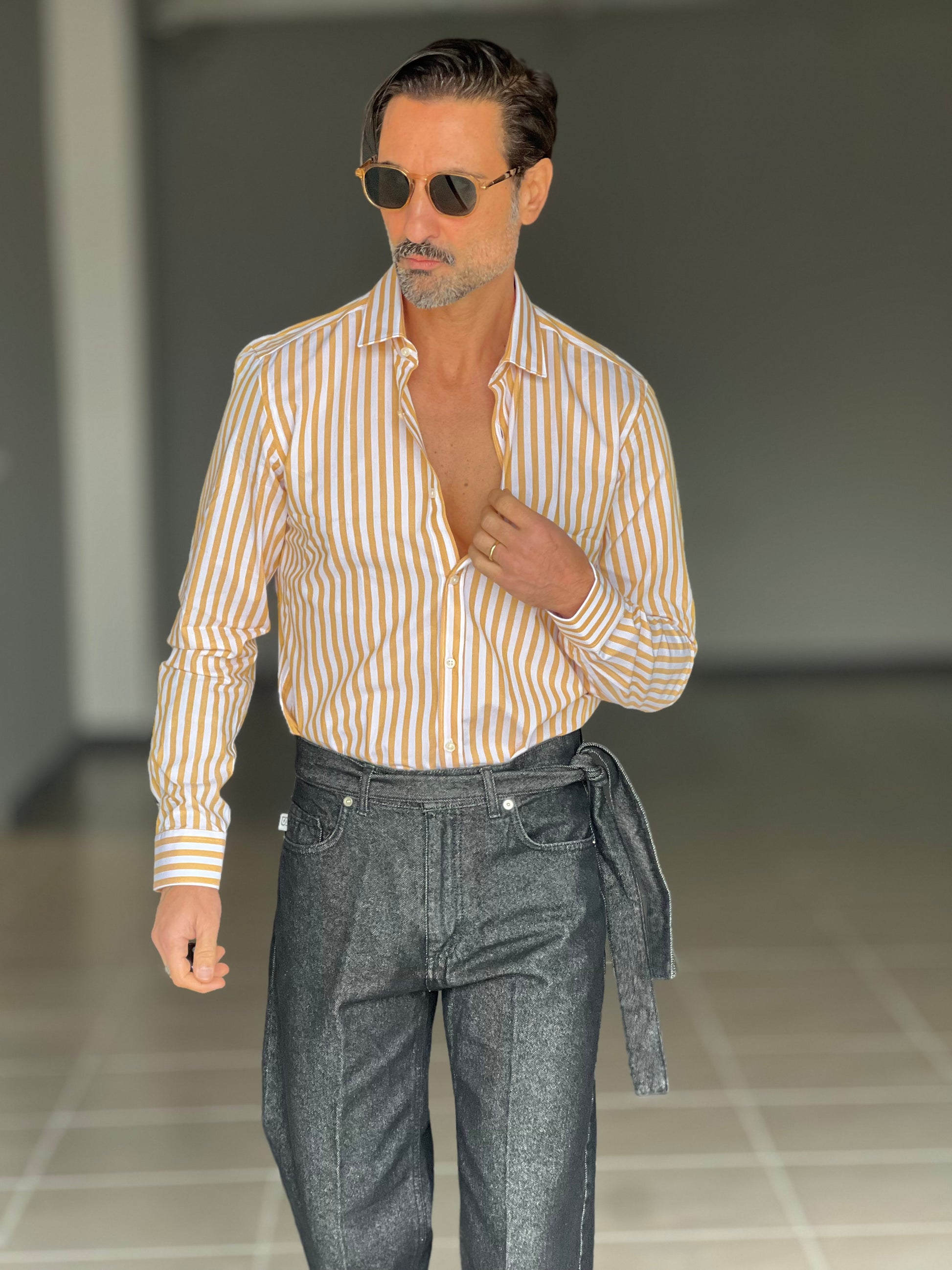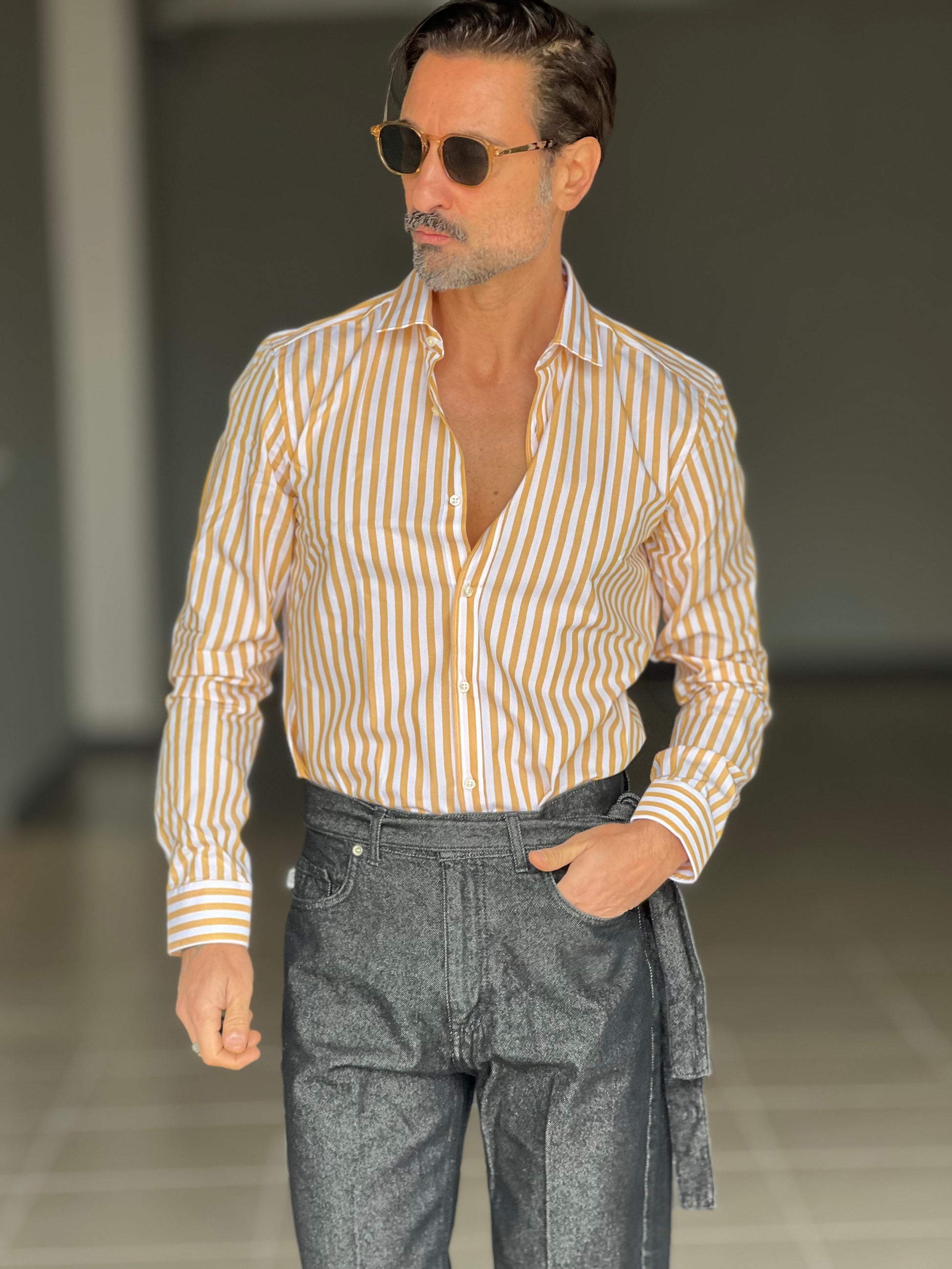CAMICIA DEPOT BACCHETTA GRANDE OCRA COLLO PICCOLO POPELINE DI COTONE DOPPIORITORTO