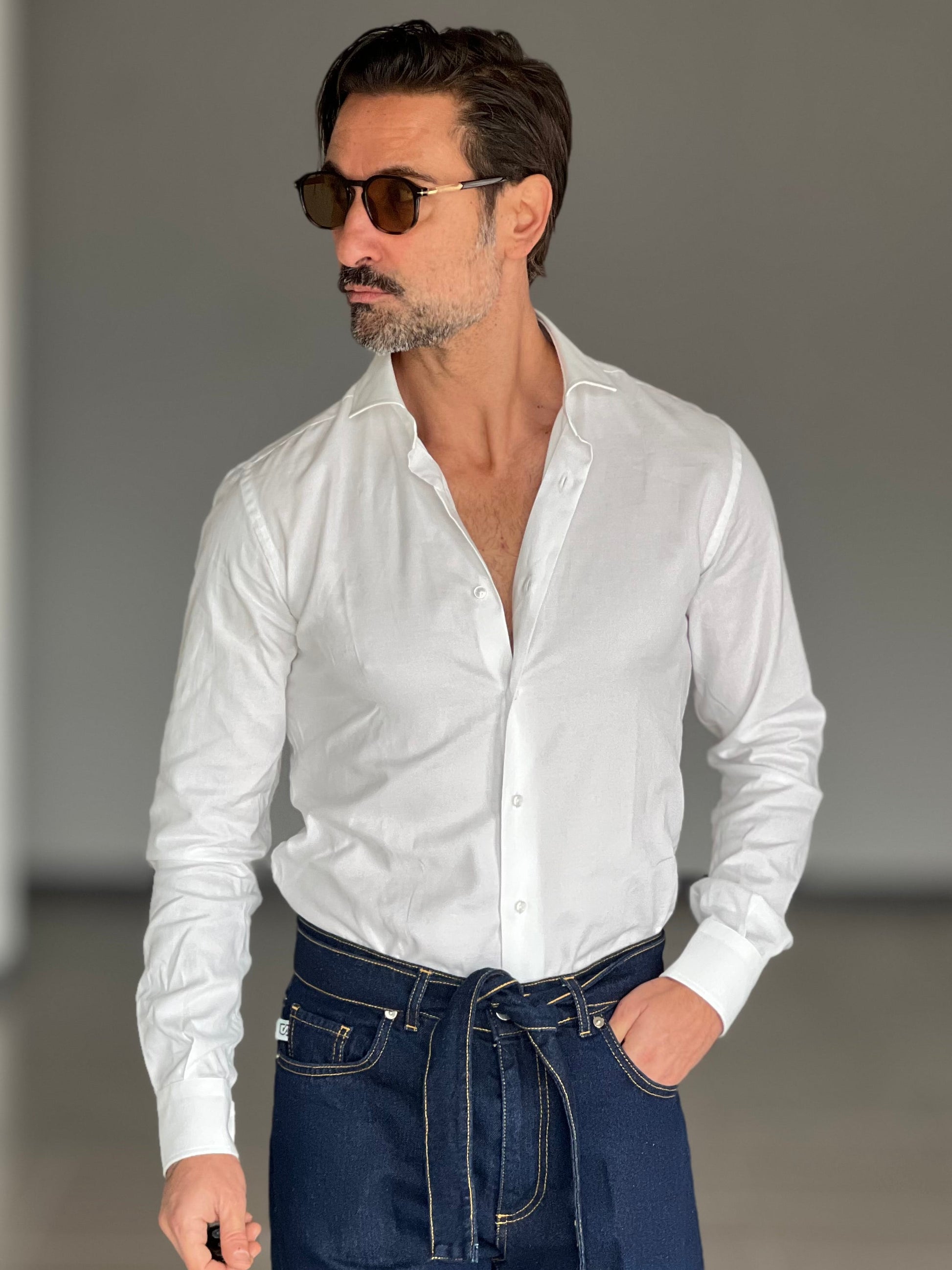 CAMICIA DEPOT BIANCA TWILL DI COTONE DOPPIO RITORTO