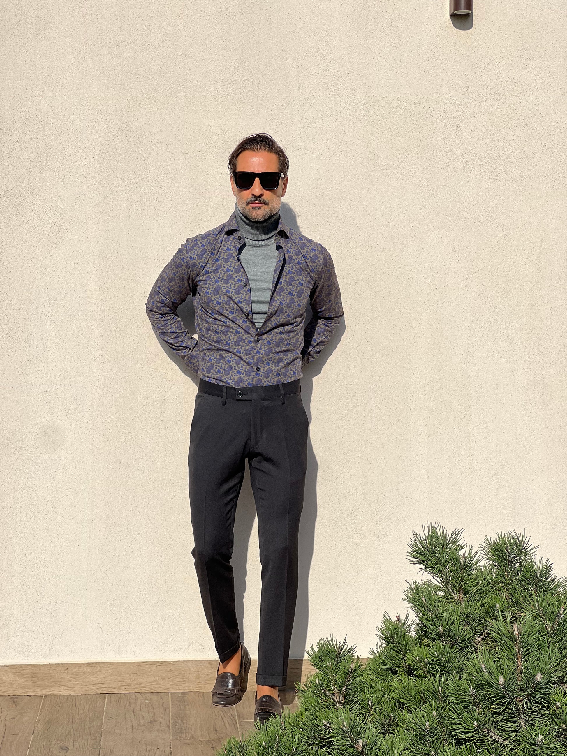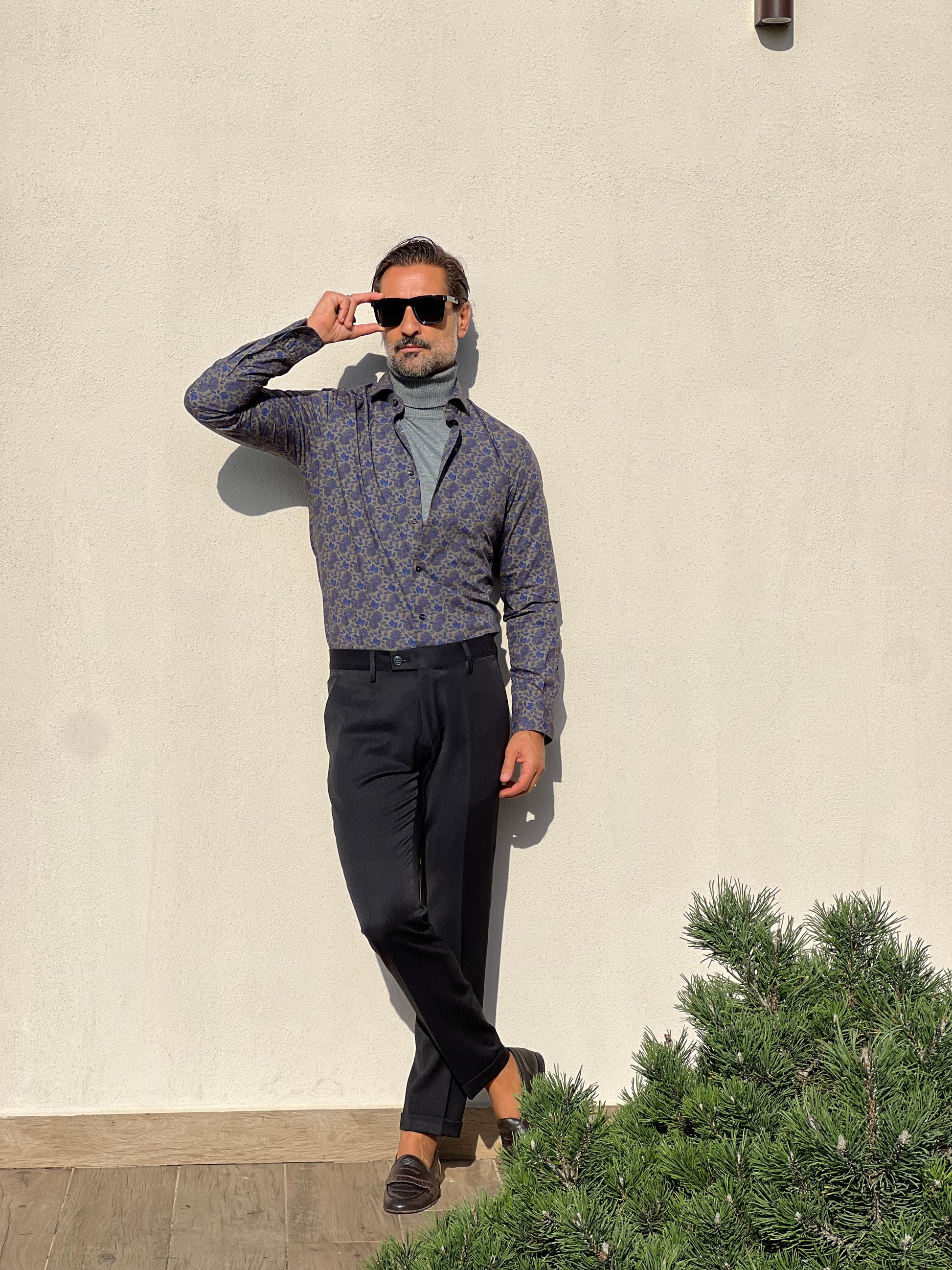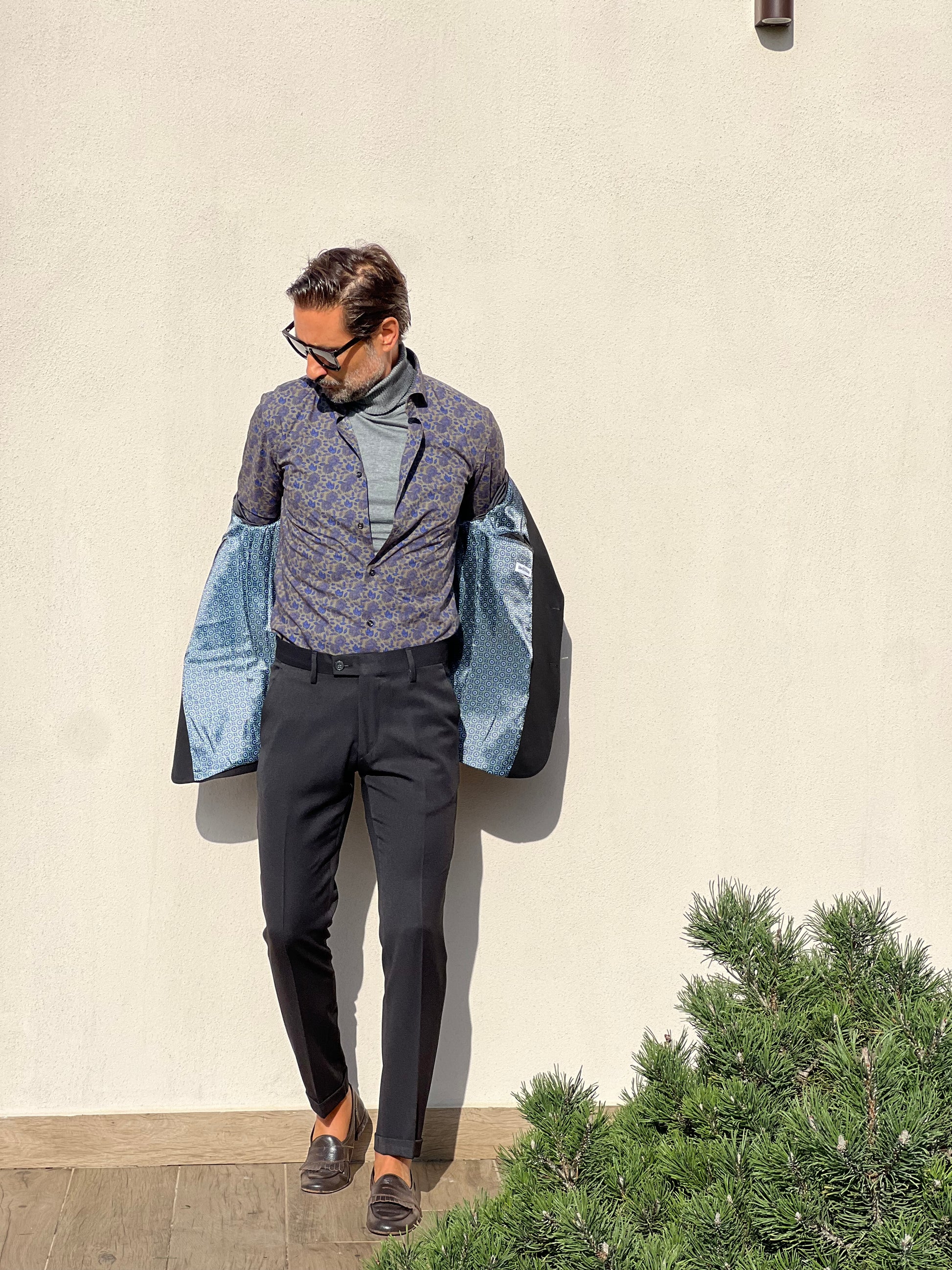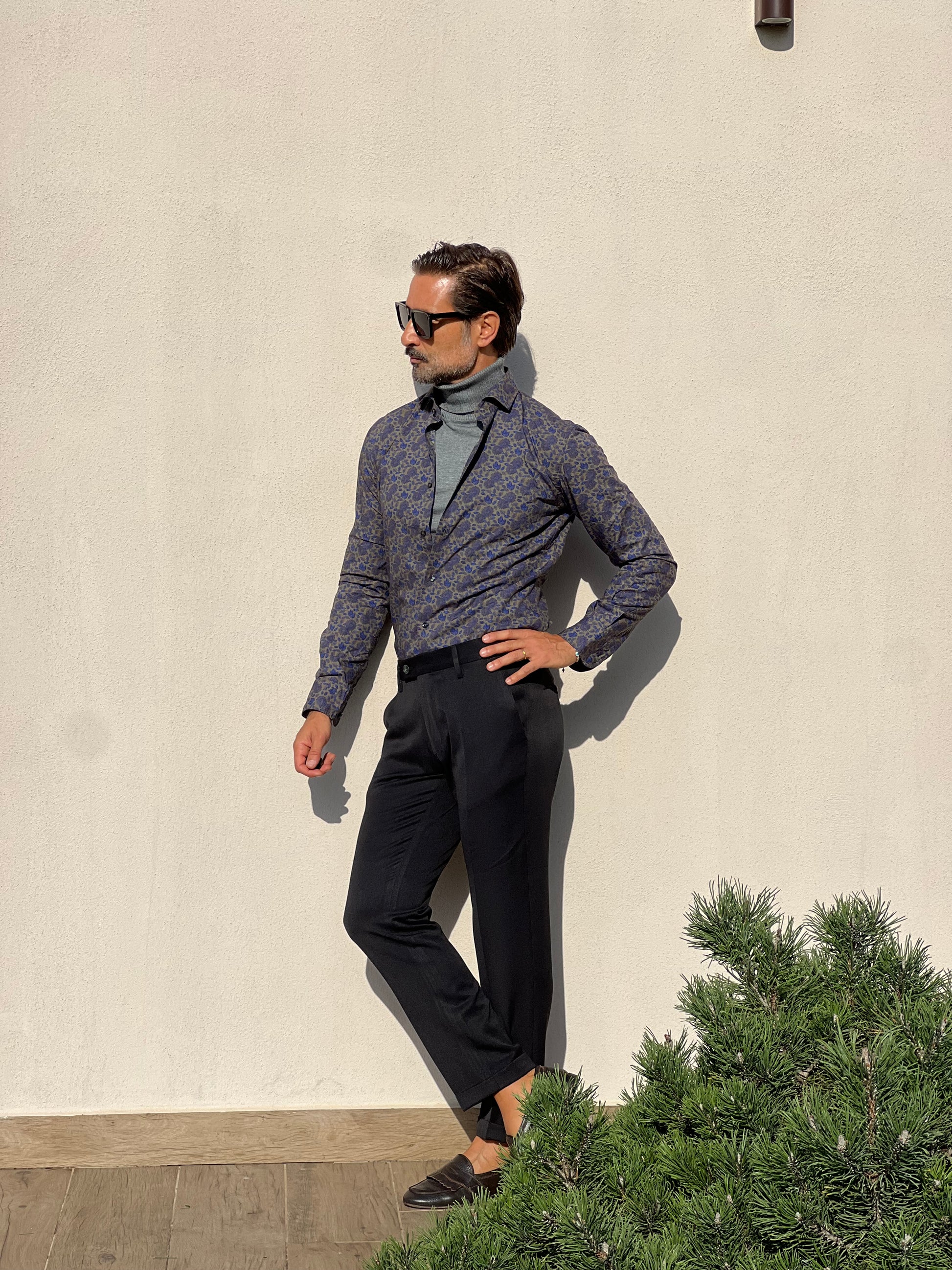 CAMICIA DEPOT DOPPIORITORTO FIORE VERDE E BLU