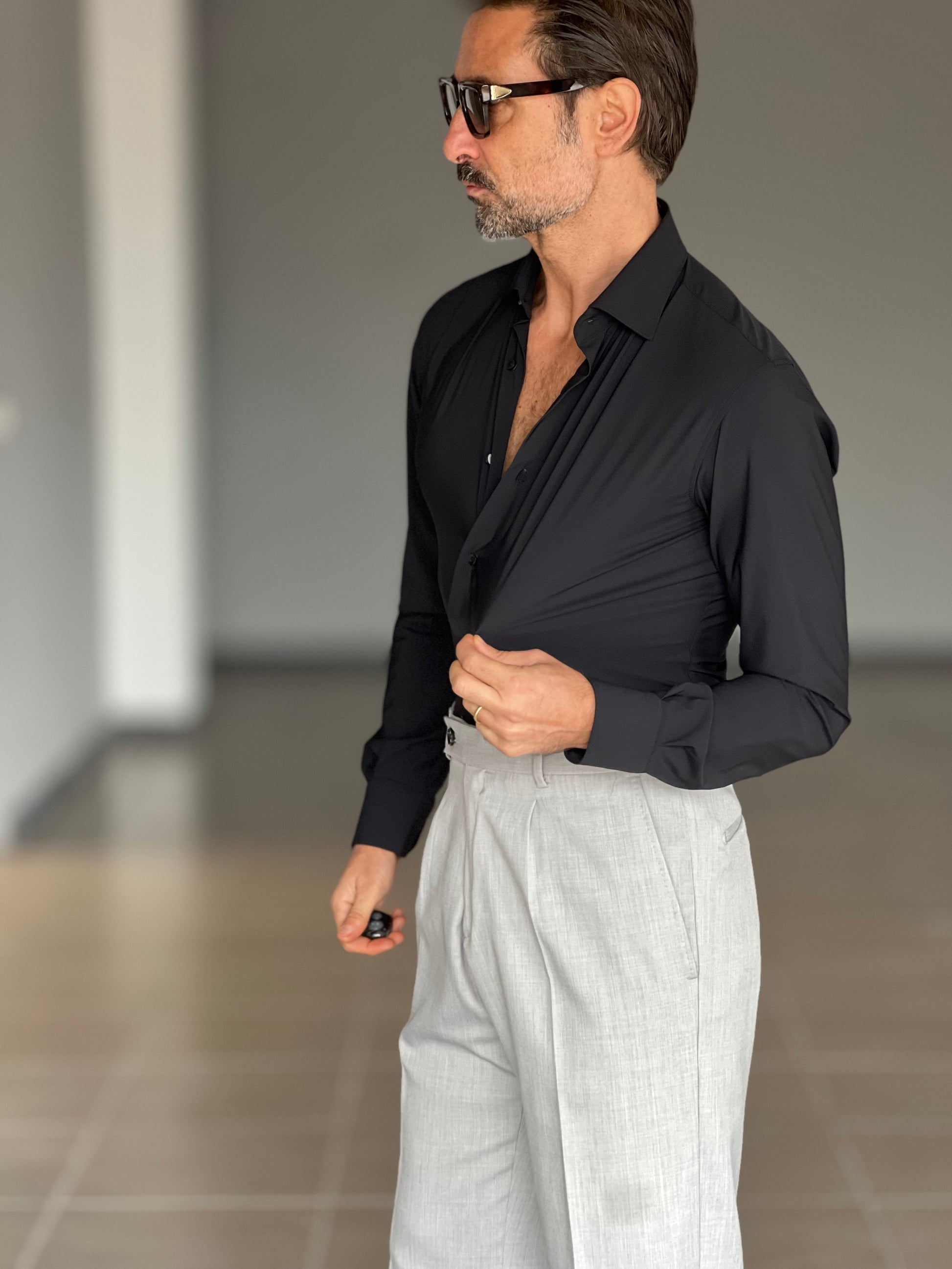 CAMICIA DEPOT NERA EFFETTO MAGLINA COTONE DOPPIO RITORTO 006