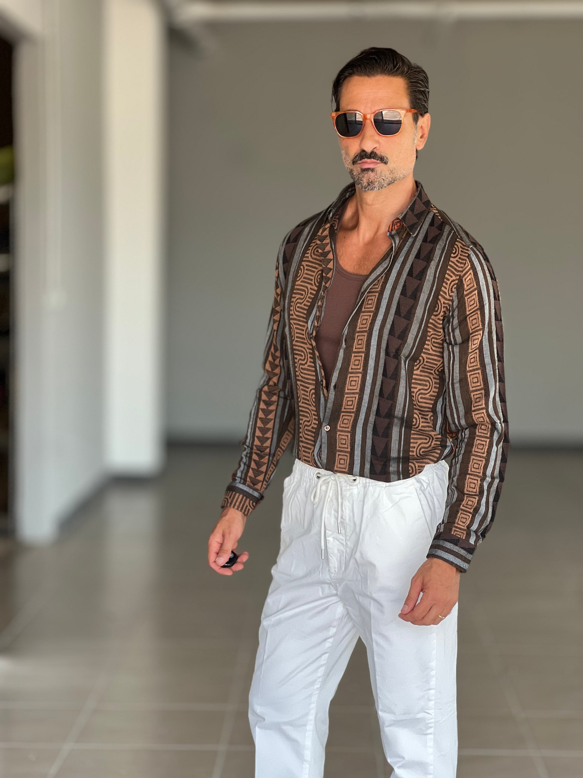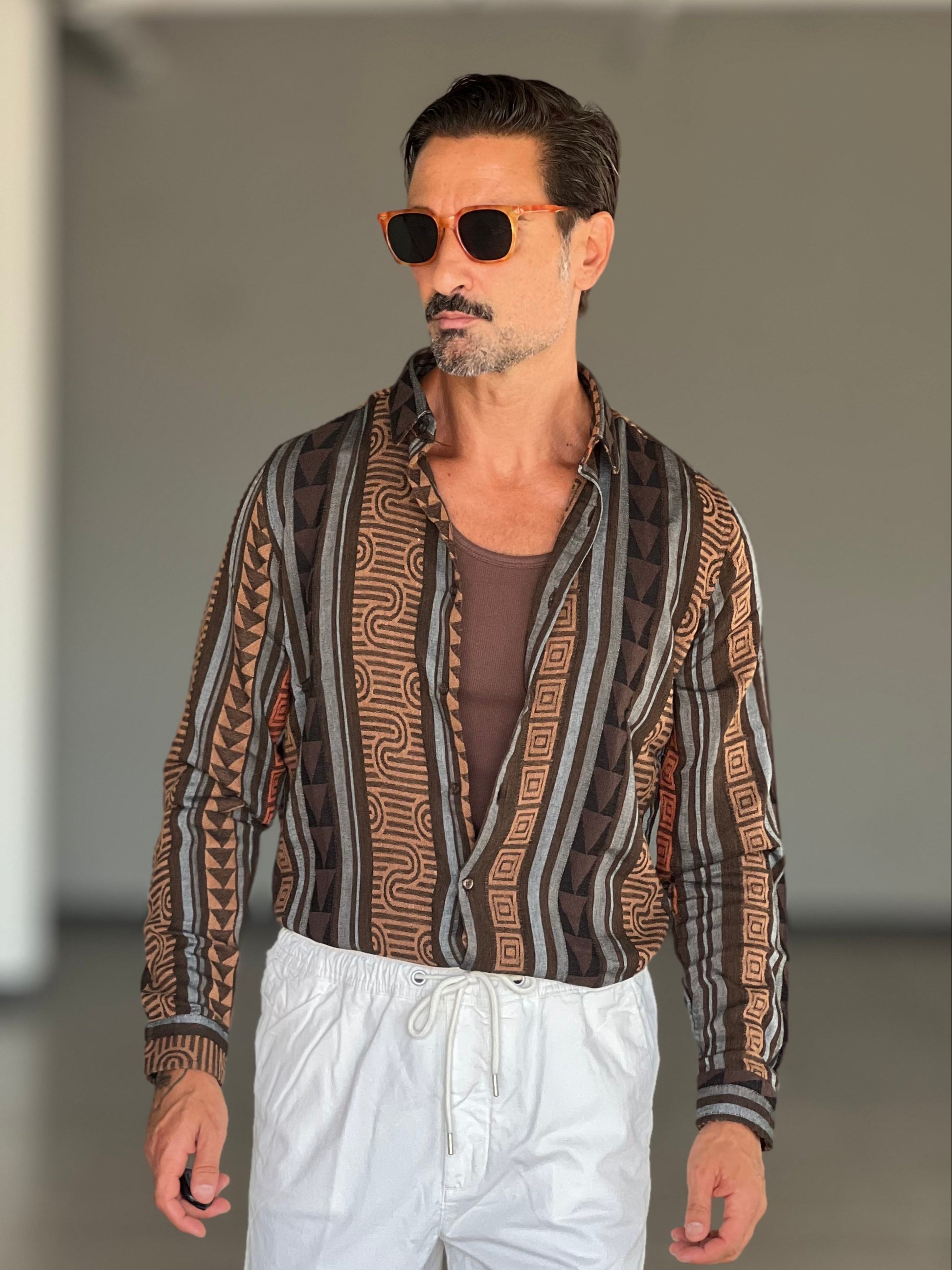 Questa CAMICIA presenta una raffinata con una stampa intricata, che unisce eleganza e un discreto impatto visivo. Creata per un look sofisticato, il suo design valorizza qualsiasi outfit con un tocco moderno ma senza tempo. Ideale per chi cerca un look raffinato, questa camicia coniuga stile e versatilità senza sforzo.