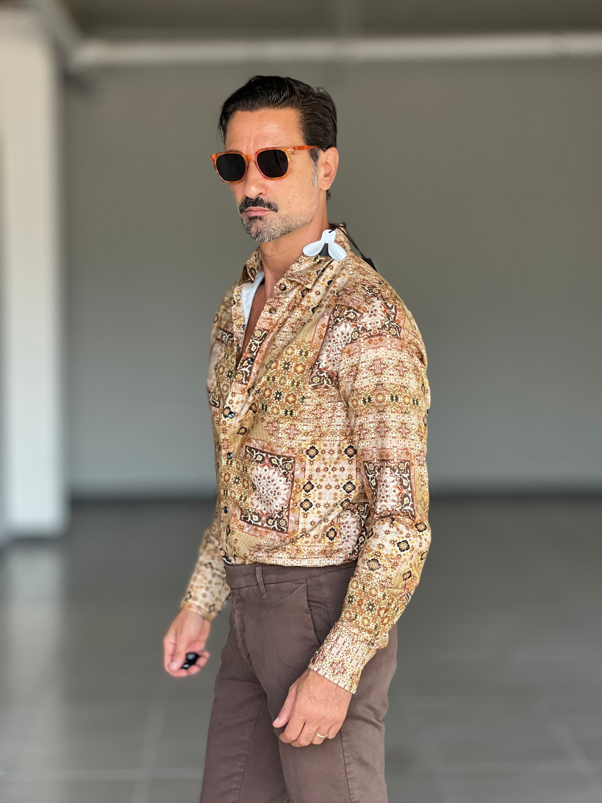 CAMICIA KOON STAMPA FONDO CAMMELLO