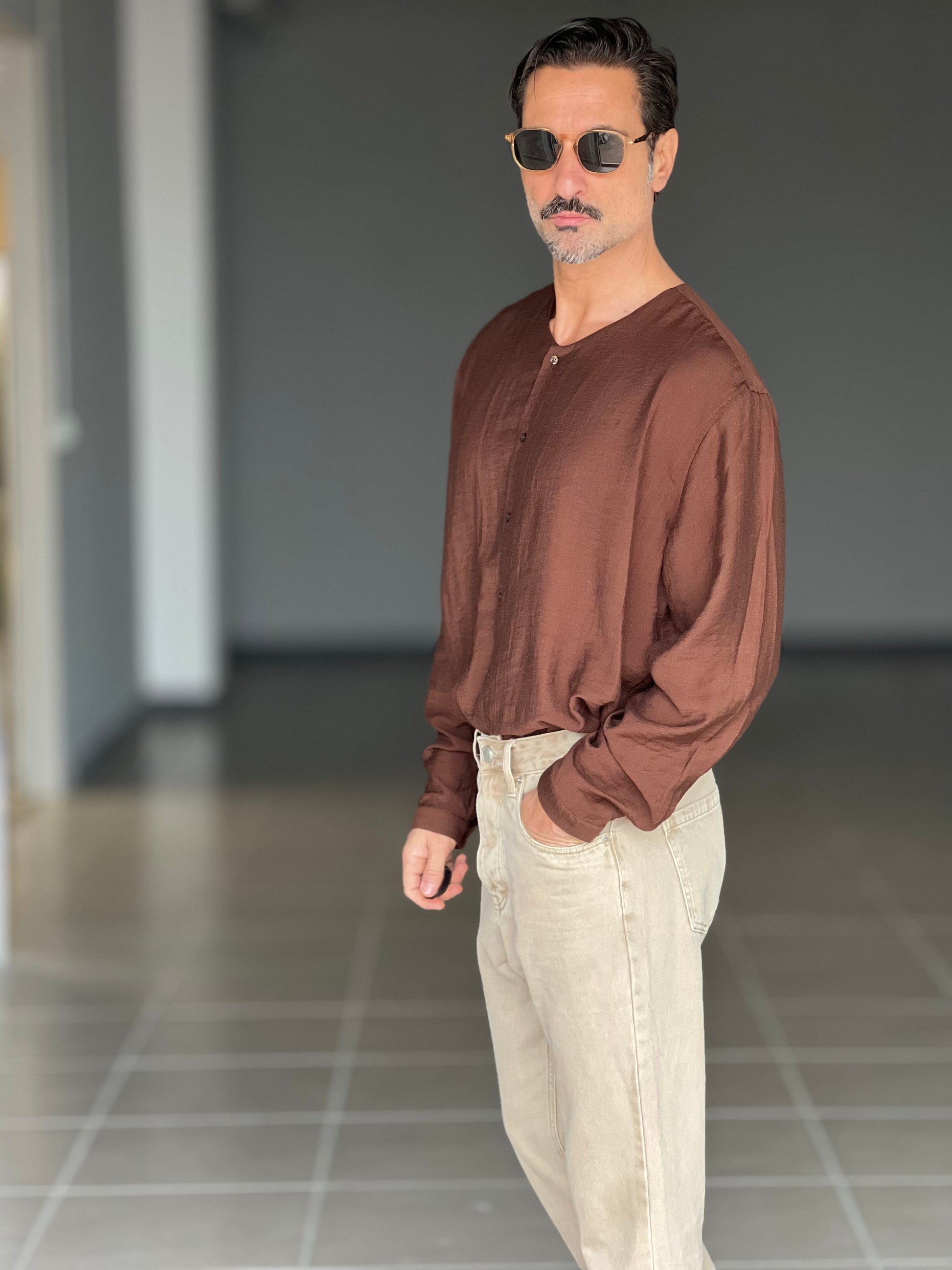 CAMICIA MORO COREANA GIROCOLLO COTENE VISCOSA