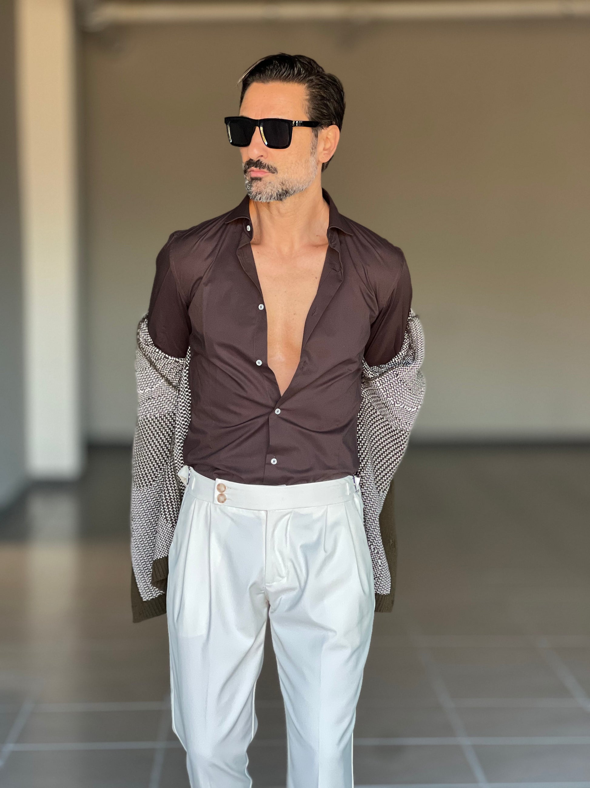 CAMICIA MORO POPELINE DI COTONE STRECH