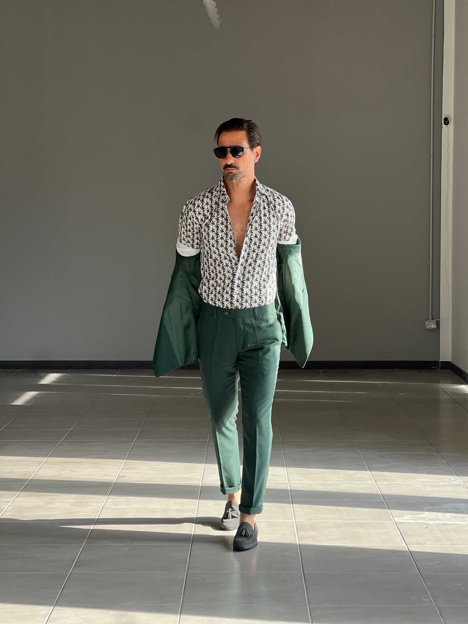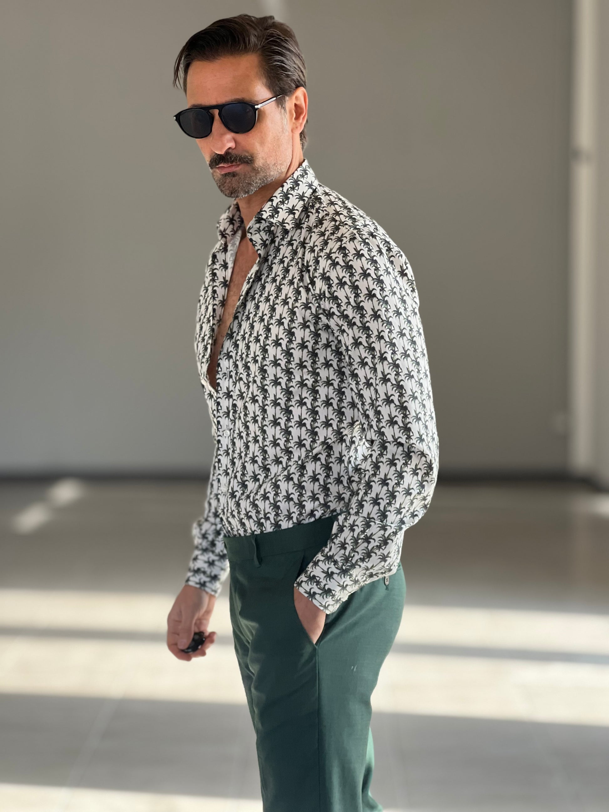 CAMICIA PALME VERDI COTONE DOPPIO RITORTO