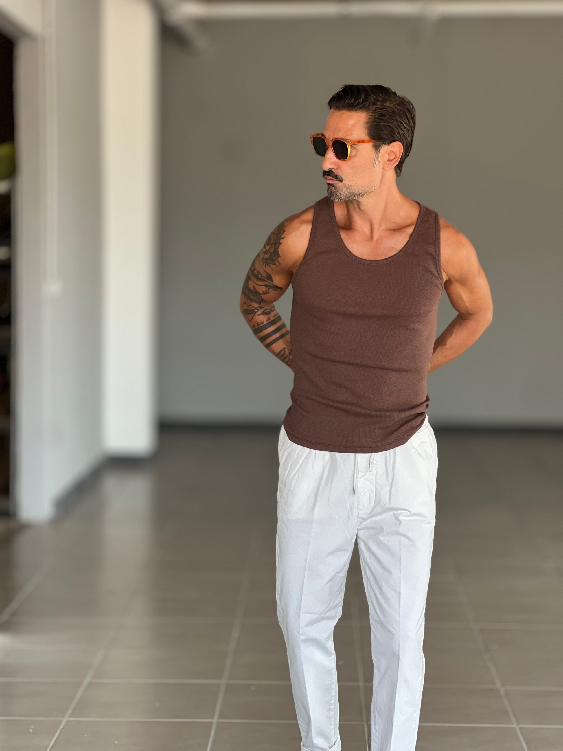 Questa canotta DERBY in cotone è il perfetto mix di stile e comfort. Realizzata in morbido cotone, offre una vestibilità perfetta e una sensazione piacevole sulla pelle. Ideale per ogni occasione, dal lavoro agli svago, è un must-have nel tuo guardaroba. Non rinunciare alla qualità e al design elegante di questa canotta.