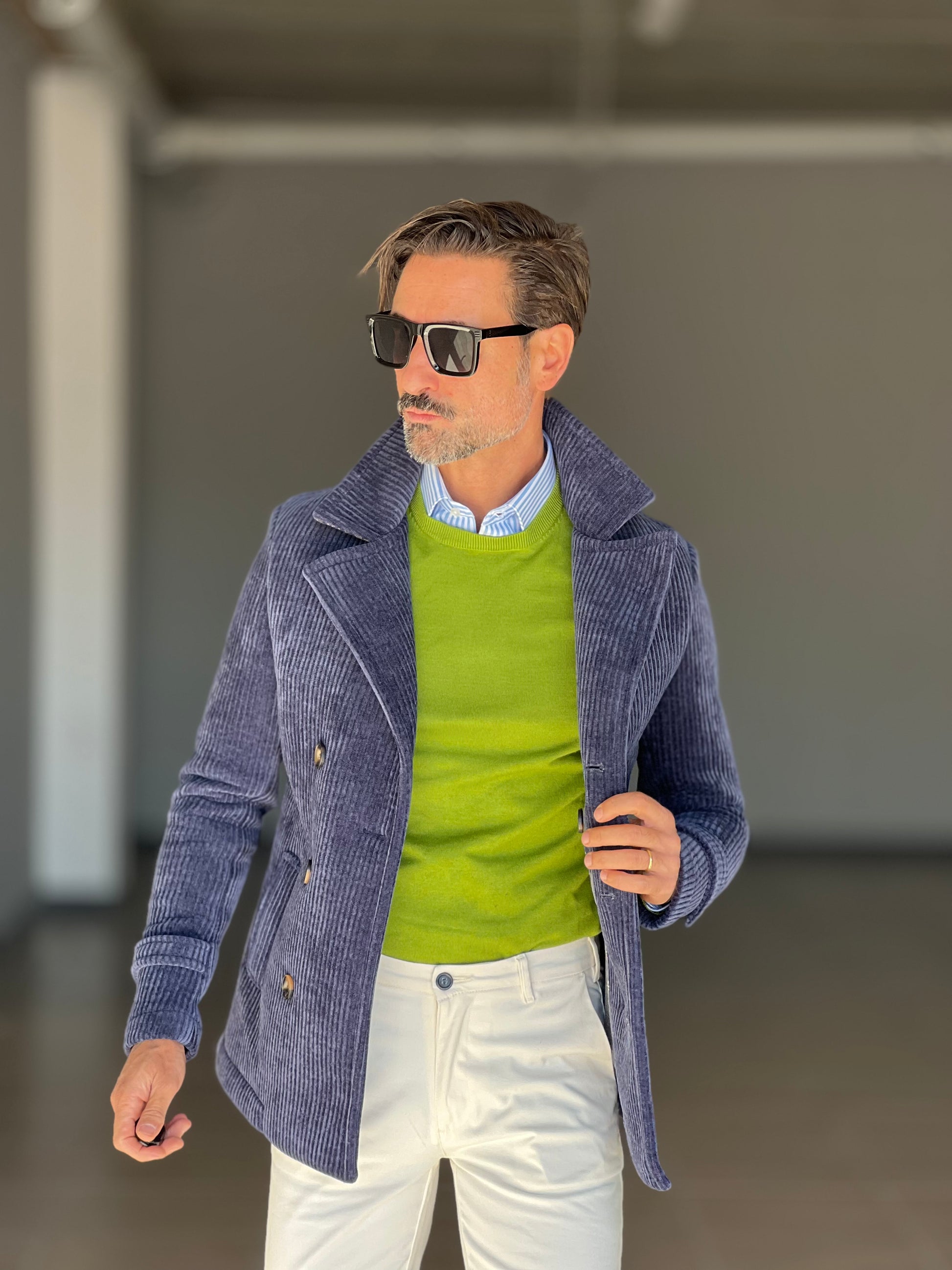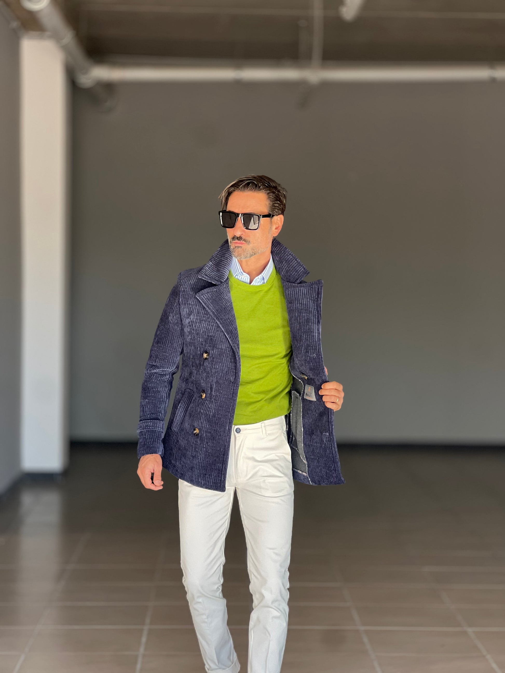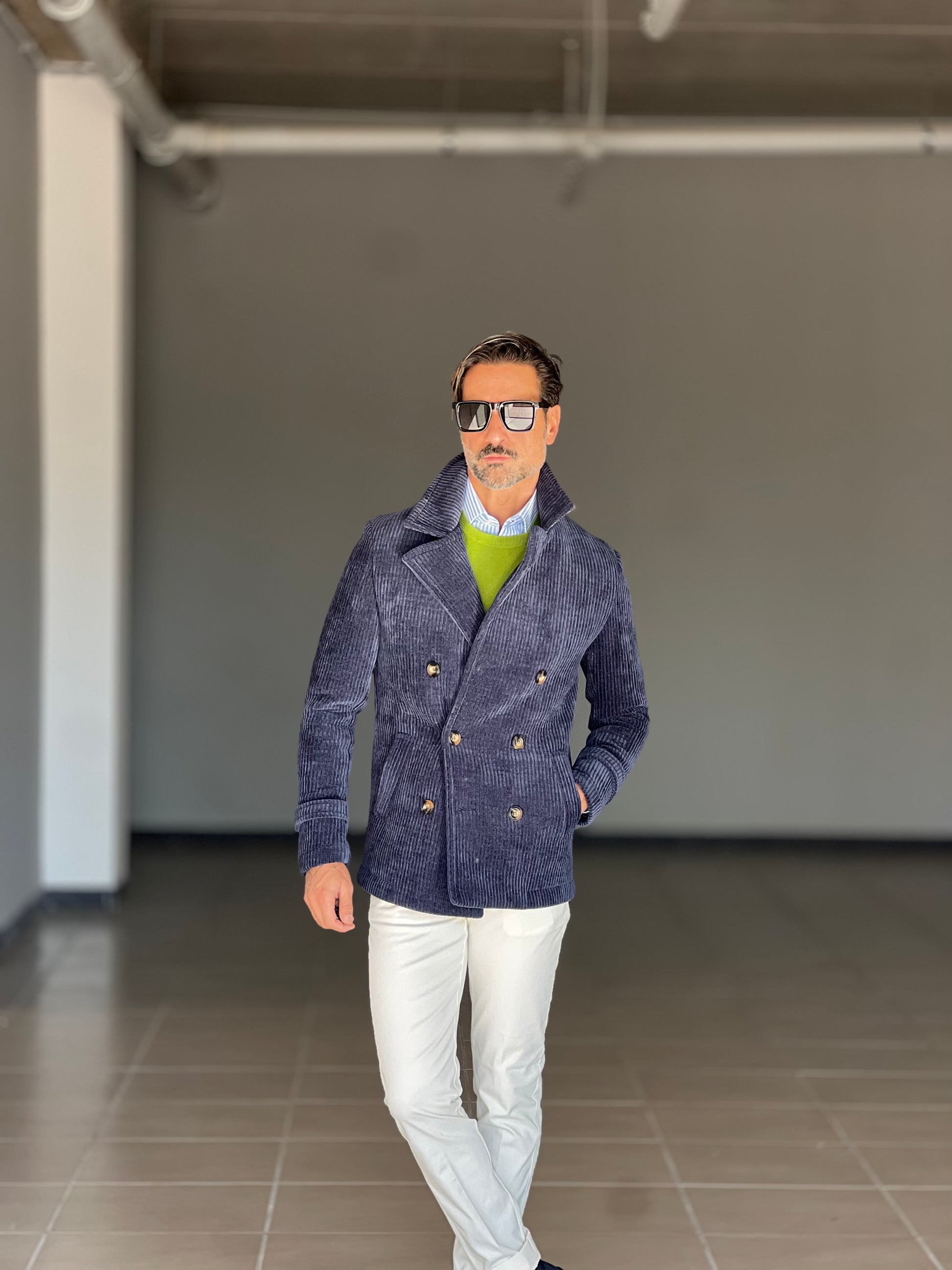 Questo cappottino blu in velluto millerighe unisce eleganza e comfort grazie alla sua texture raffinata e al taglio sartoriale. Perfetto per chi cerca un capo versatile da indossare nelle occasioni formali o nel quotidiano, offre calore e una vestibilità impeccabile, valorizzando ogni outfit con un tocco di classe senza tempo.