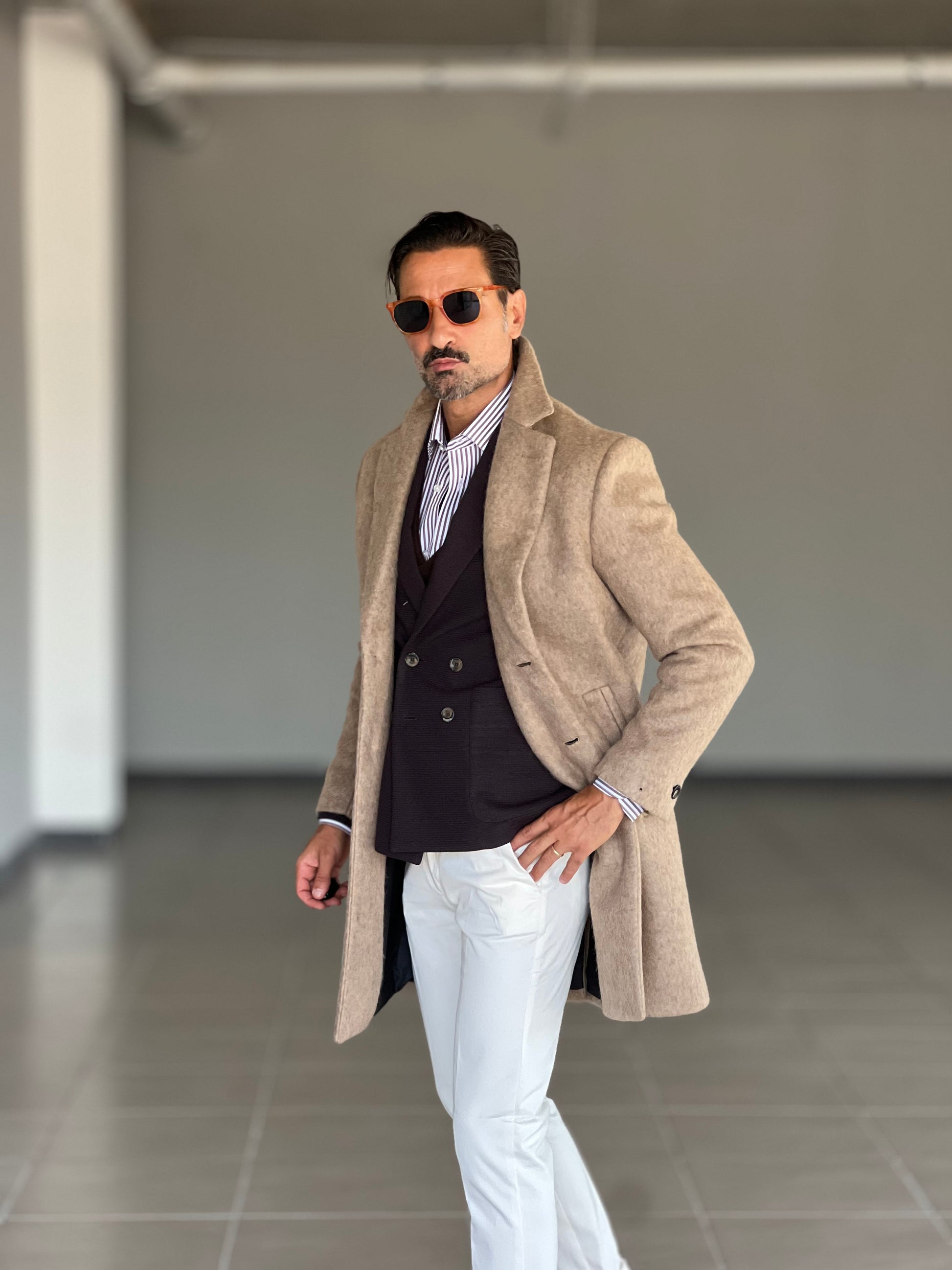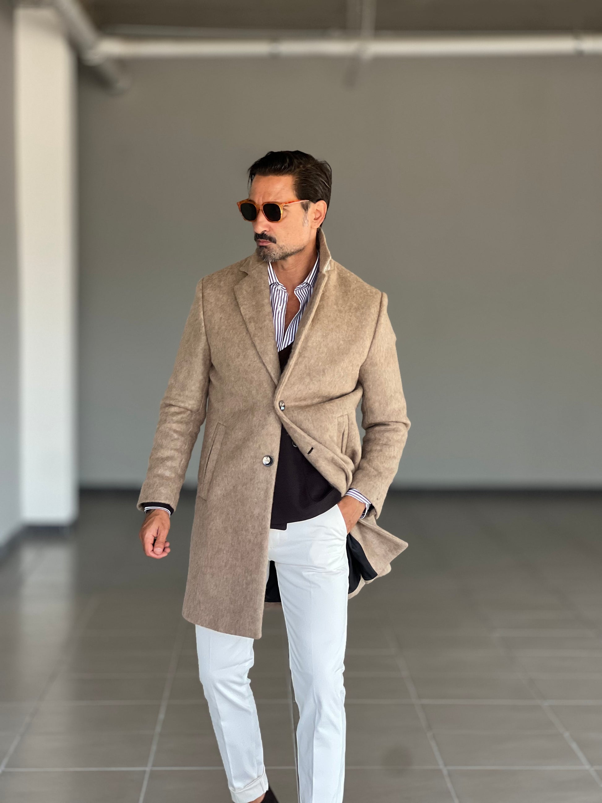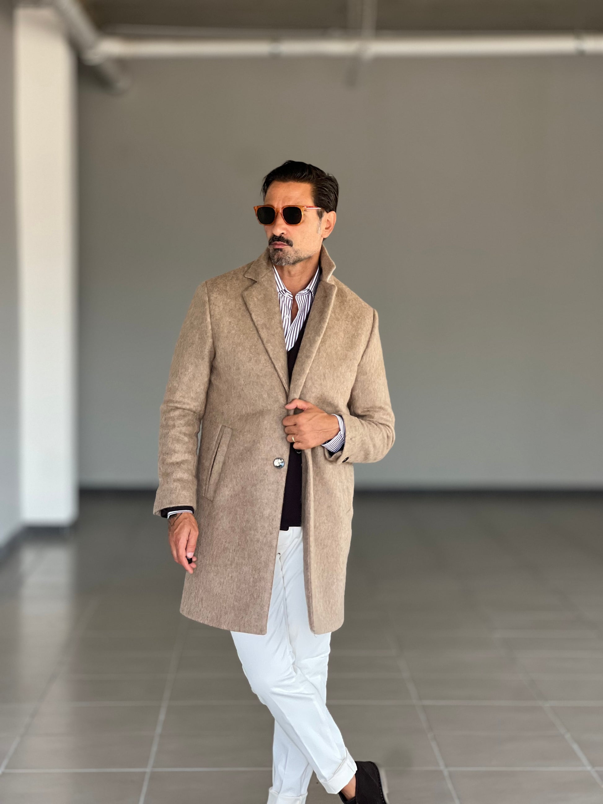 CAPPOTTO CAMMELLO LAVORAZIONE ALPACA TESSUTO LANA E MISTI ALTATENSIONE