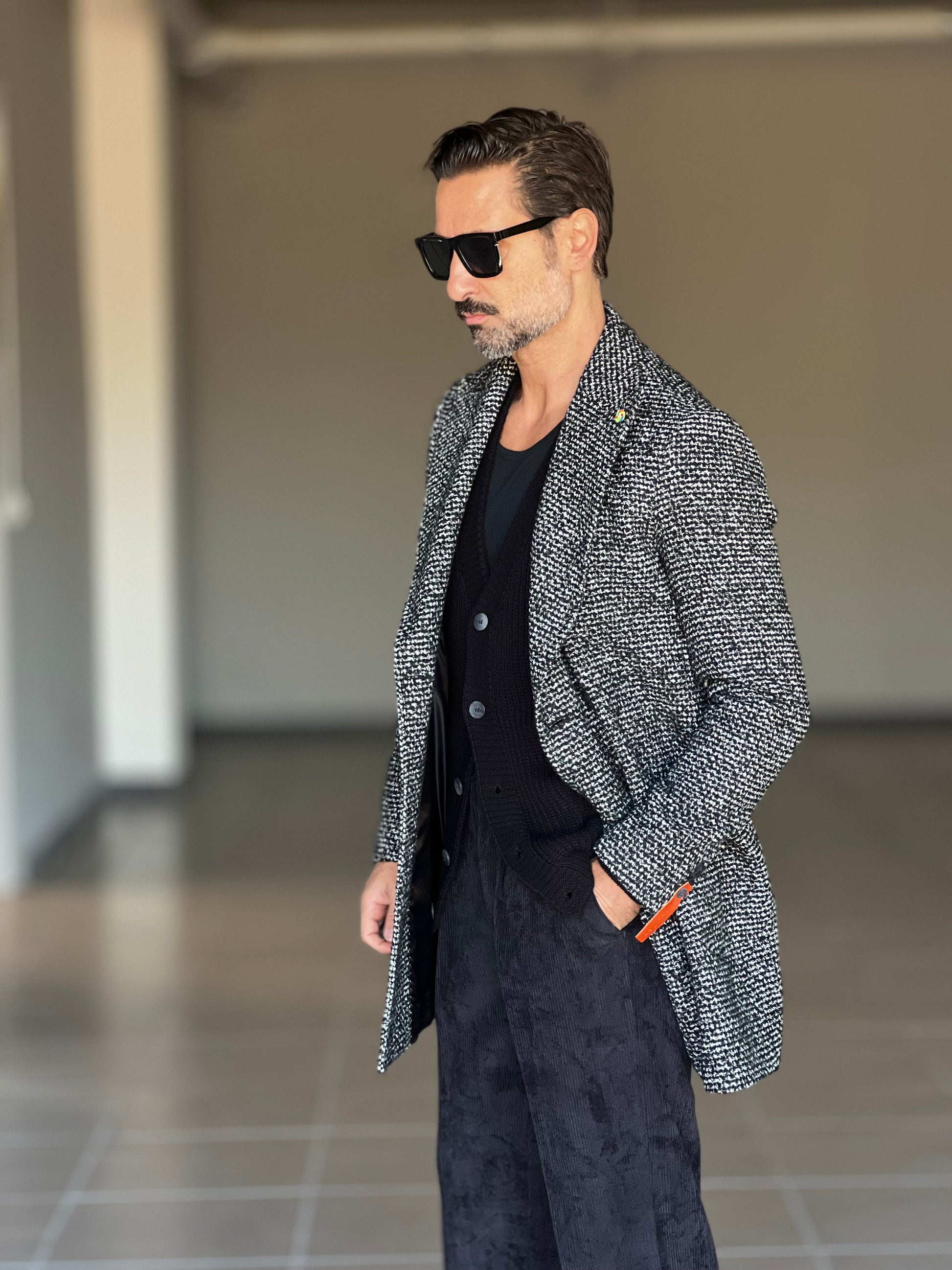 CAPPOTTO NERO DOPPIOPETTO TWEED