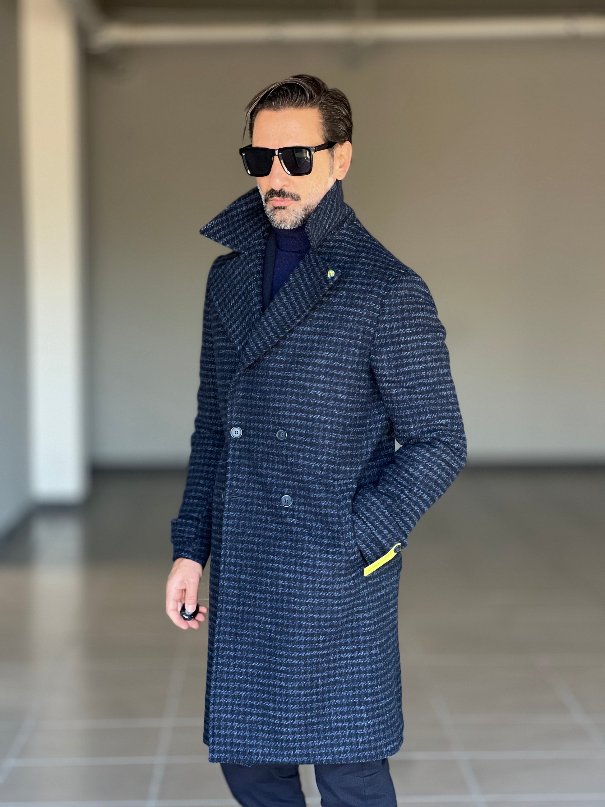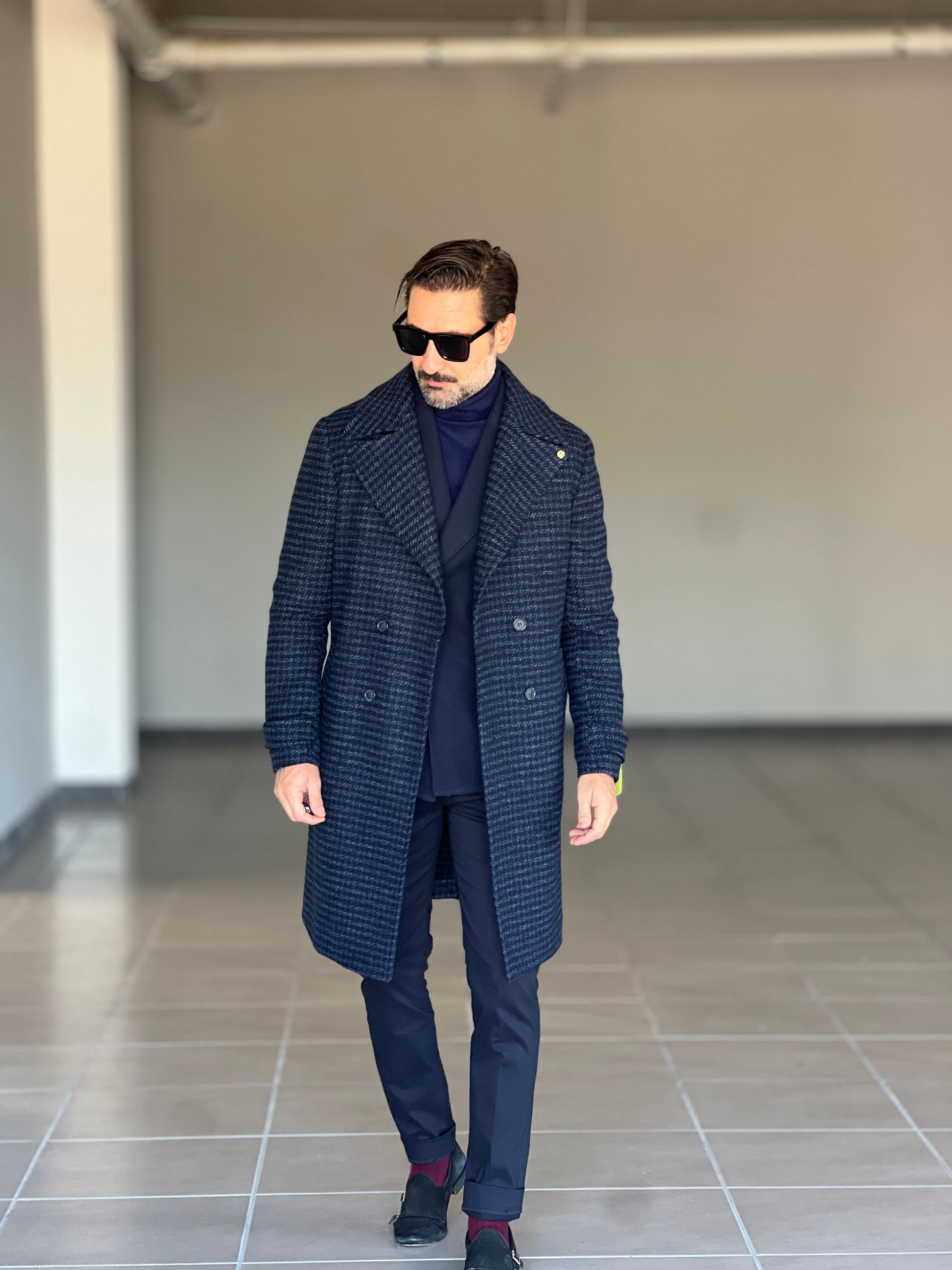 CAPPOTTO NERO E BLU DOPPIOPETTO PIE DE POULE