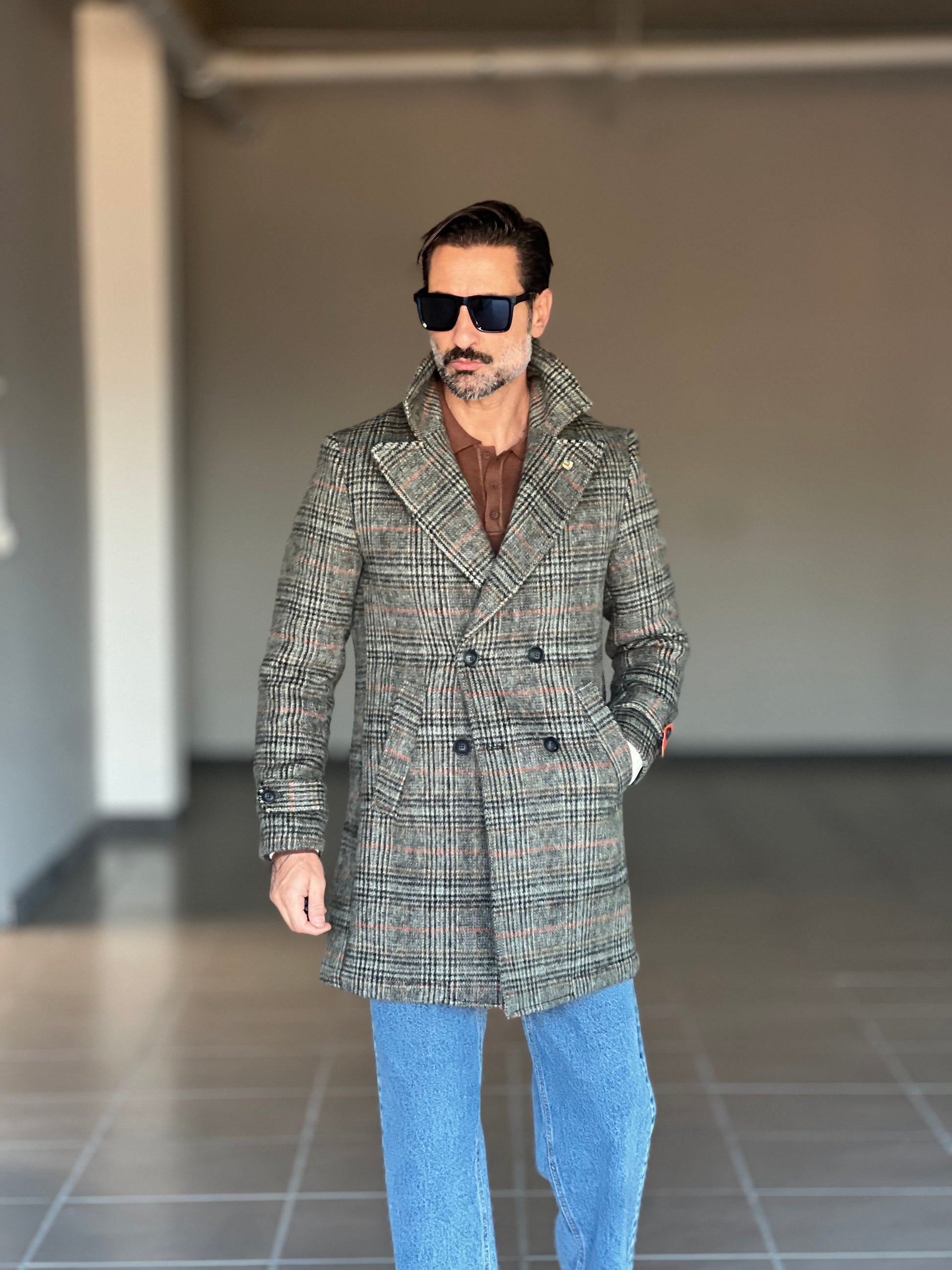 CAPPOTTO TARTAN GRIGIO E VERDE DOPPIOPETTO