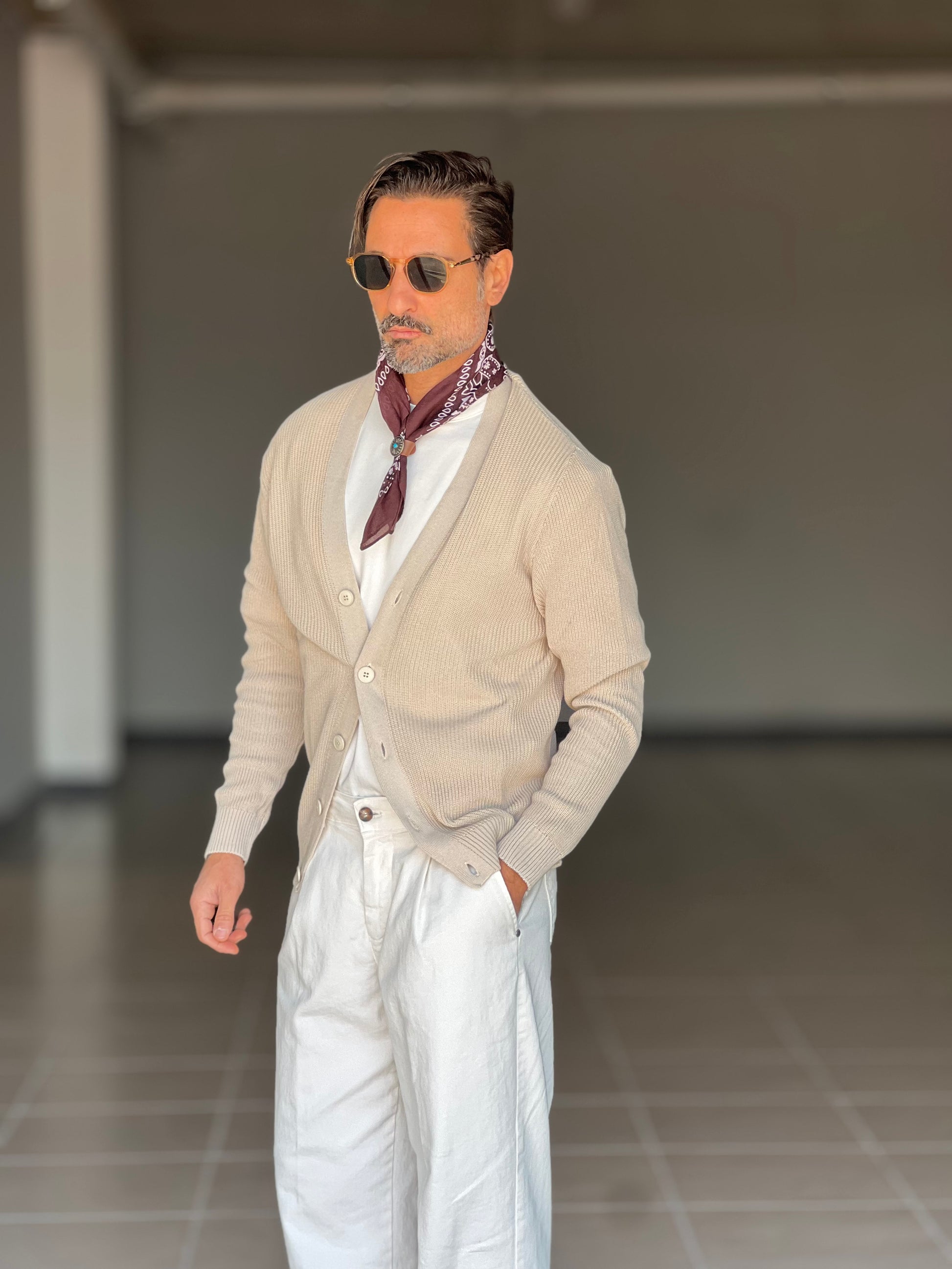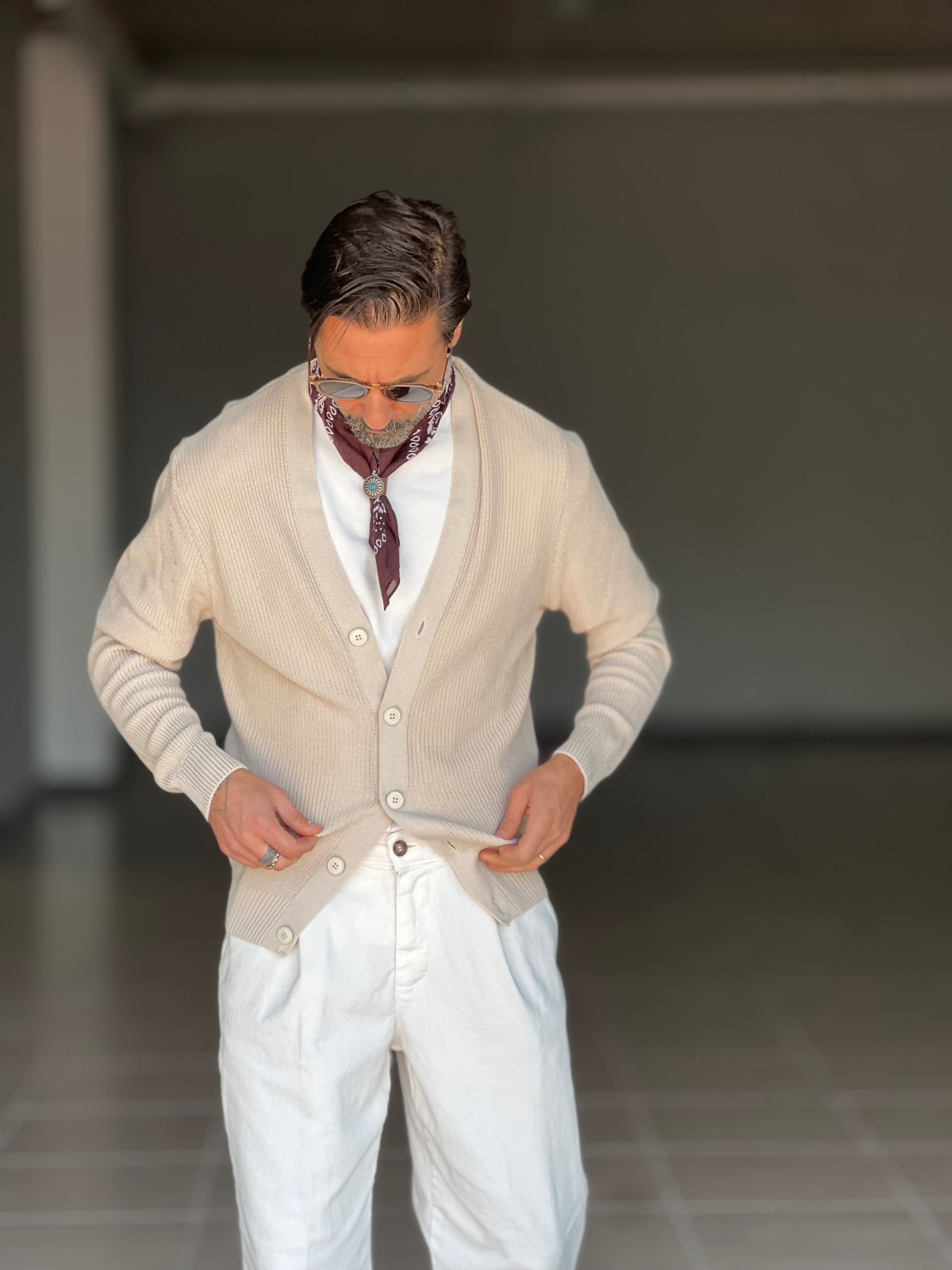 CARDIGAN AVORIO DERBY COTONE OVER FIT