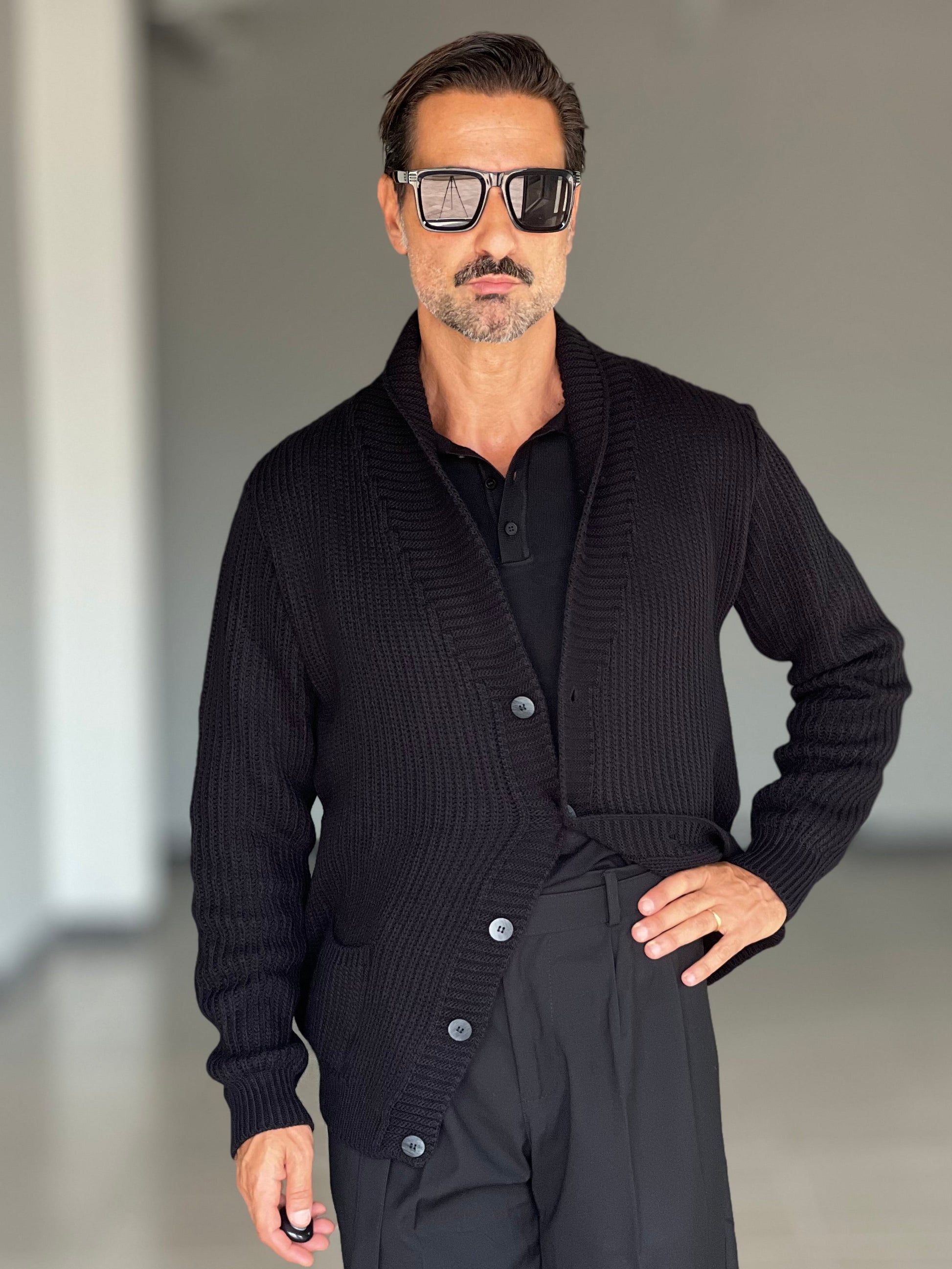 Elevate your wardrobe with the CARDIGAN SCIALLATO NERO BL11, designed for effortless style and comfort. Its sleek black color adds a refined touch to any outfit, while the soft fabric ensures all-day coziness. Perfect for layering, this cardigan blends versatility with a modern silhouette, making it a must-have for those who appreciate both fashion and function. Make a confident statement wherever you go with this essential piece.