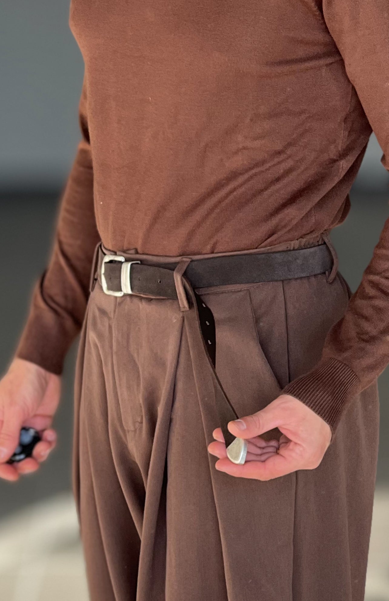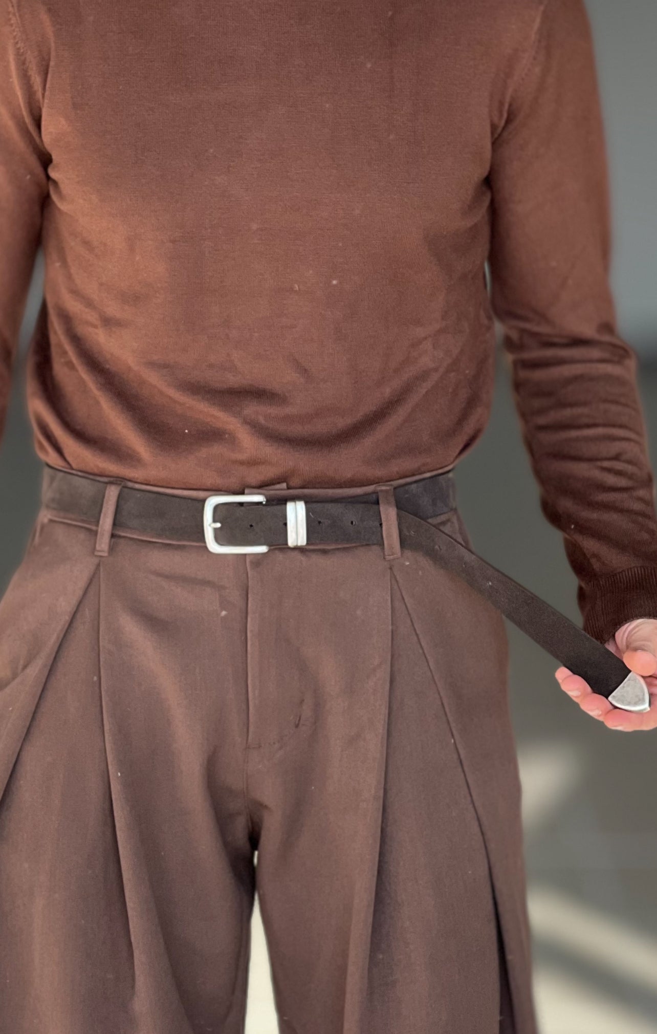 CINTURA CAMOSCIO PELLE MORO FIBIA PICCOLA