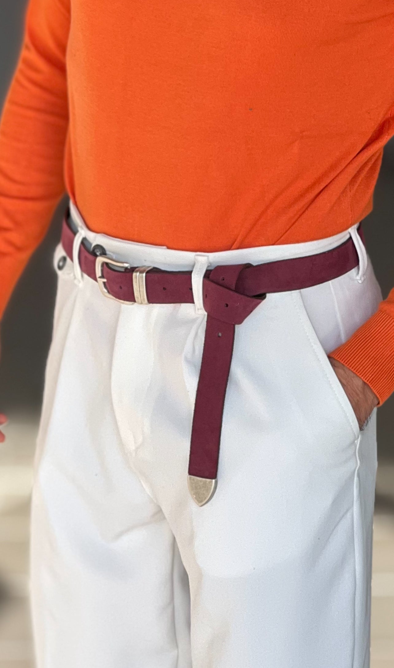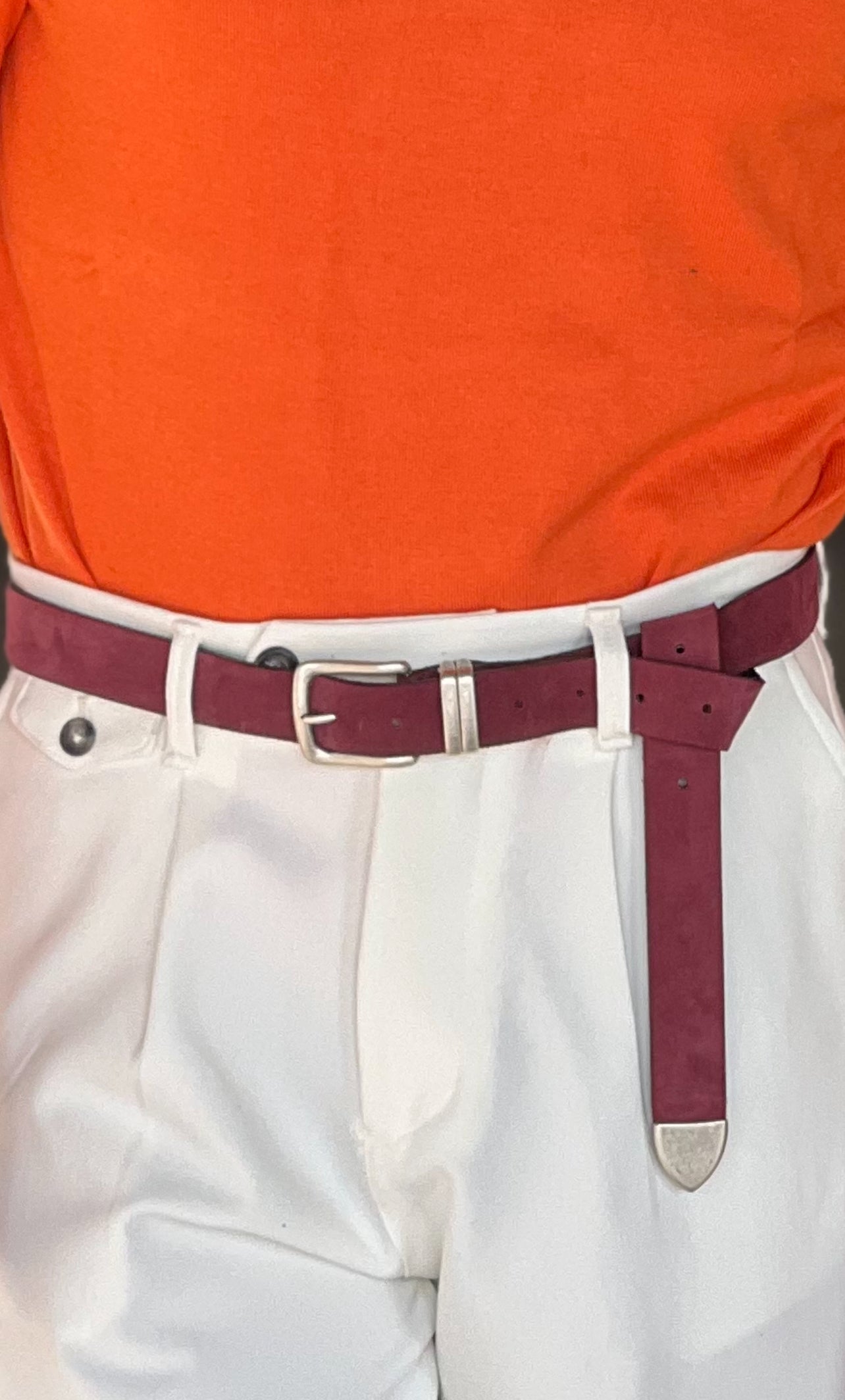 CINTURA CAMOSCIO PELLE PRUGNA FIBIA PICCOLA
