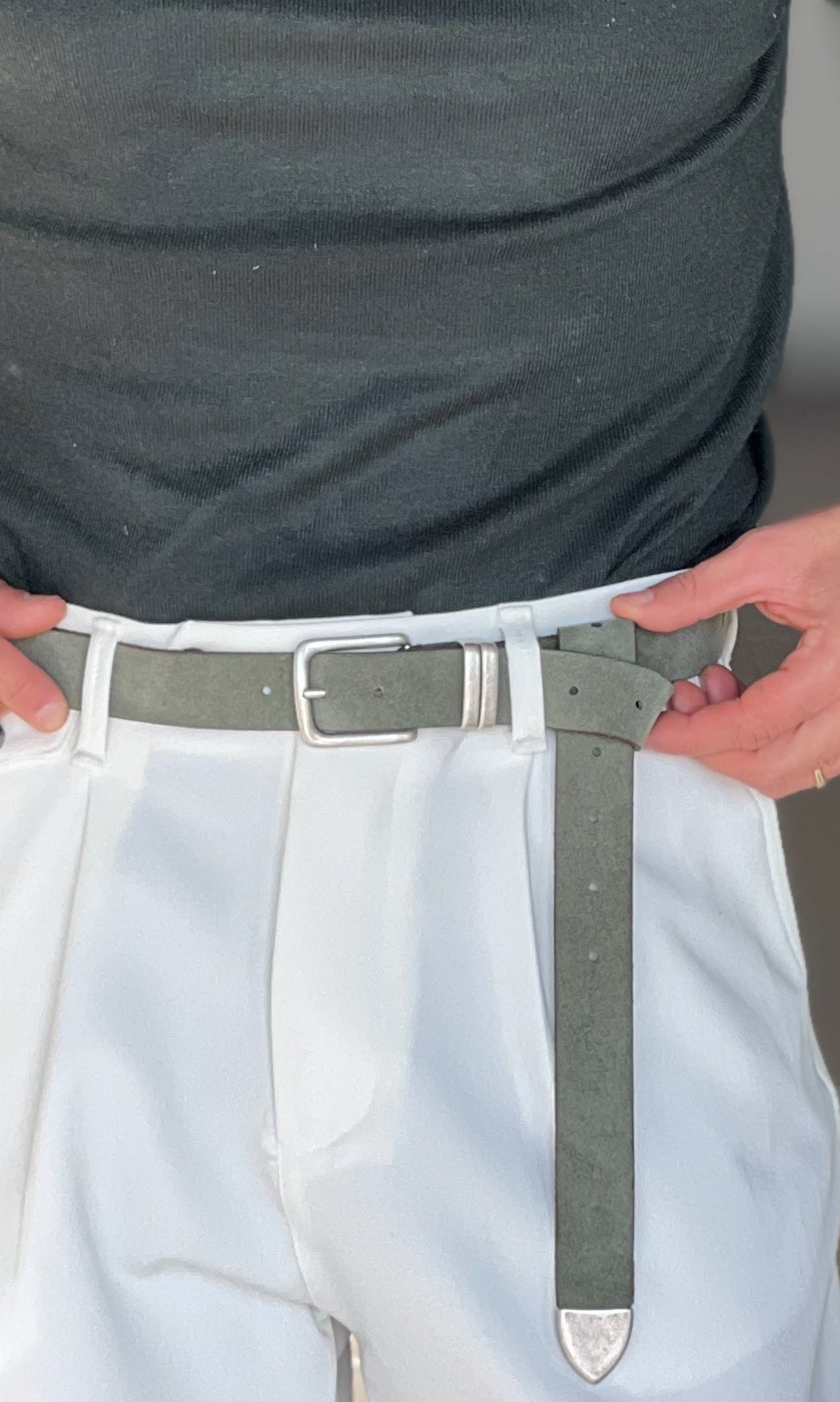 CINTURA CAMOSCIO PELLE VERDE FIBIA PICCOLA