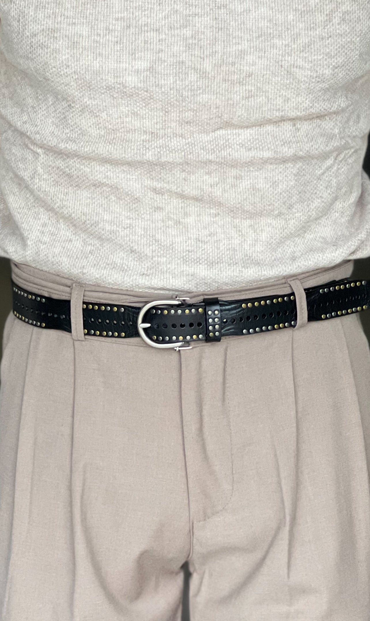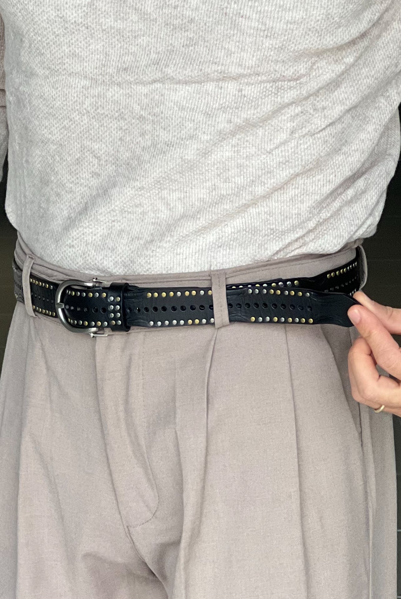 This finely crafted leather belt features a small, elegant buckle that adds a touch of refined sophistication. Crafted from genuine leather, it offers durability and a comfortable fit, making it the ideal accessory for adding a touch of style to both casual and formal outfits.