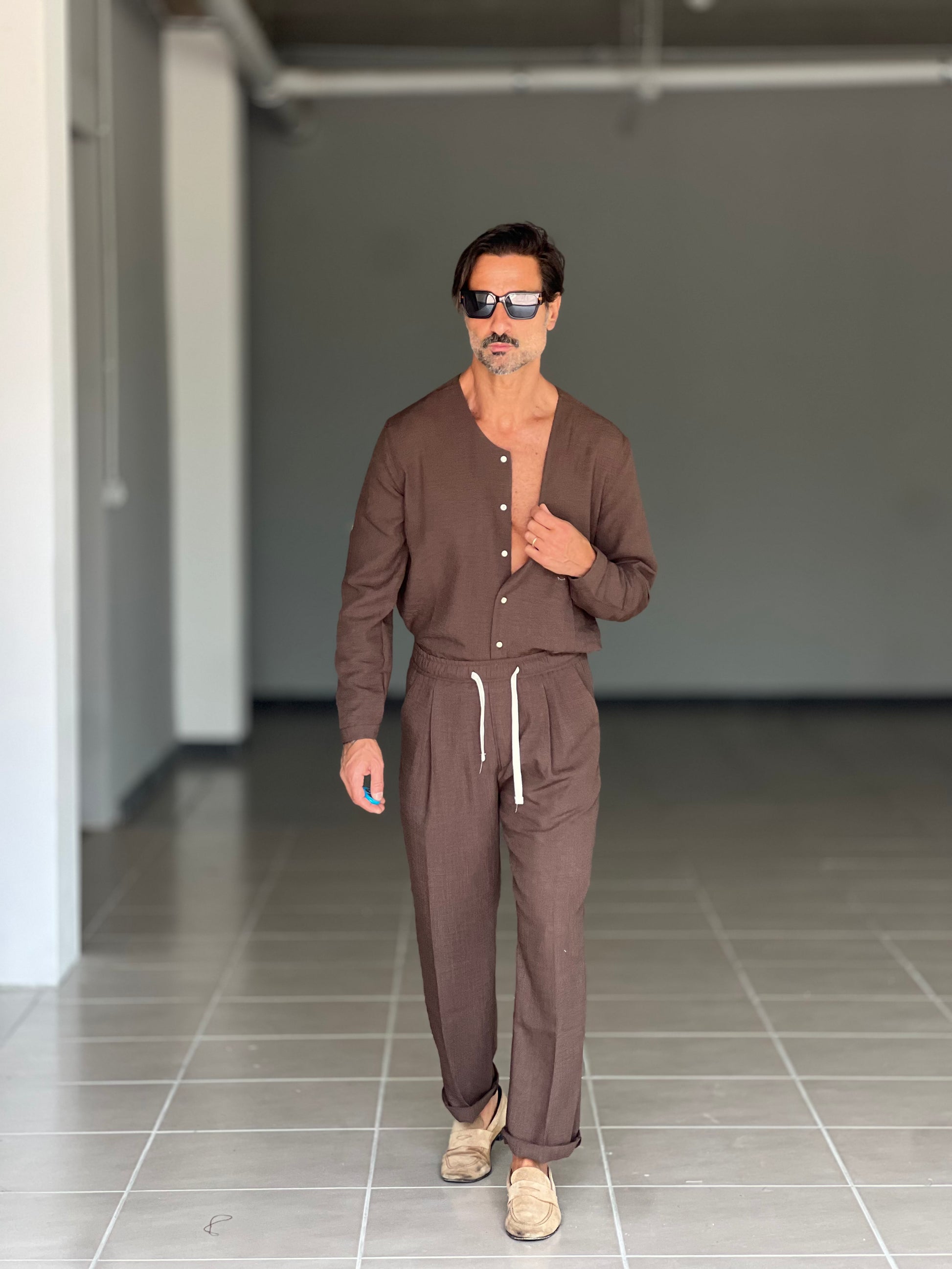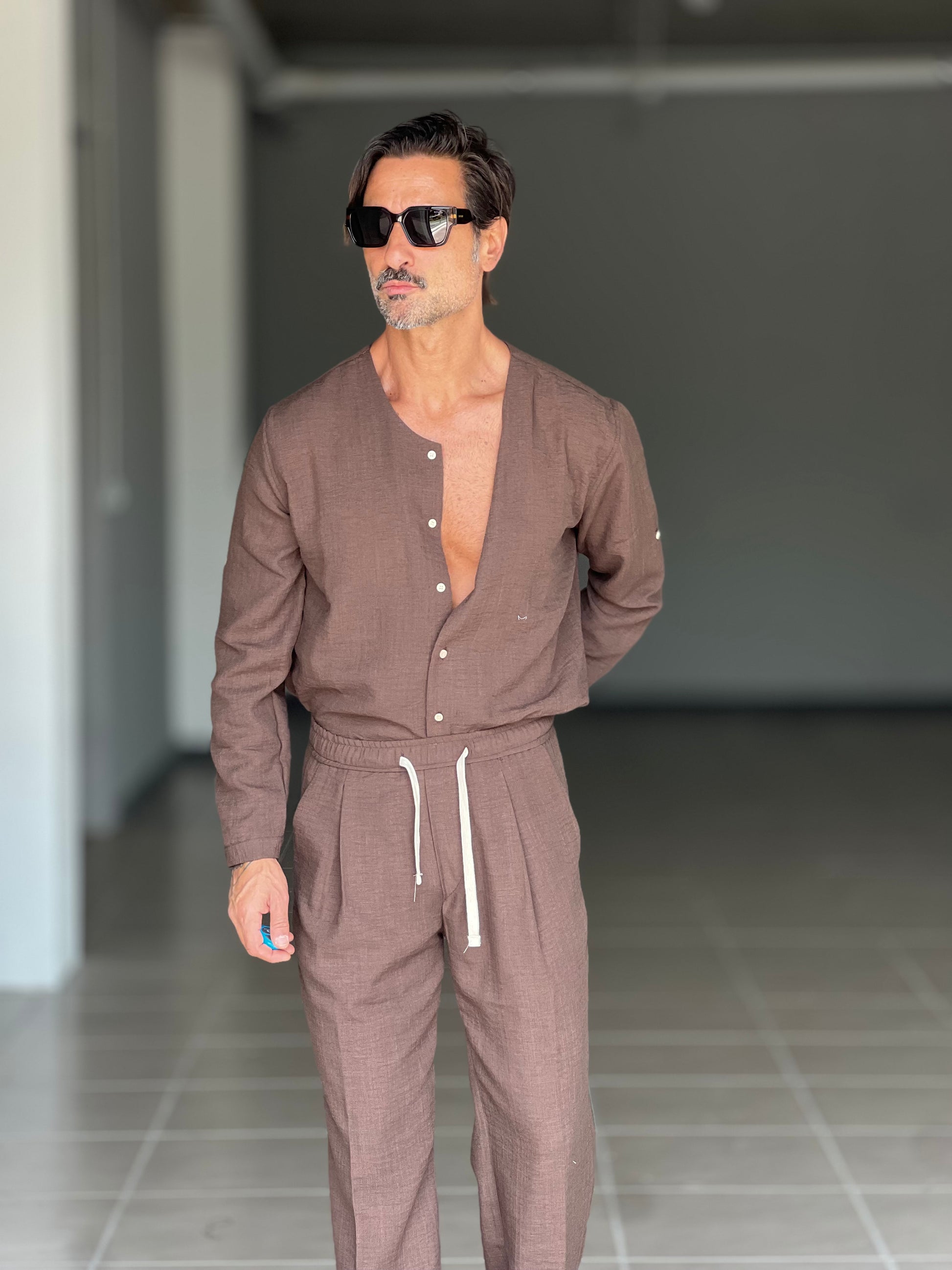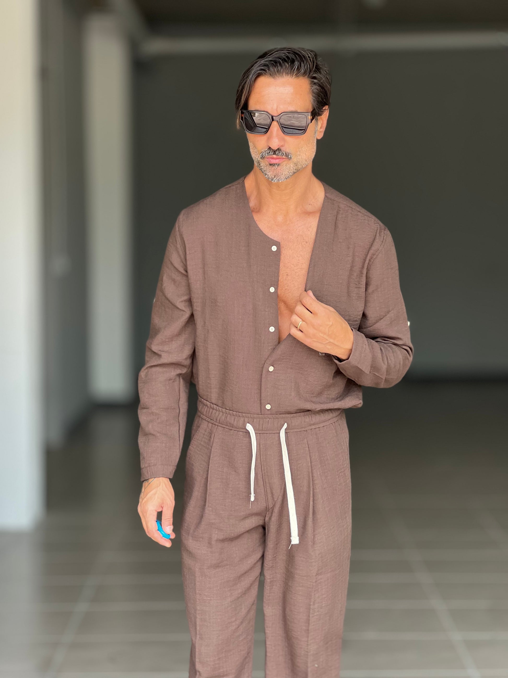 °COORDINATO MORO CAMICIA E PANTALACCIO EFFETTO LINO. 00201