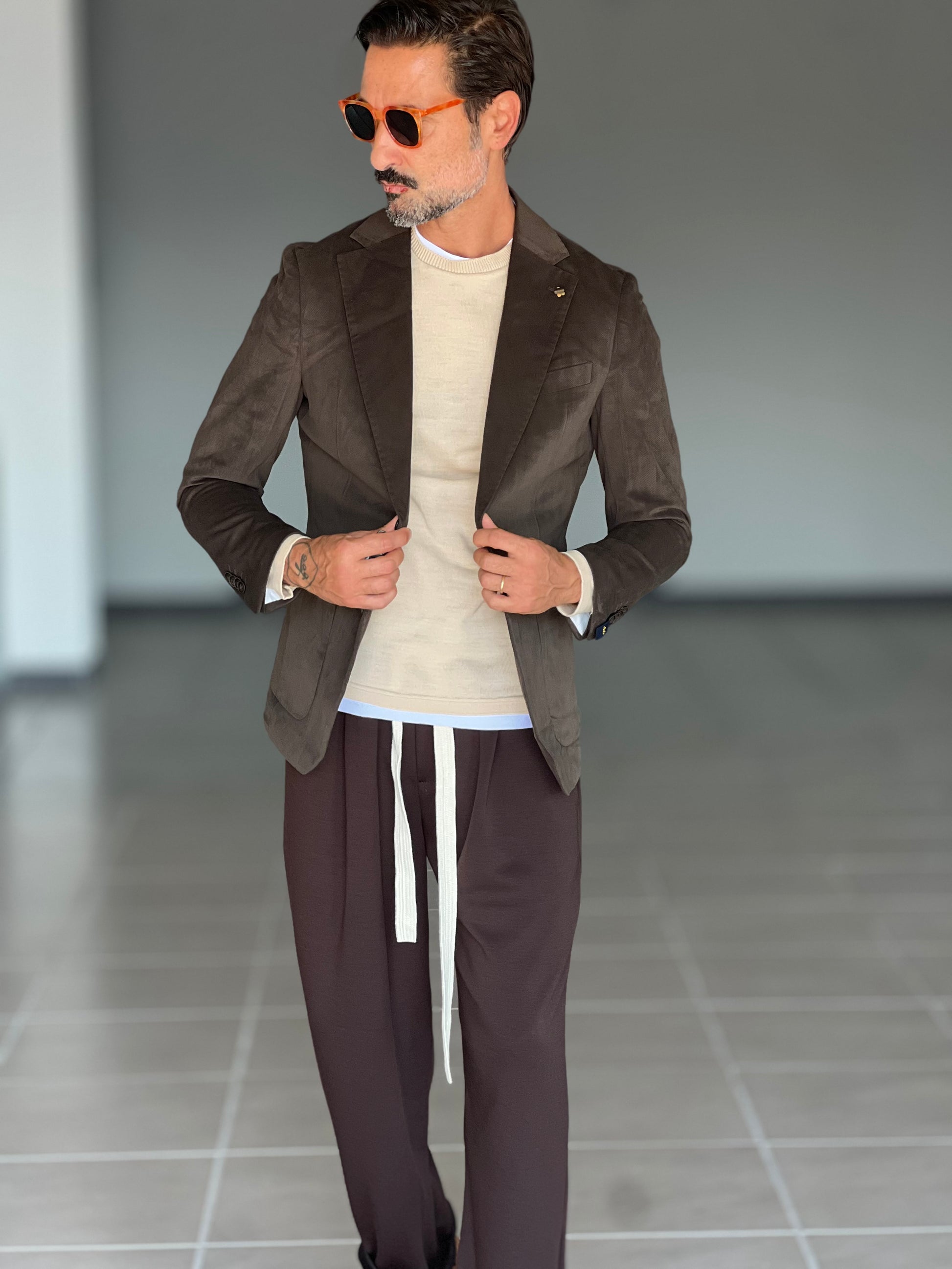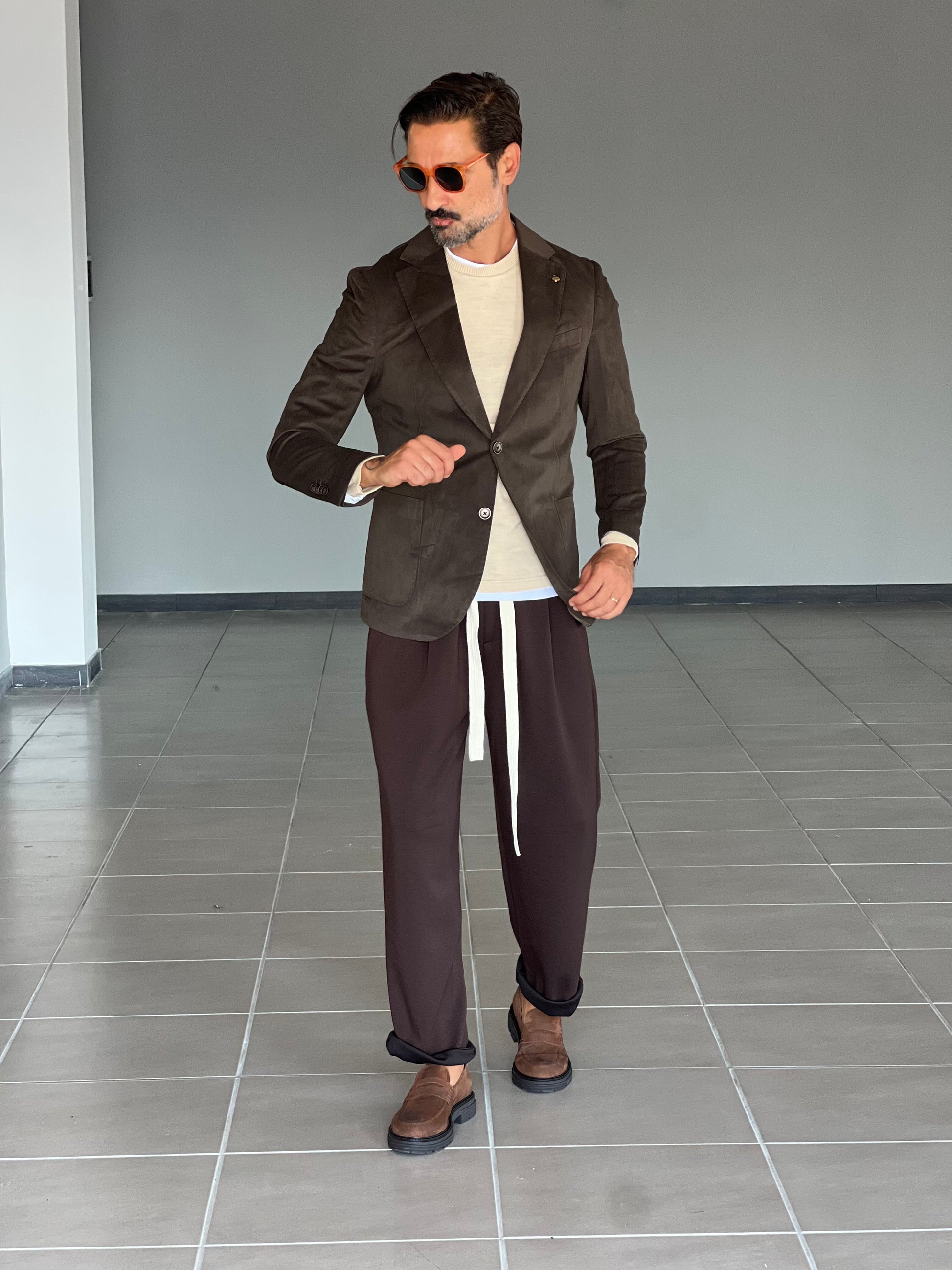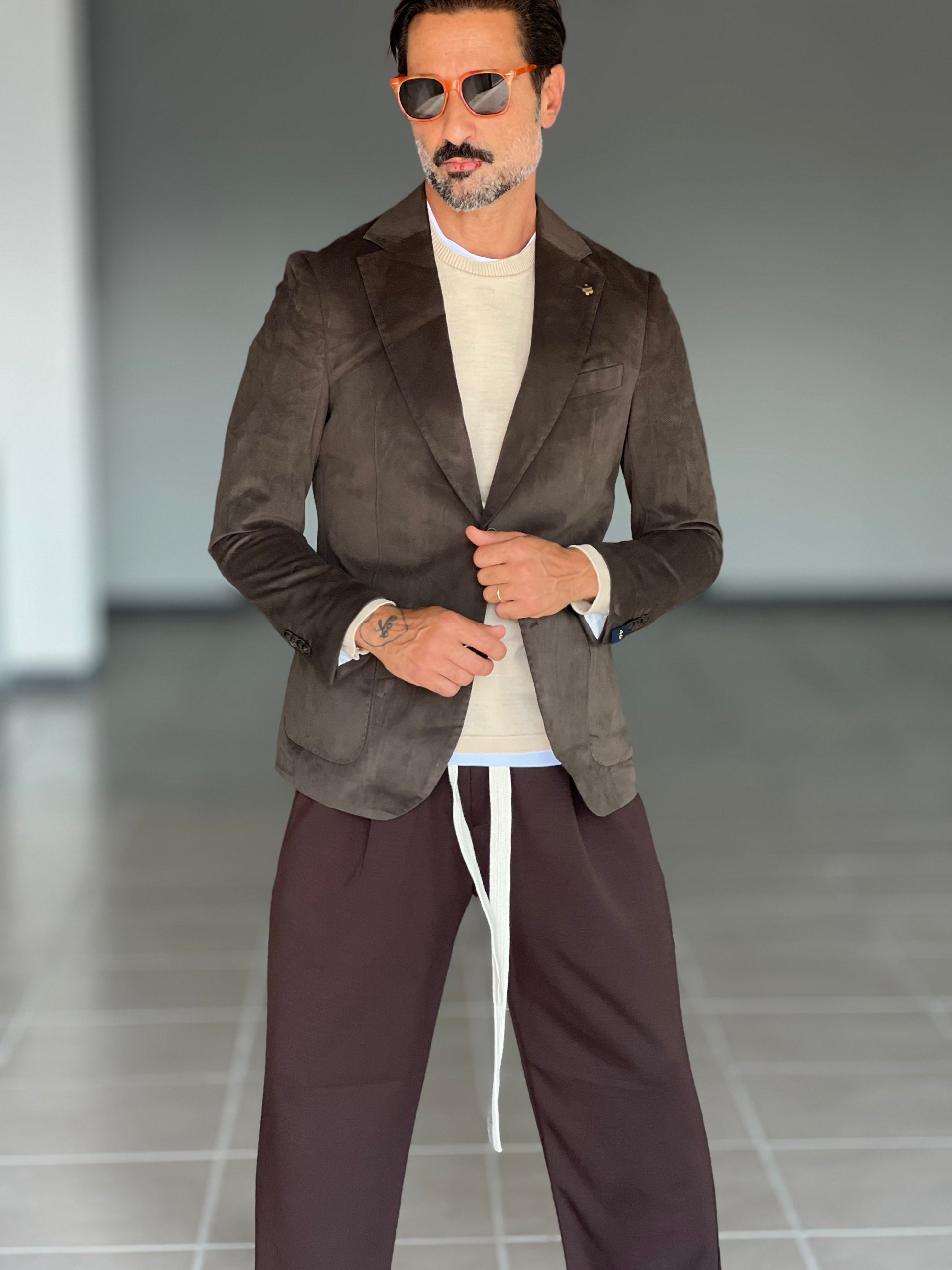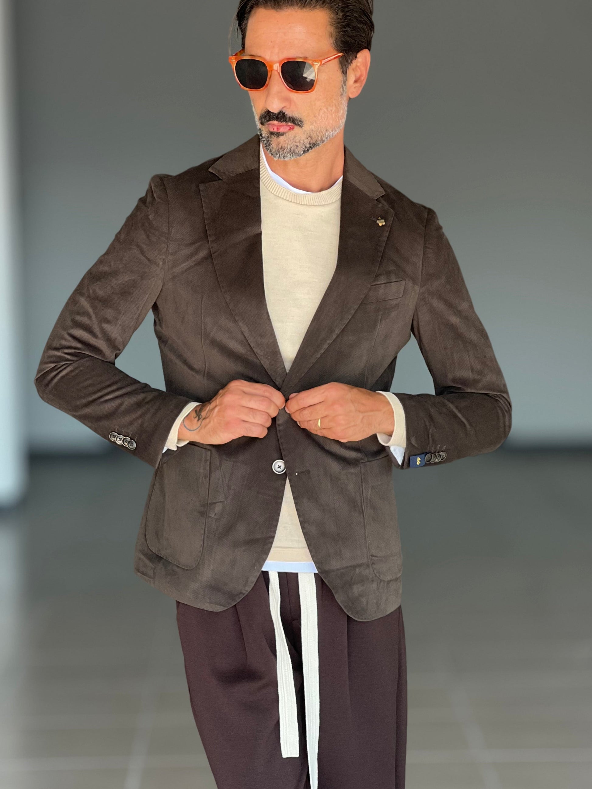 Questa giacca in velluto liscio, nella classica tonalità Moro, coniuga una texture raffinata a un'eleganza discreta. La sua finitura artigianale garantisce un look raffinato, adatto sia alle occasioni formali che a quelle smart-casual. Progettata per durare a lungo e garantire il massimo comfort, offre una sartorialità impeccabile che esalta la silhouette, mantenendo la libertà di movimento. Ideale per chi cerca un capospalla sofisticato dallo stile intramontabile.