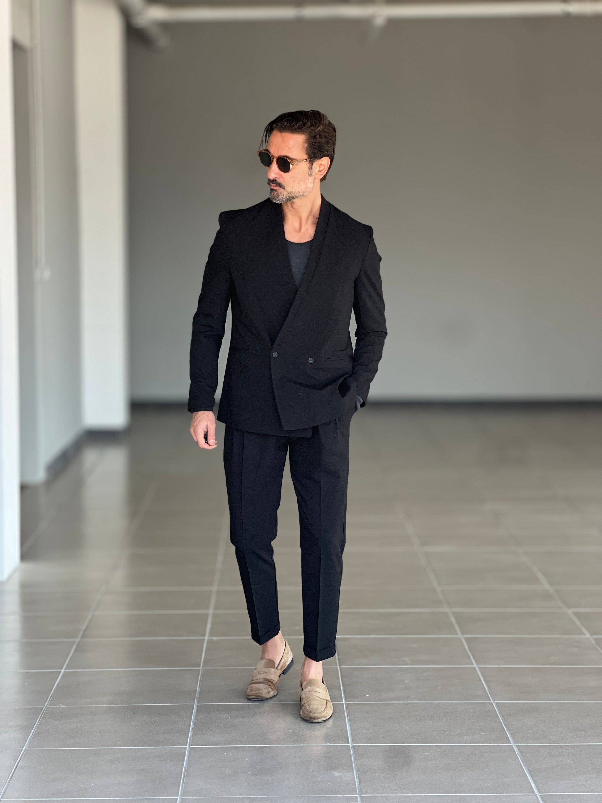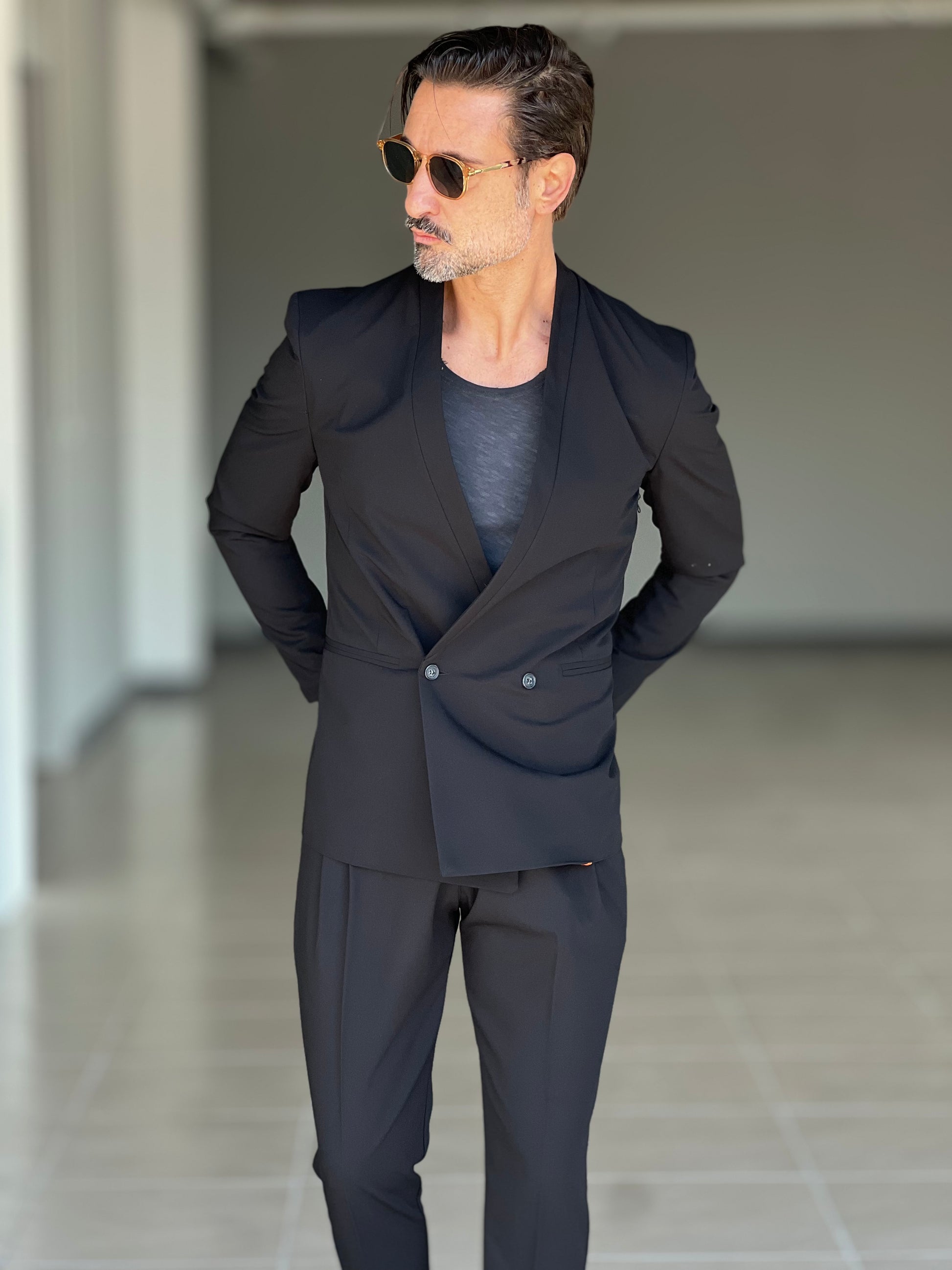 GIACCA NERA COLLO SCIALLATO DOPPIOPETTO ( PUOI ABBINARE IL PANTALONE CON IL CODICE 32 )