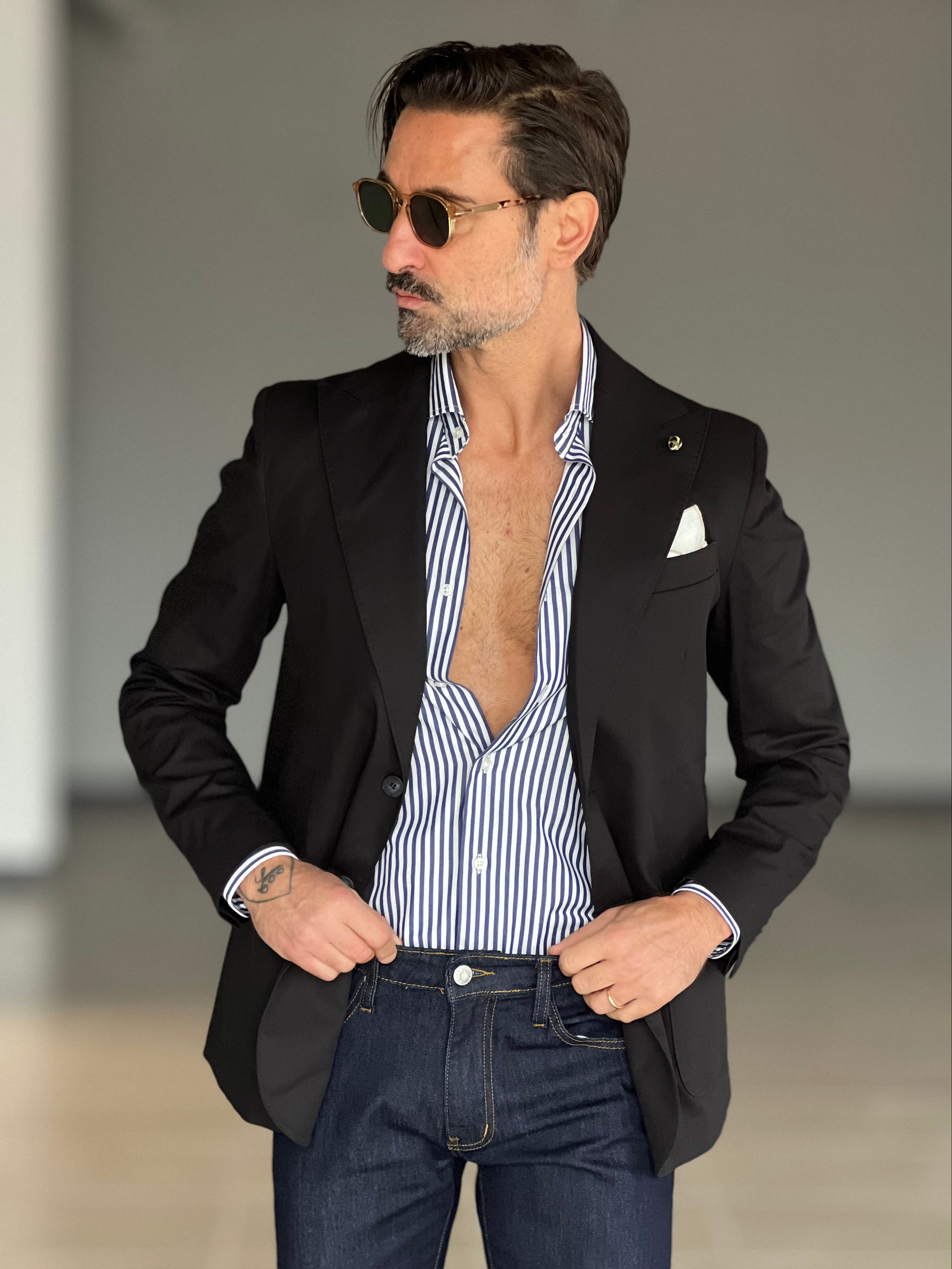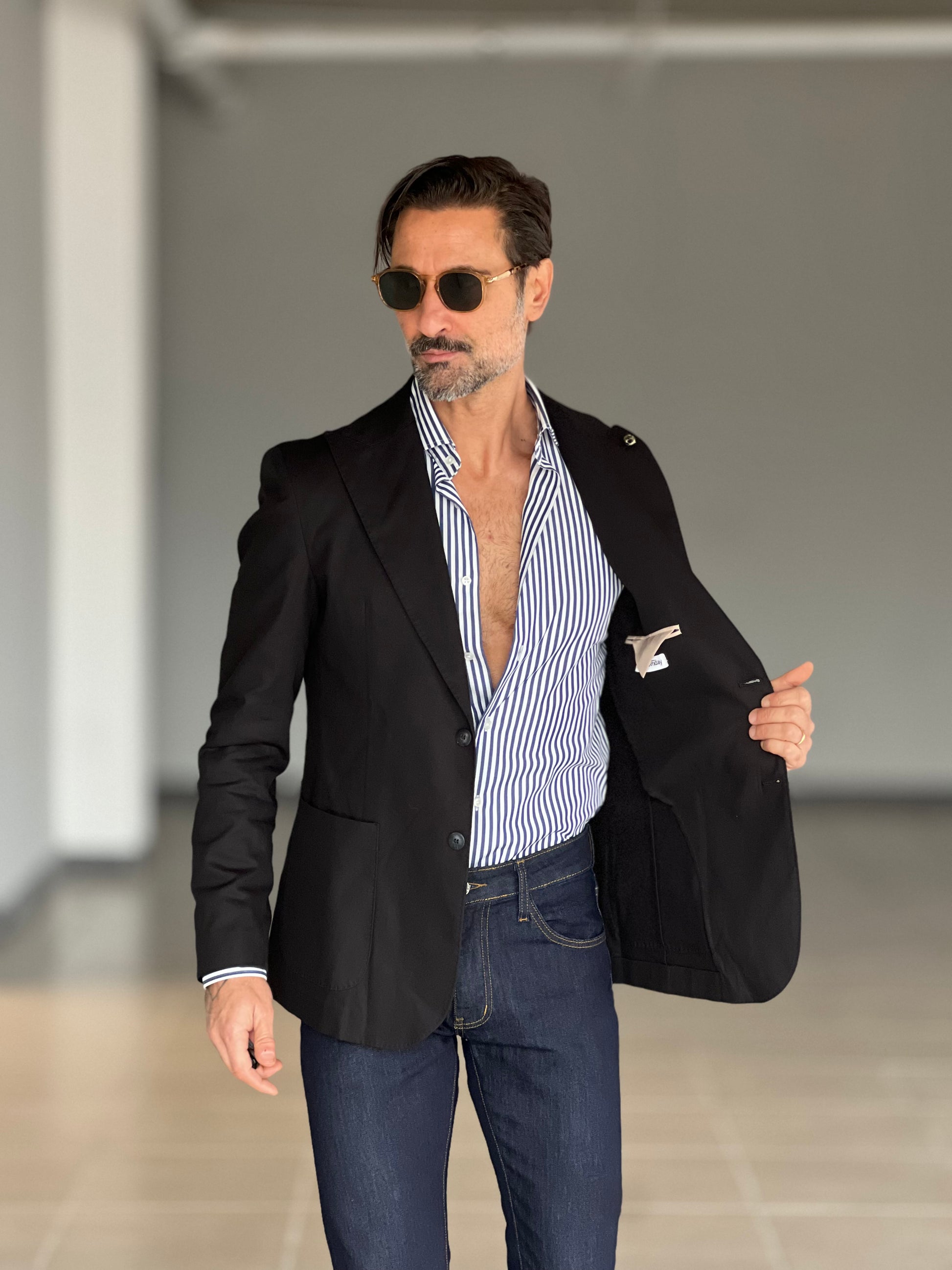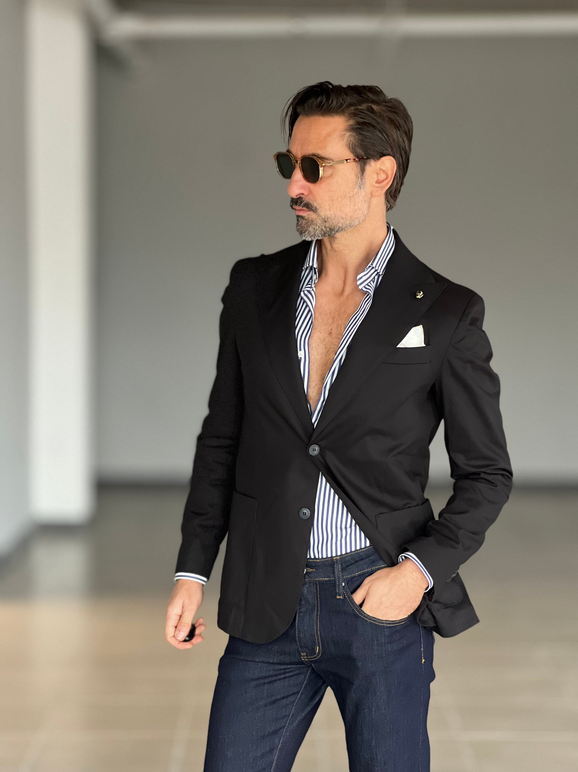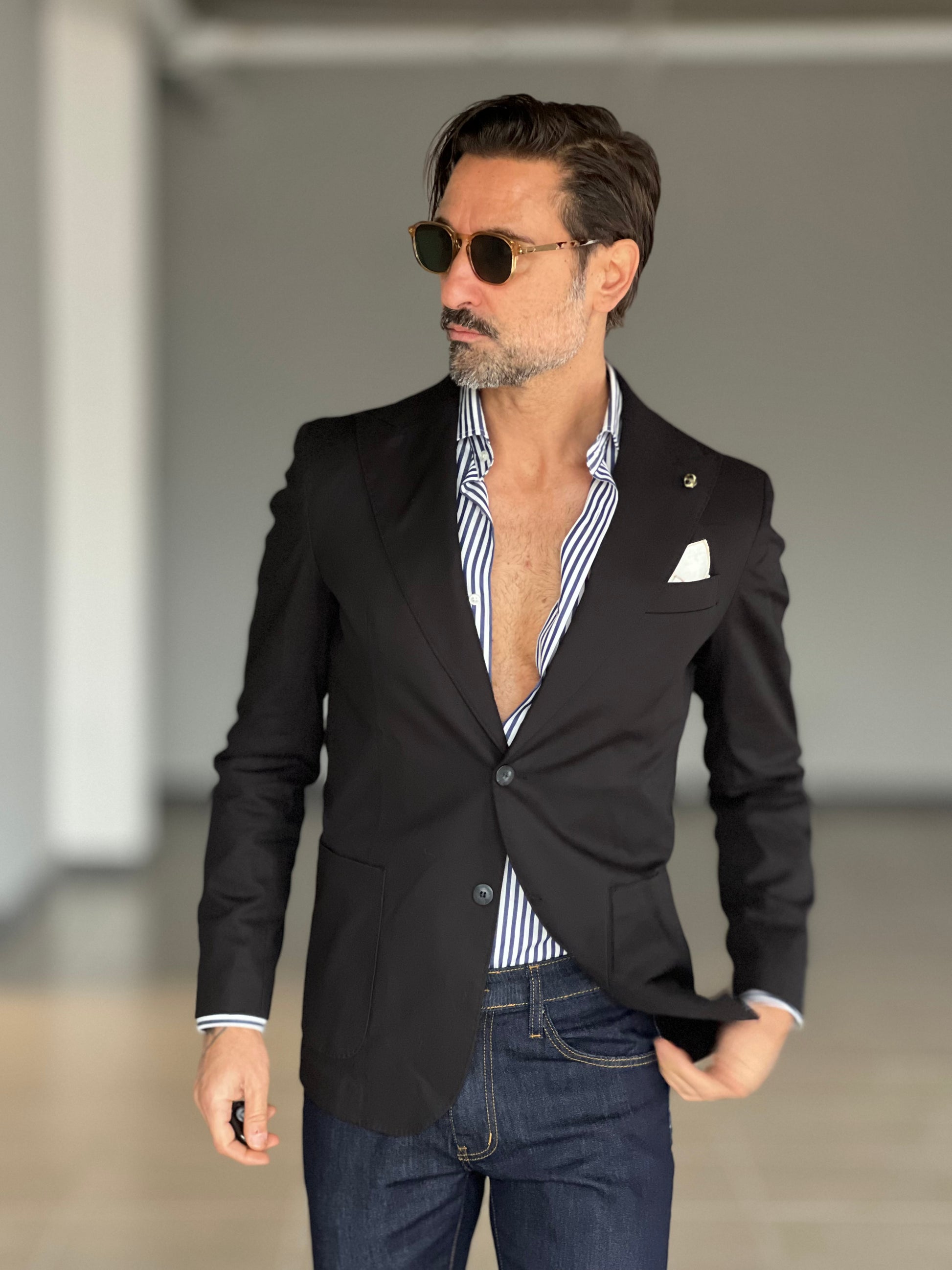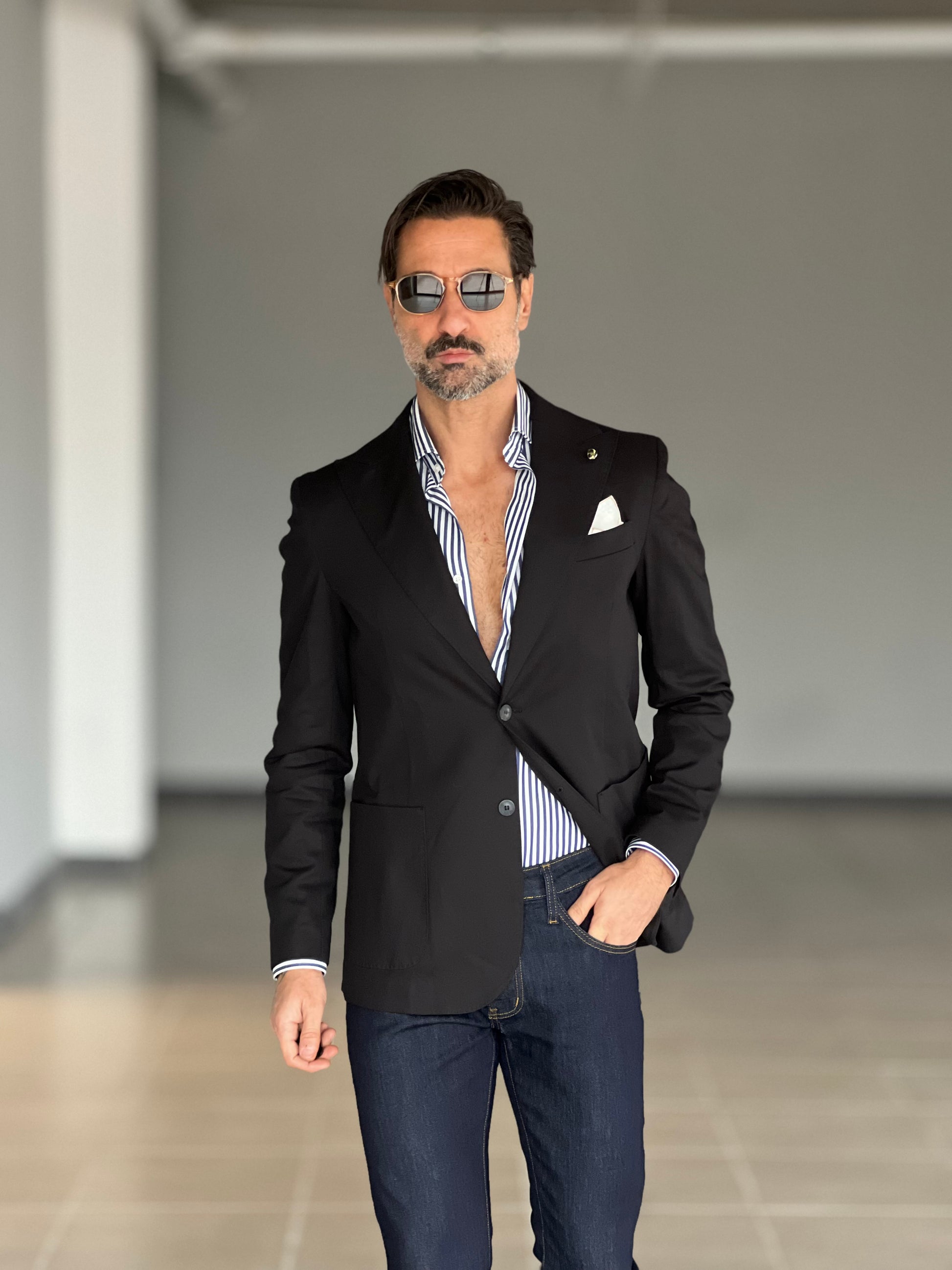 GIACCA NERA COTONE STRECH MONOPETTO