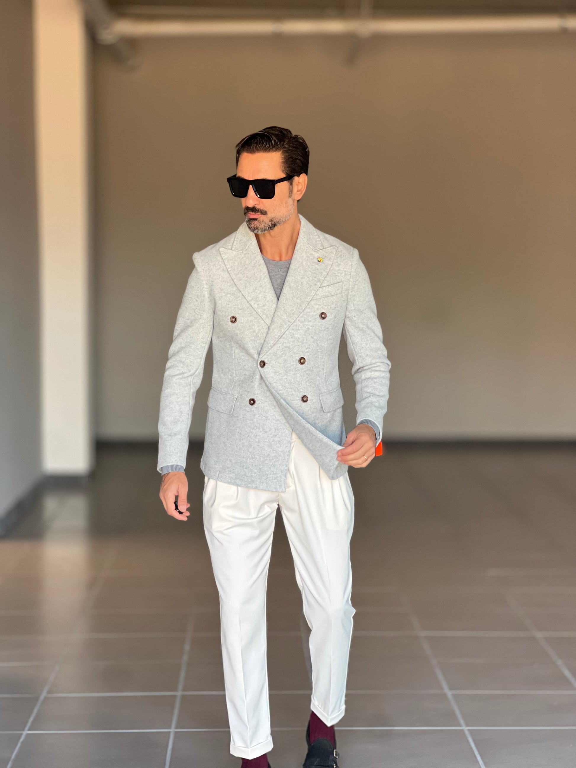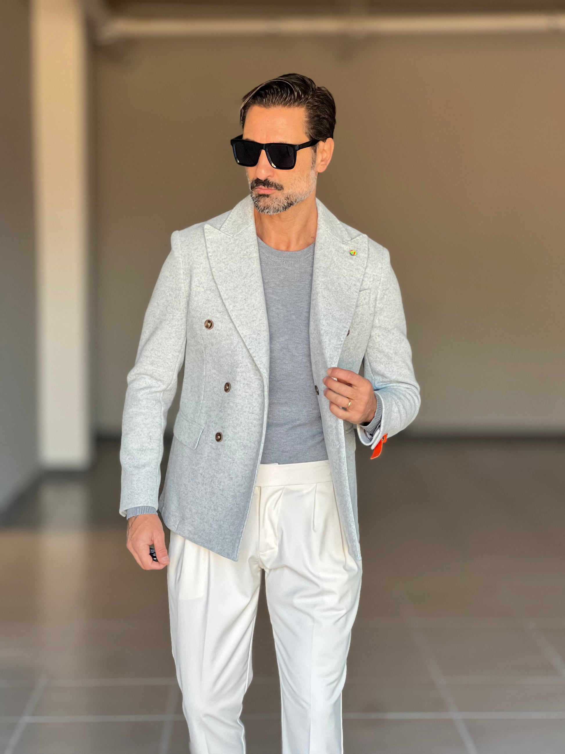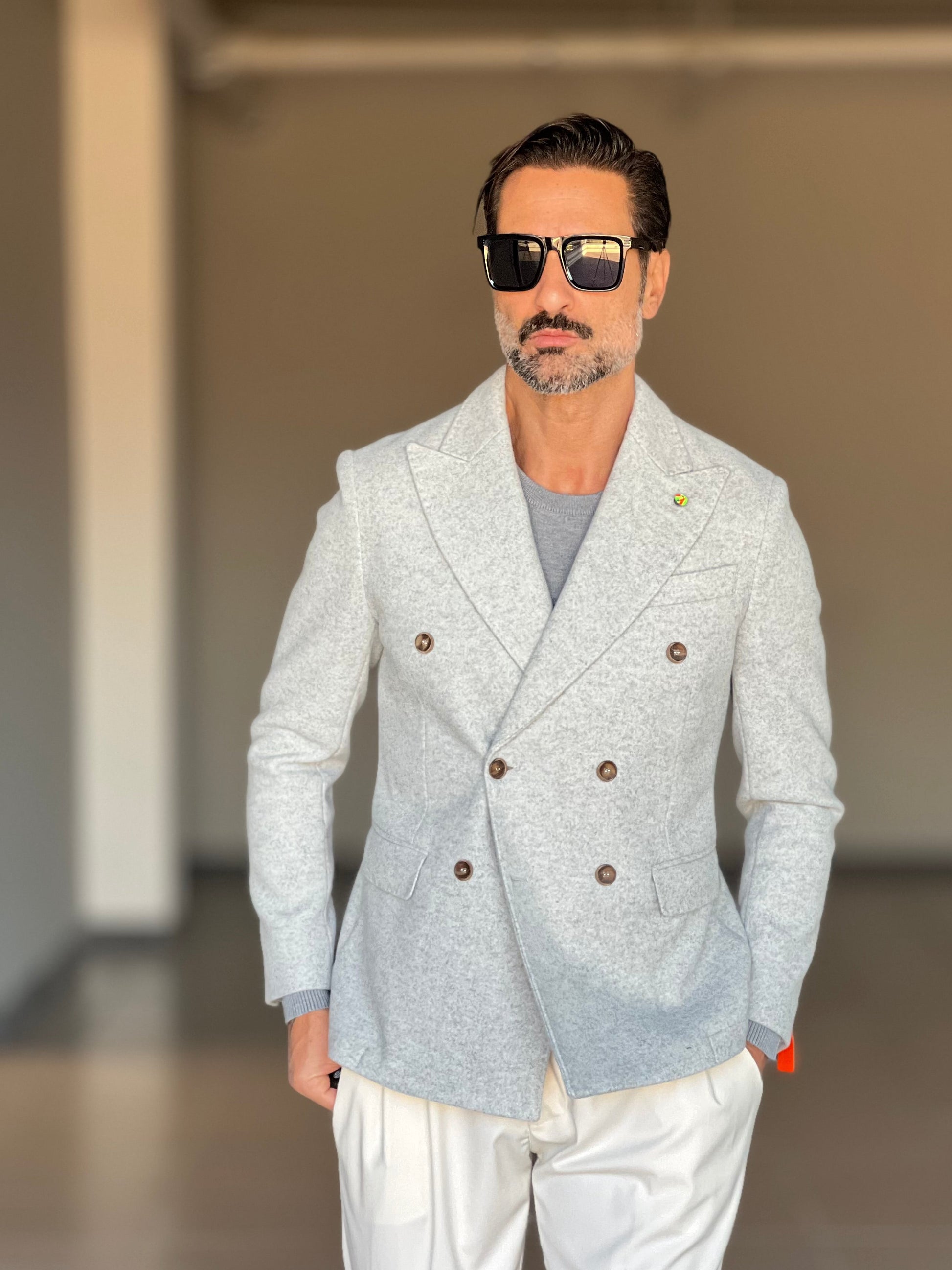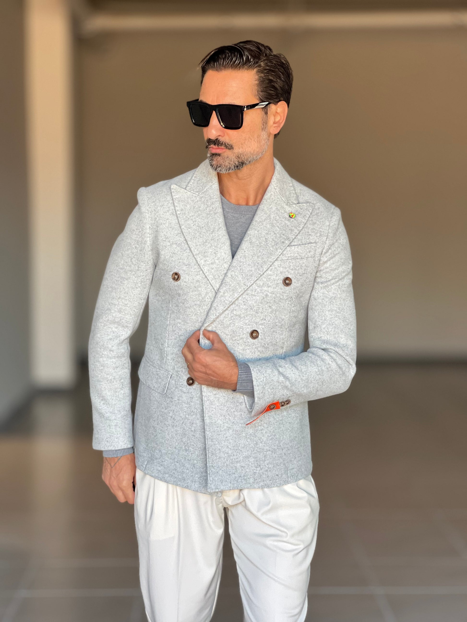 GIACCA PANNO CELESTE GRIGIO DOPPIPETTO